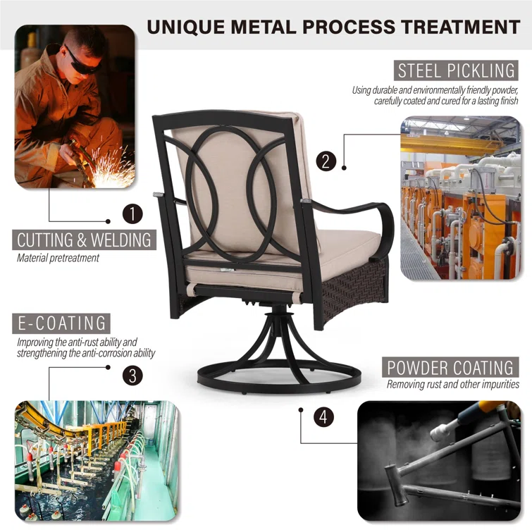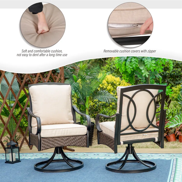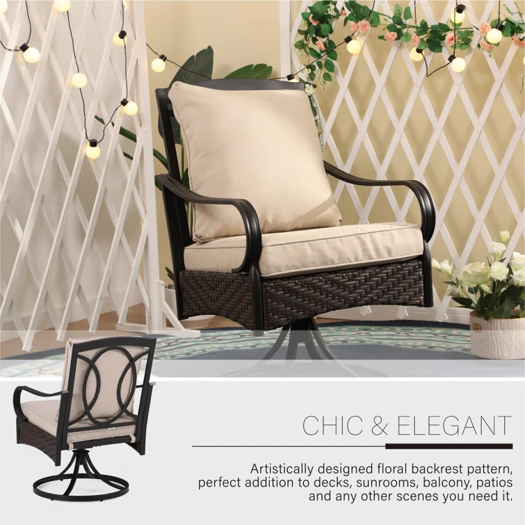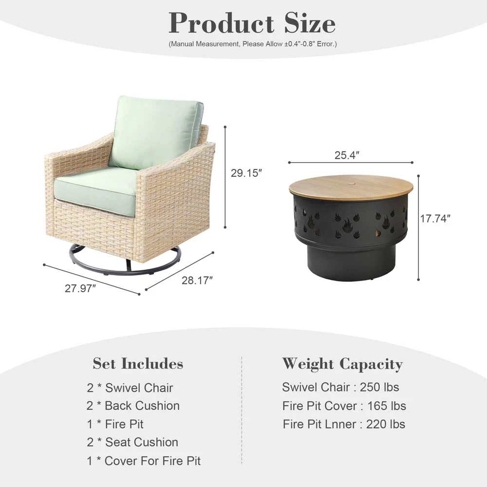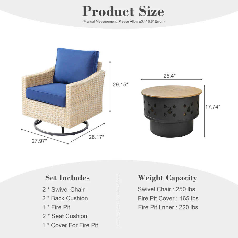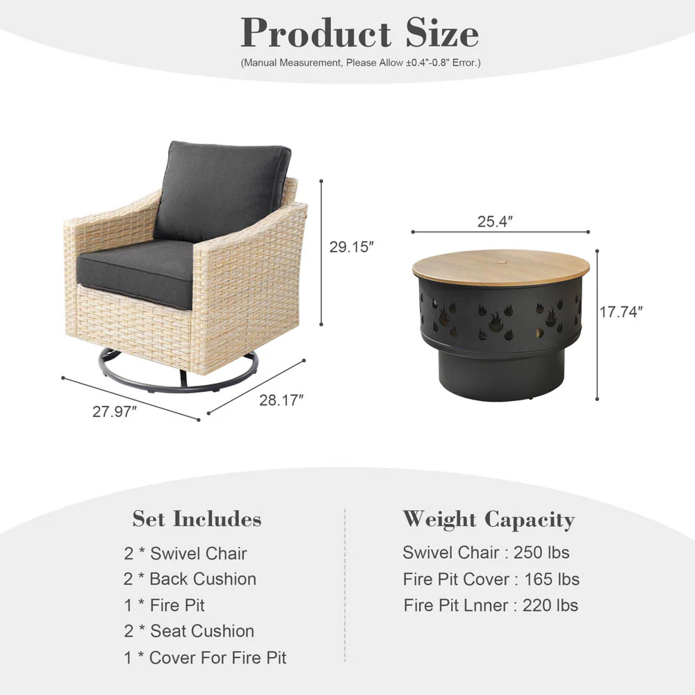 Ovios Athena Series Outdoor Patio Furniture 3-Piece Set with Fire Pit Swivel Chair