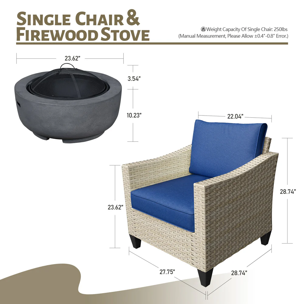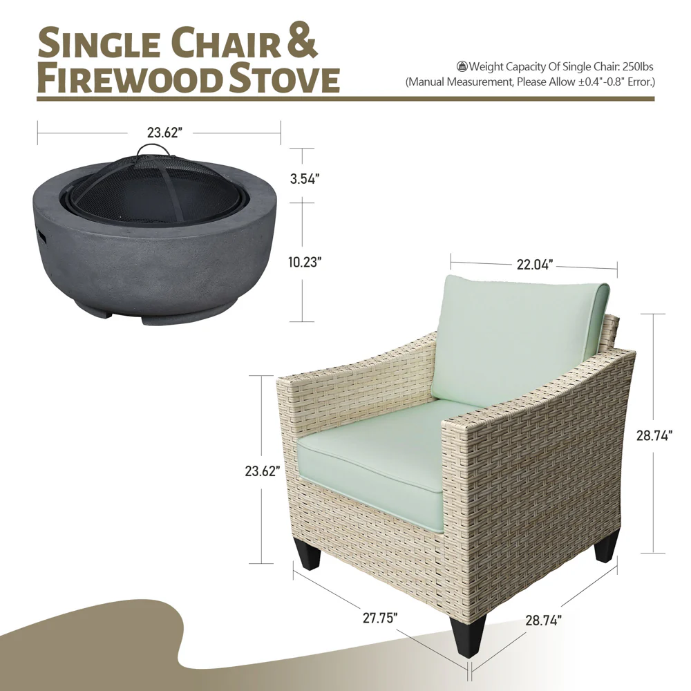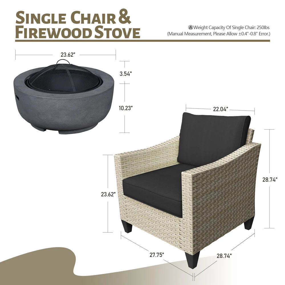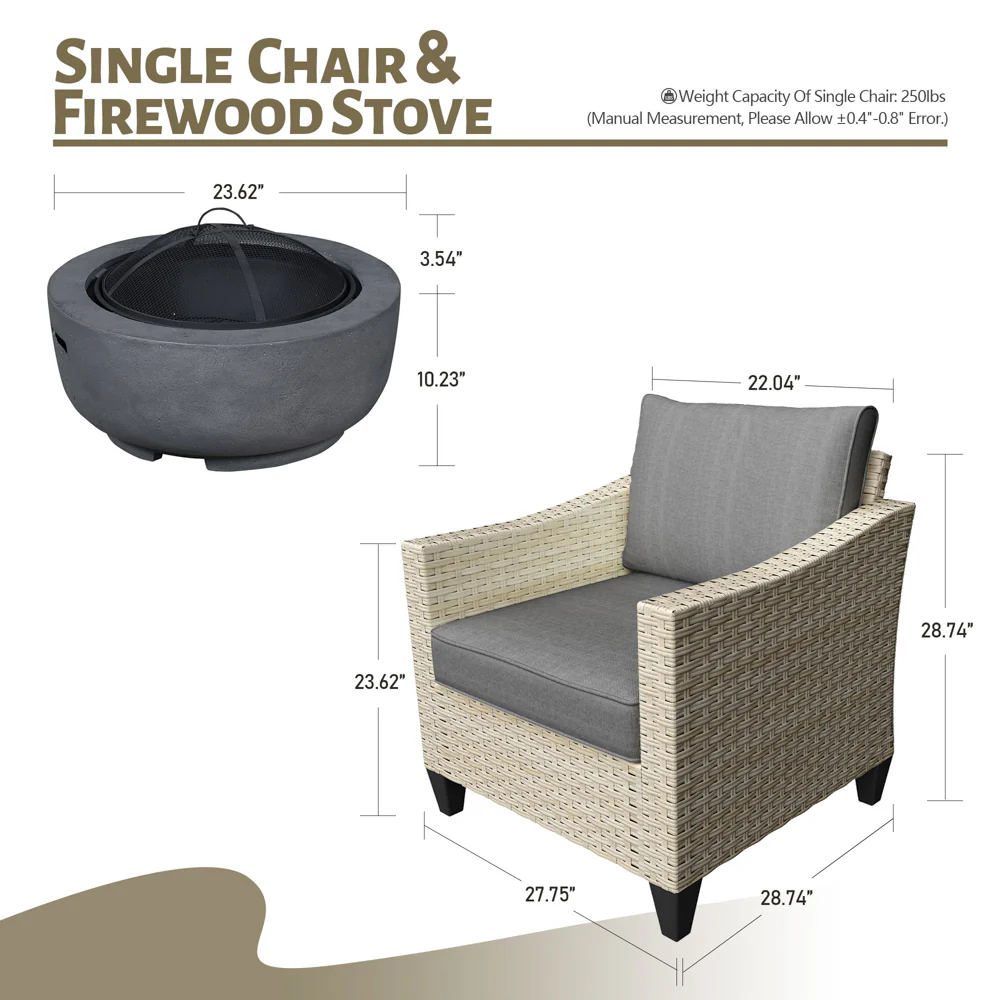 Ovios Patio Furniture Set 10-Piece include 42"Rectangle Fire Pit Table, Partially Assembled,BRS Series
