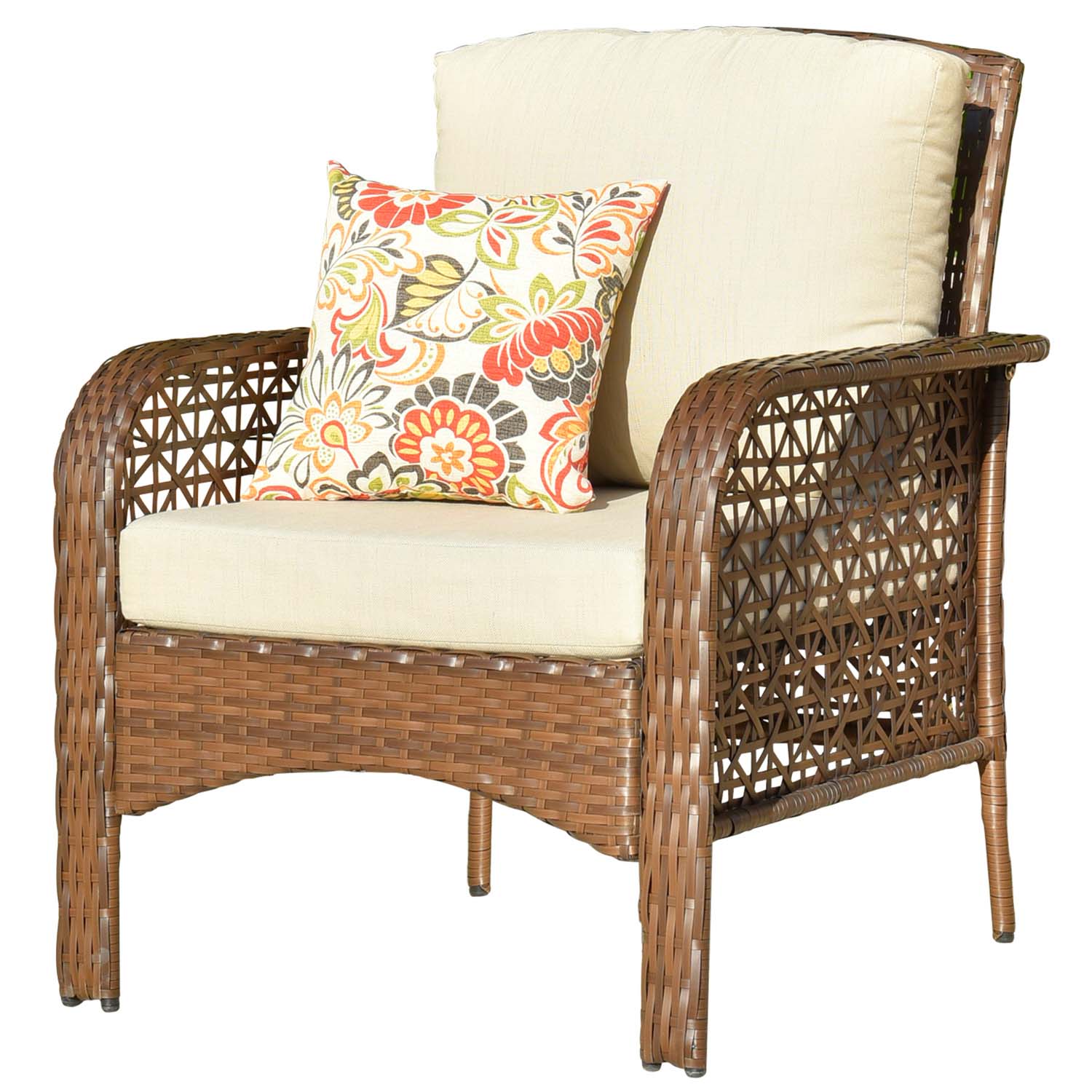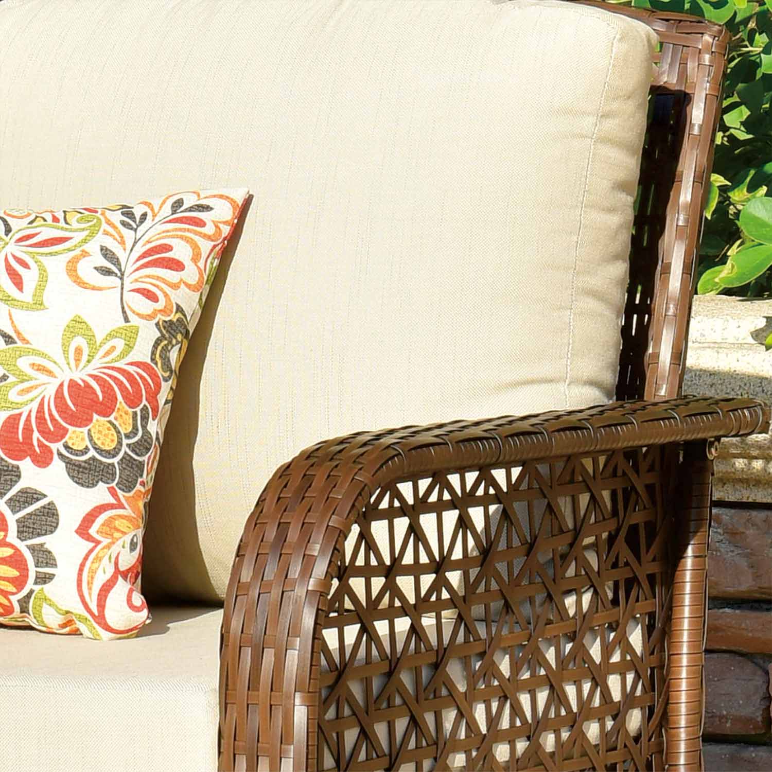 Brown Wicker Beige Cushion
