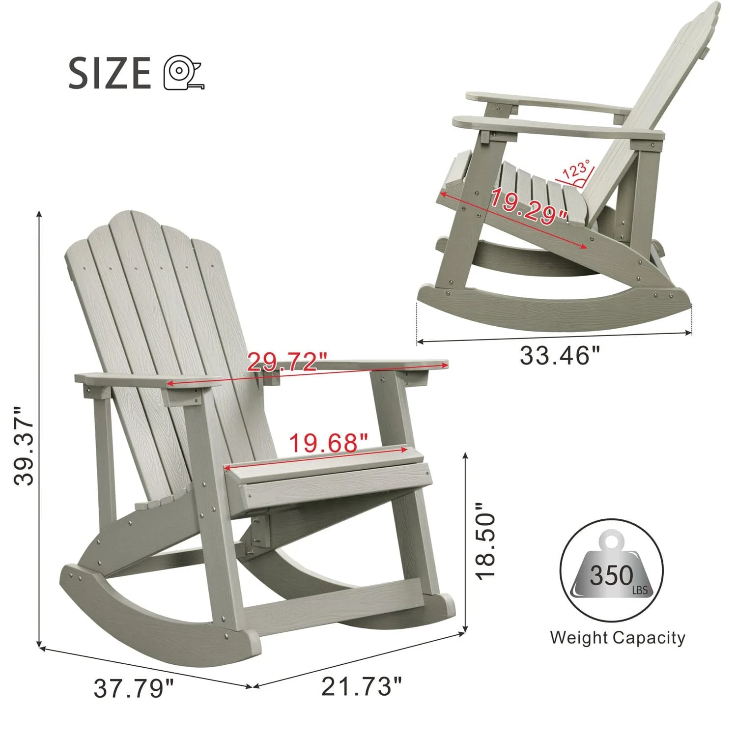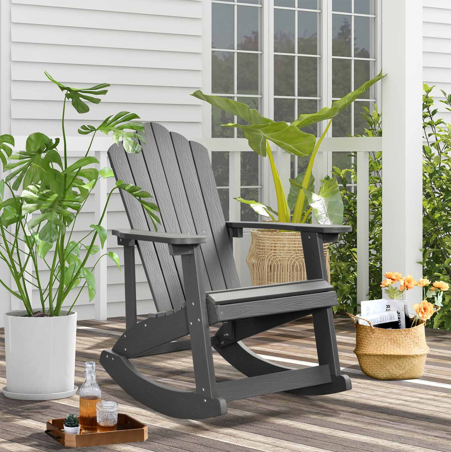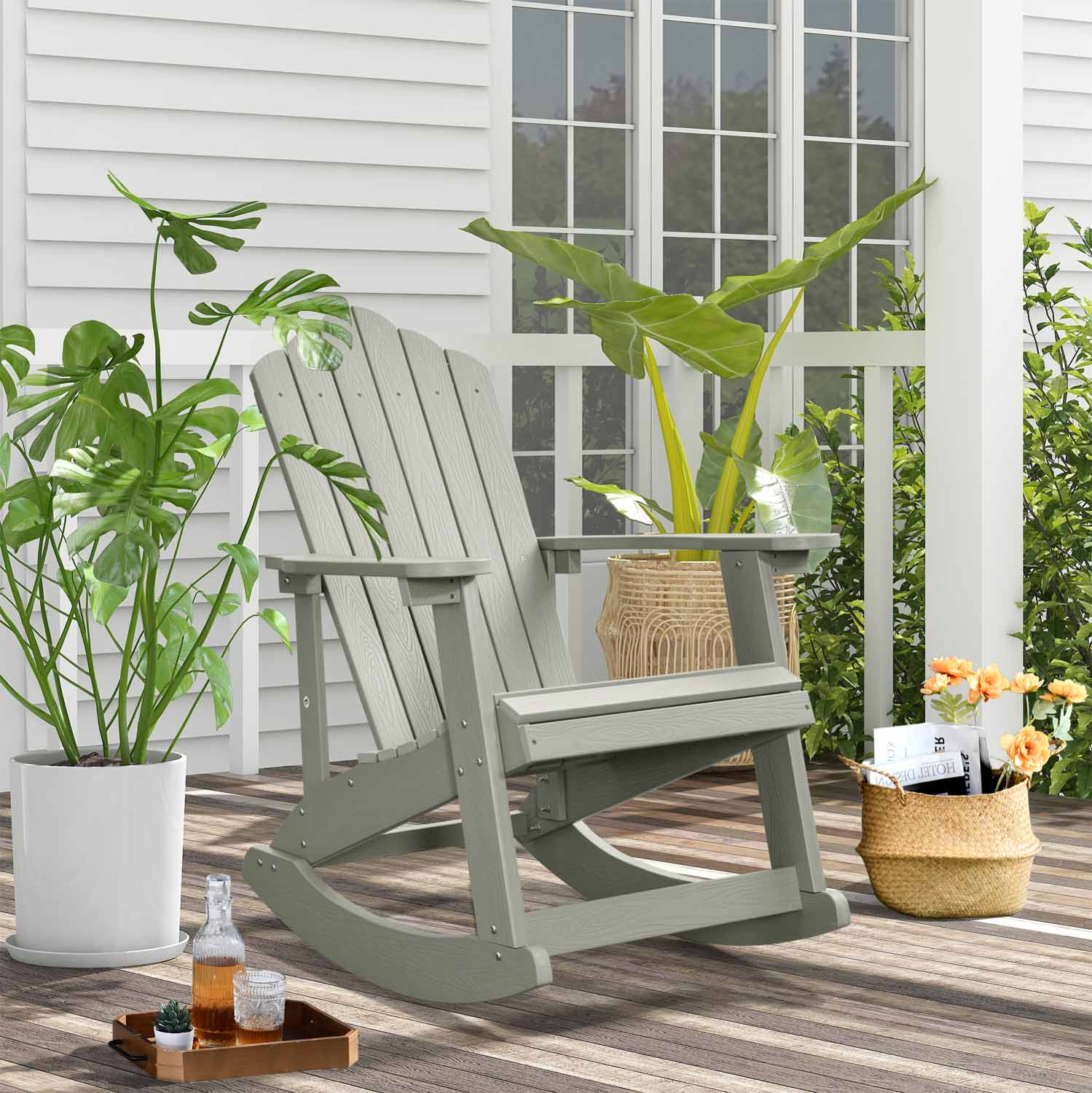 Ovios Outdoor Adirondack Rocker Chair, Waterproof Lounge Chair