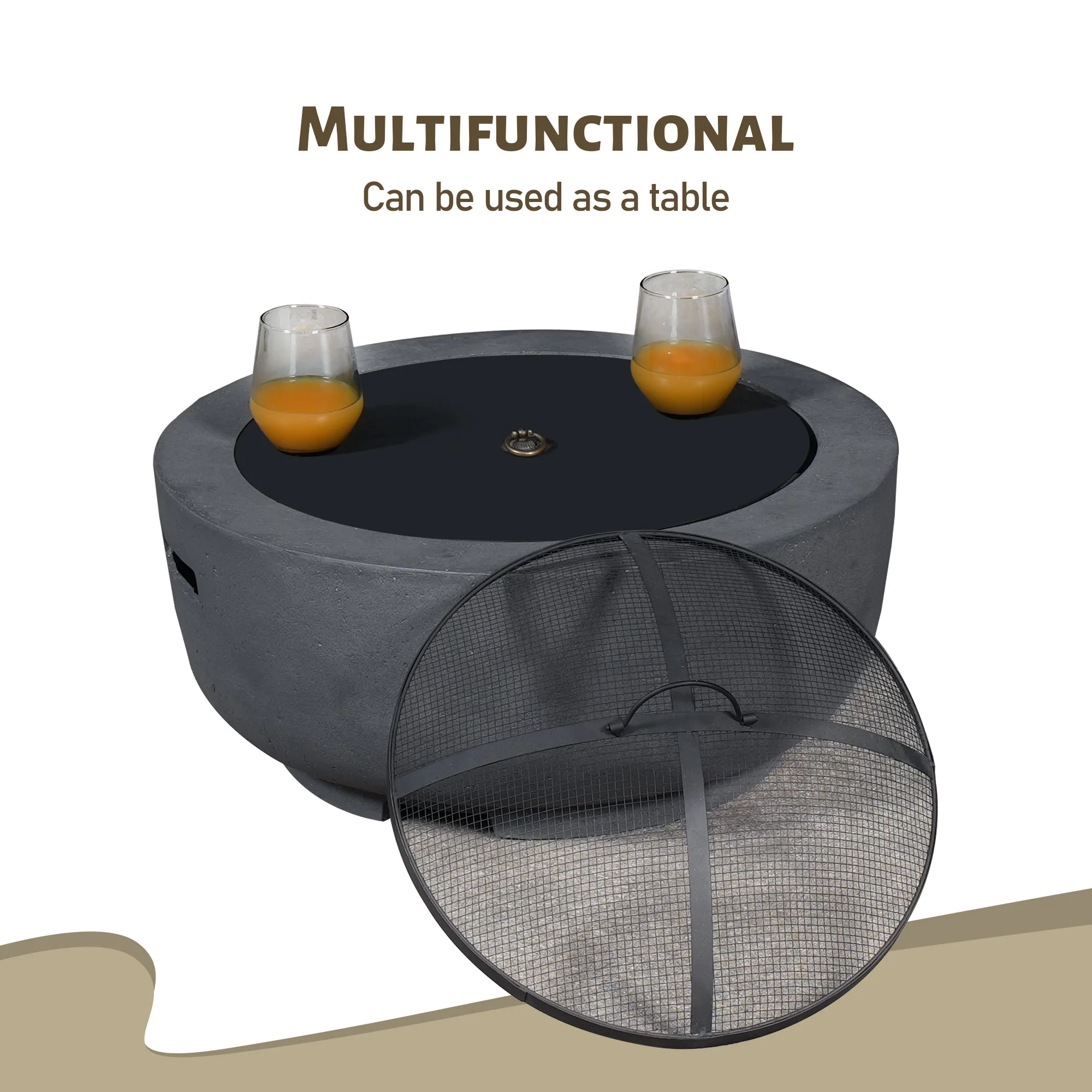 Ovios Patio Propane Outdoor 30'' Fire Pit Table with Lid for Pet Sofa Series