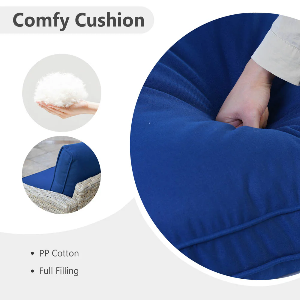 Coffee Wicker Navy Blue Cushion
