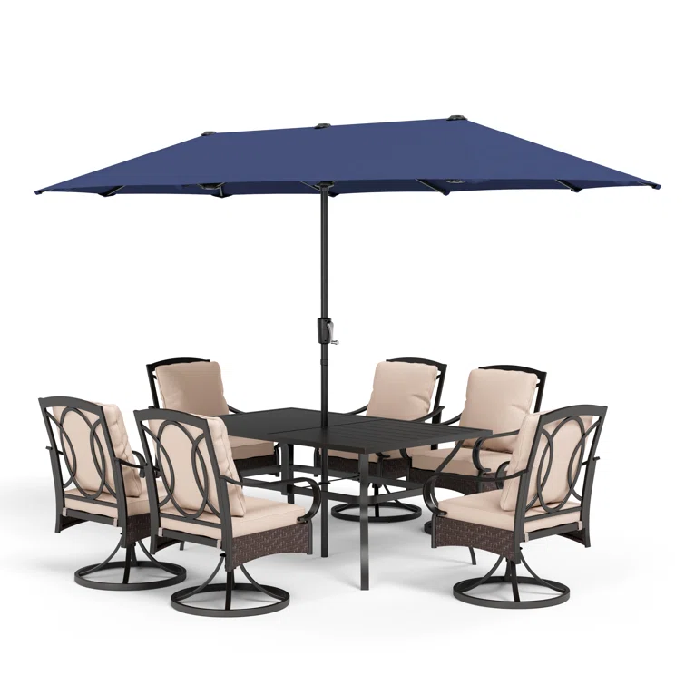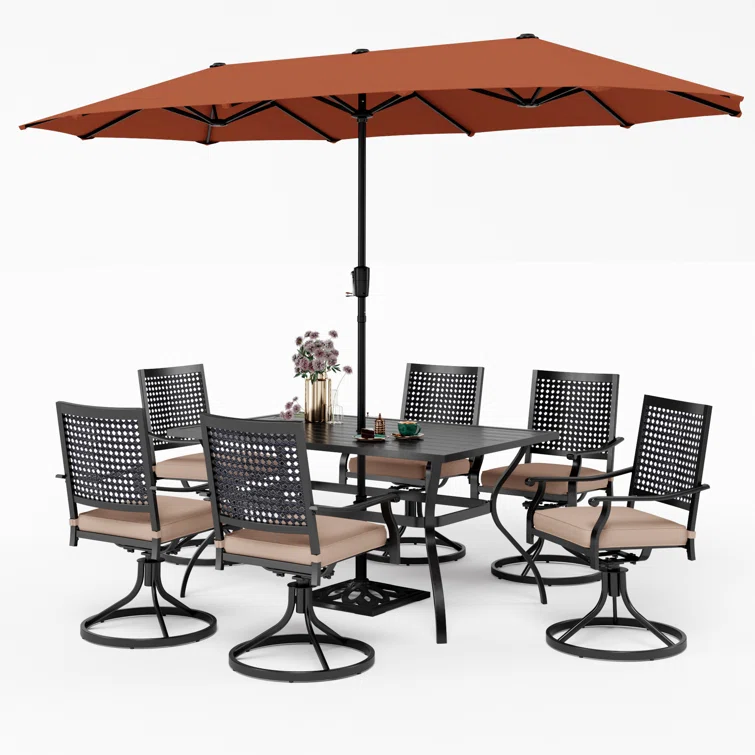 Bjartmar 6 - Person Outdoor Dining Set with Umbrella(Optional) & 6 Swivel Chairs
