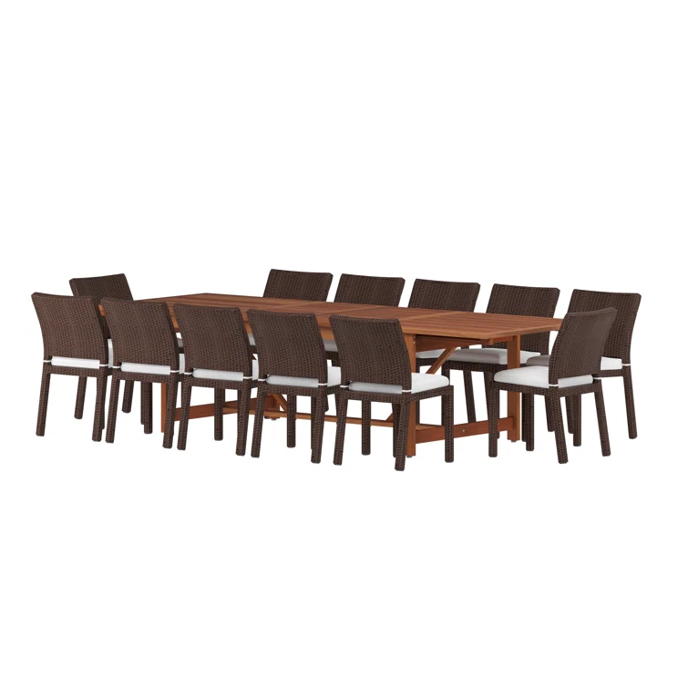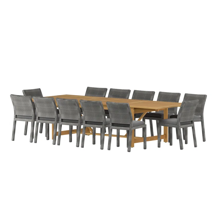 Anautica 13 Piece Teak Finish Outdoor Furniture Dining Set with Cushions