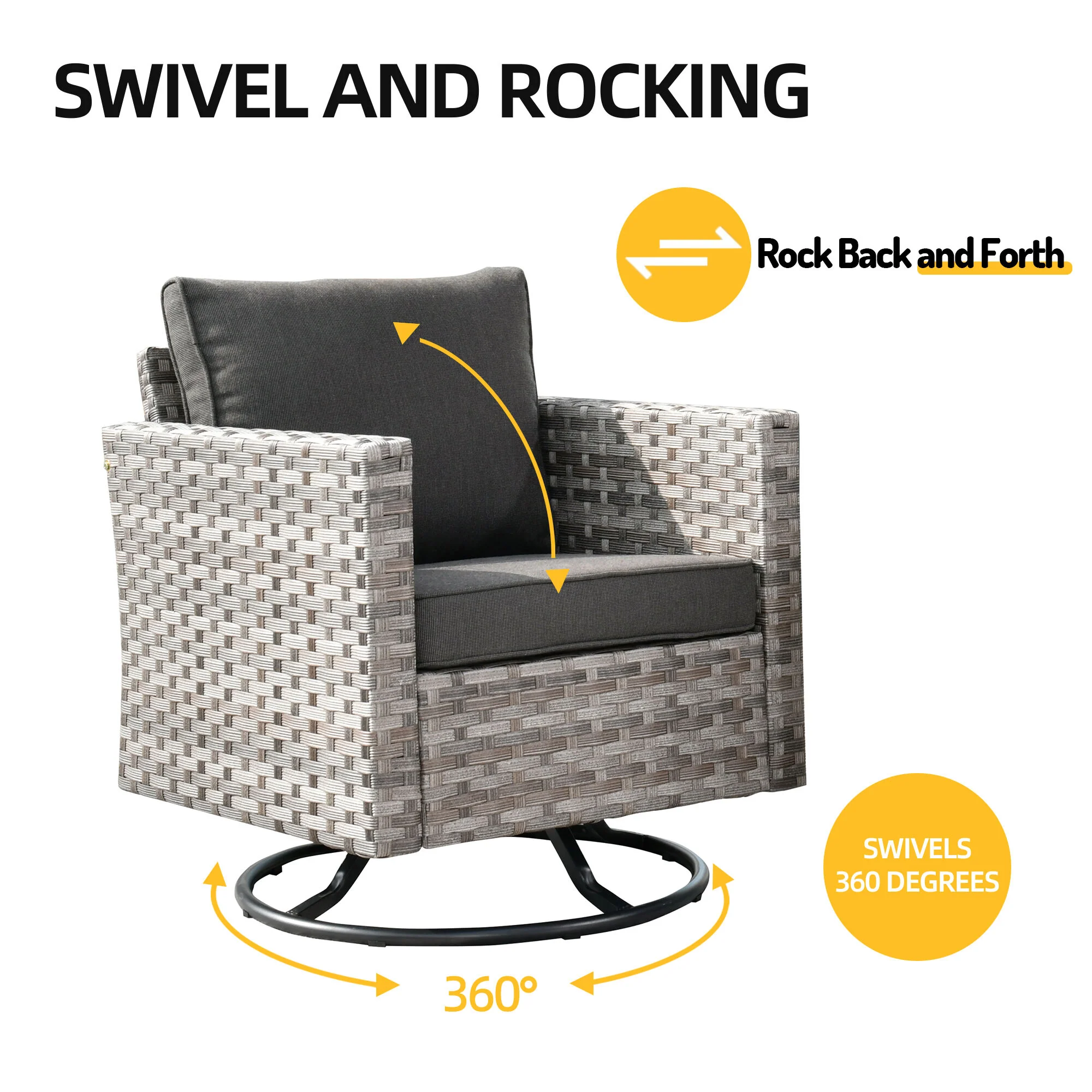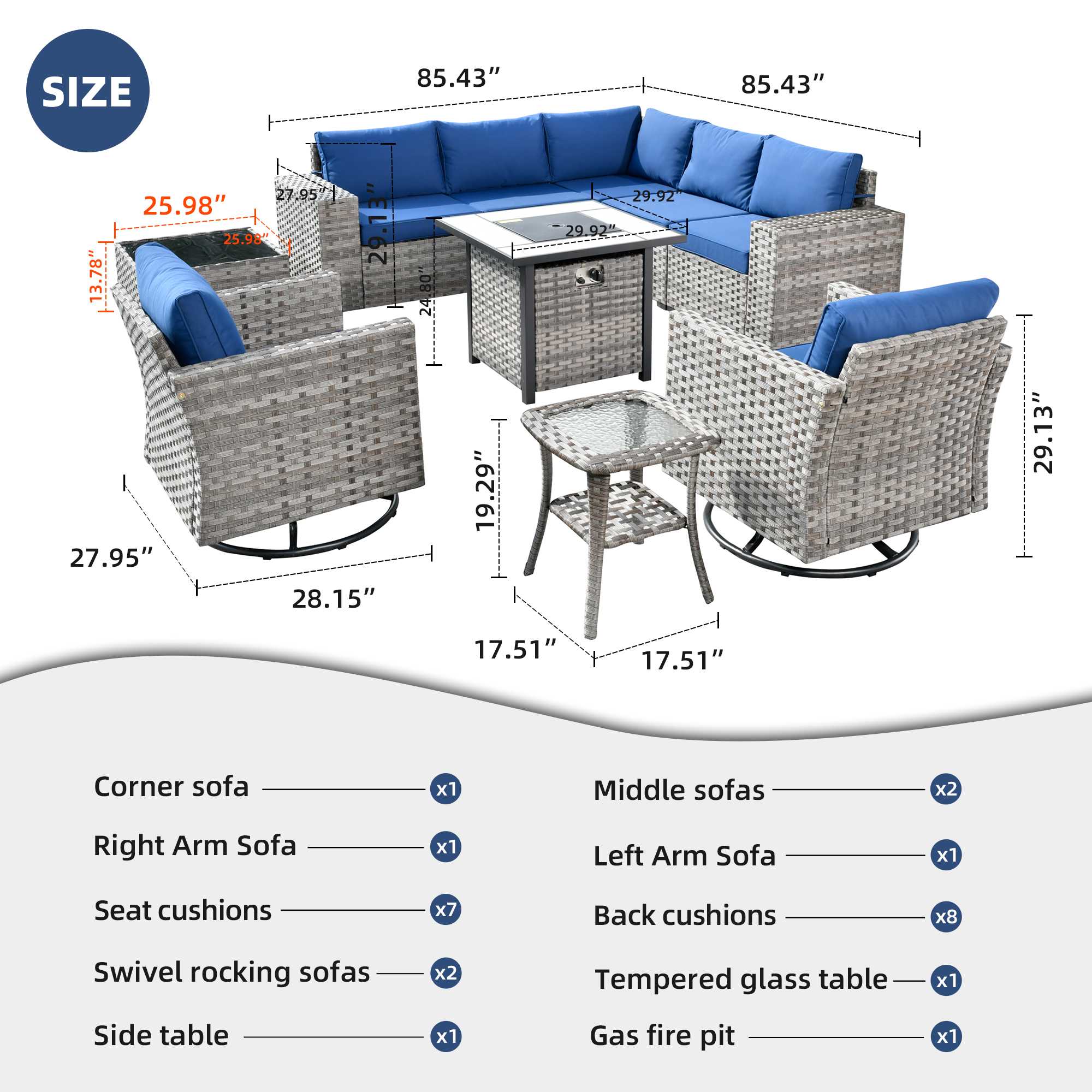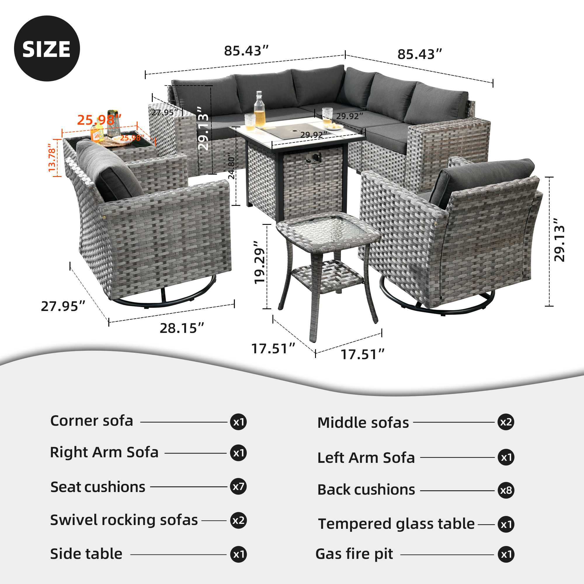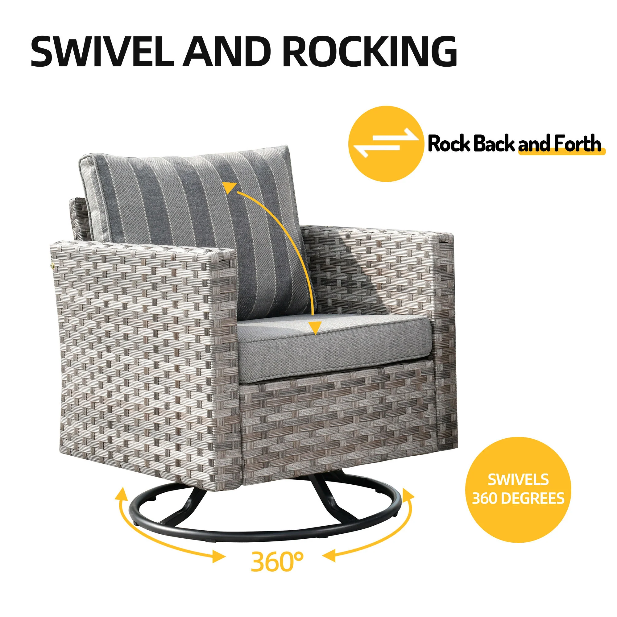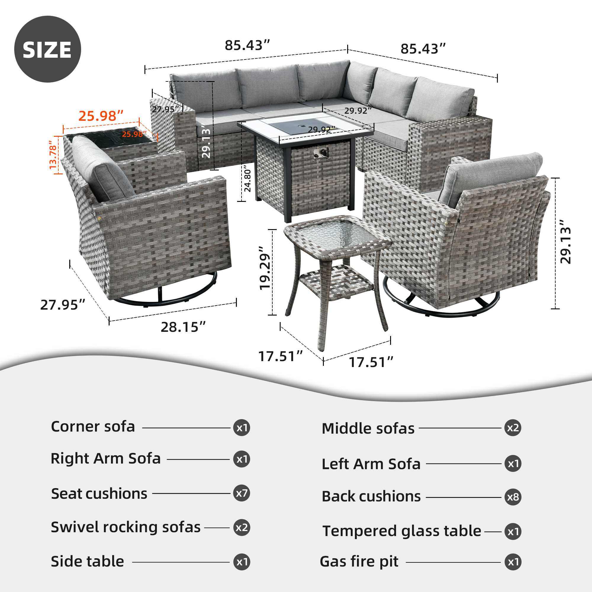 Ovios Patio Furniture 13-Piece Outdoor Sectional Sofa Set with Wicker Rocking Swivel Chairs and 42.12'' Fire Pit