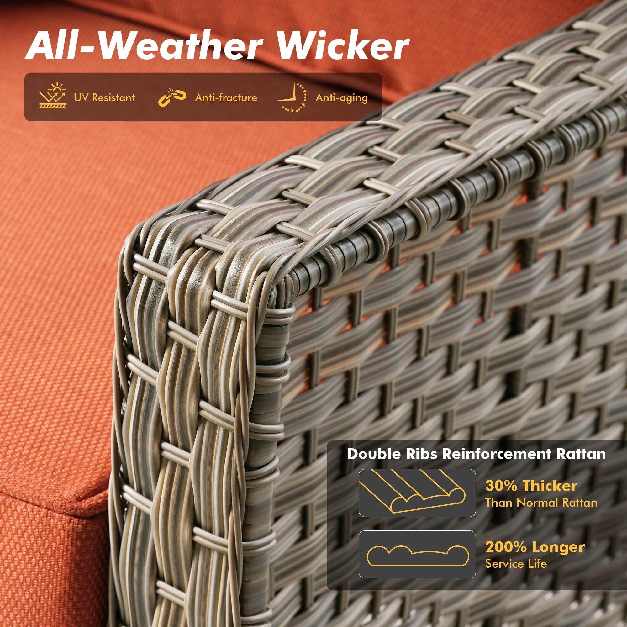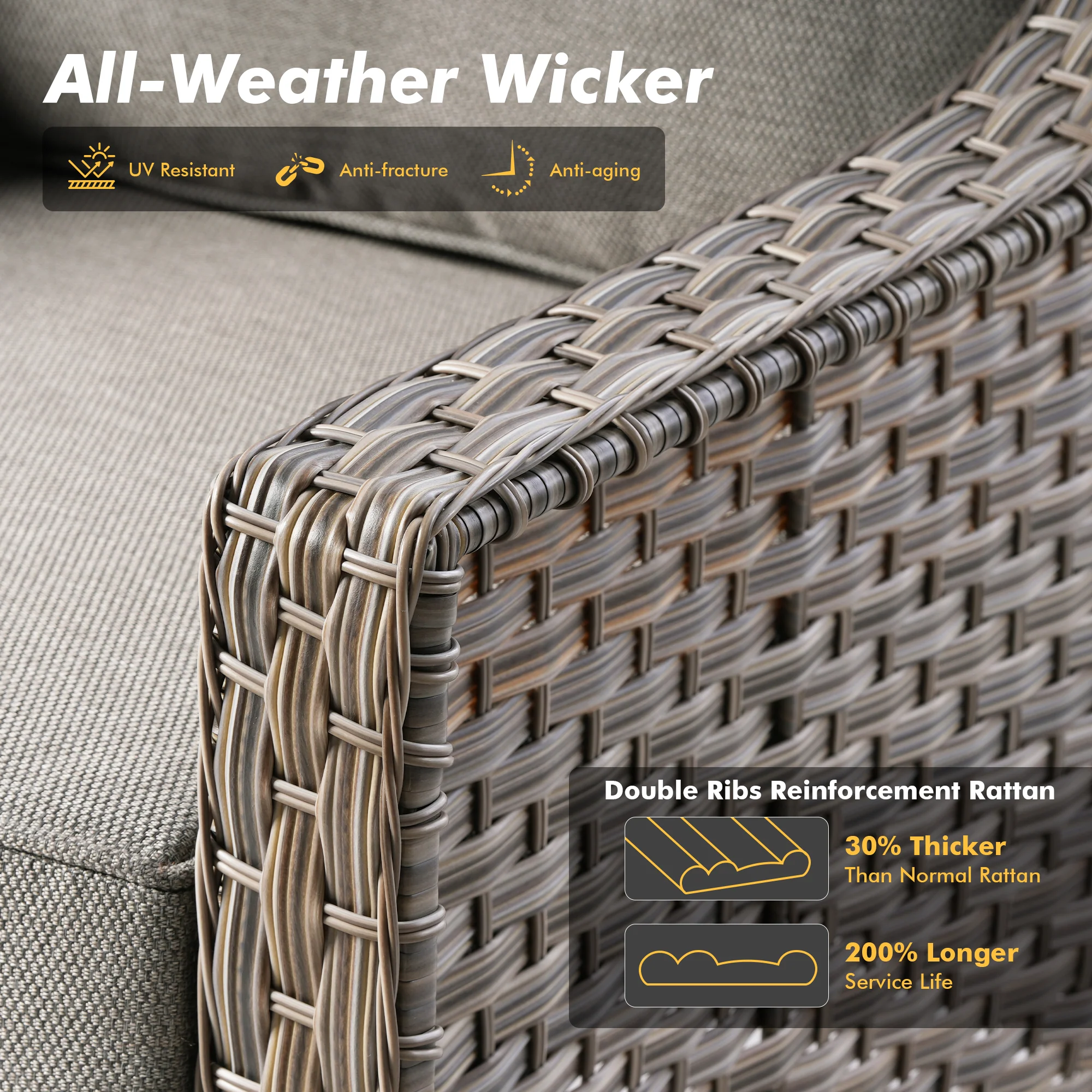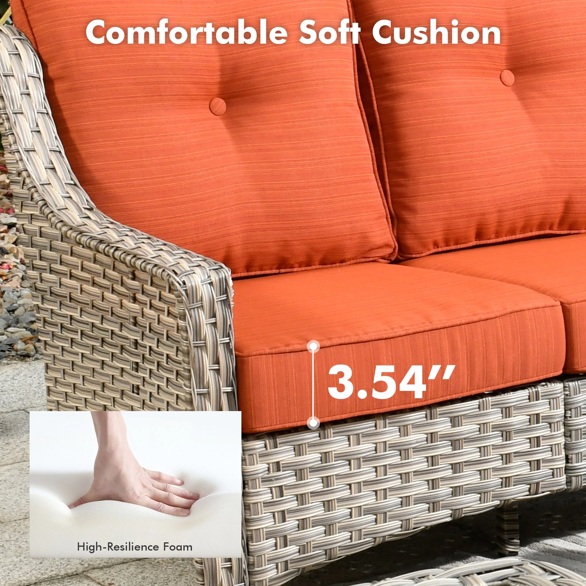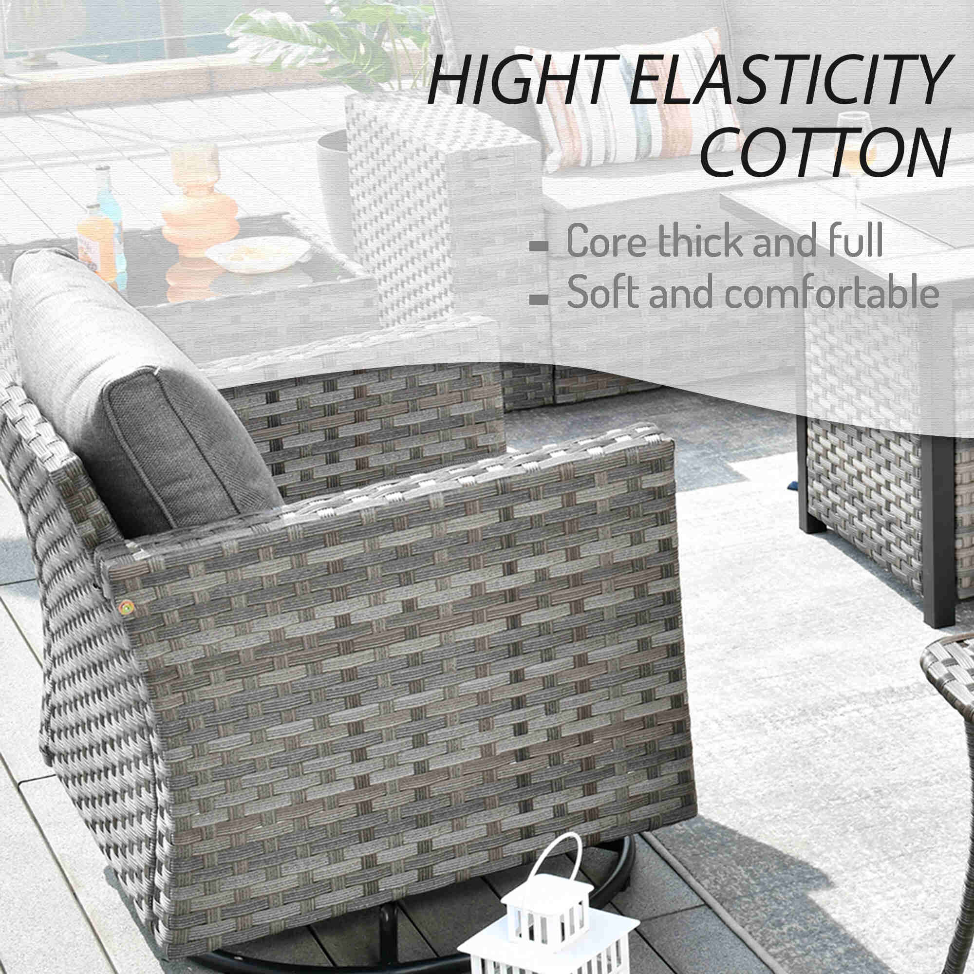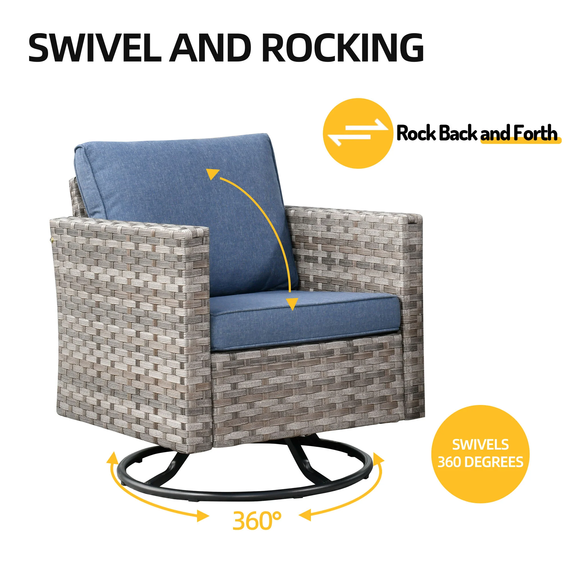 Ovios Patio Furniture 13-Piece Outdoor Sectional Sofa Set with Wicker Rocking Swivel Chairs and 42.12'' Fire Pit