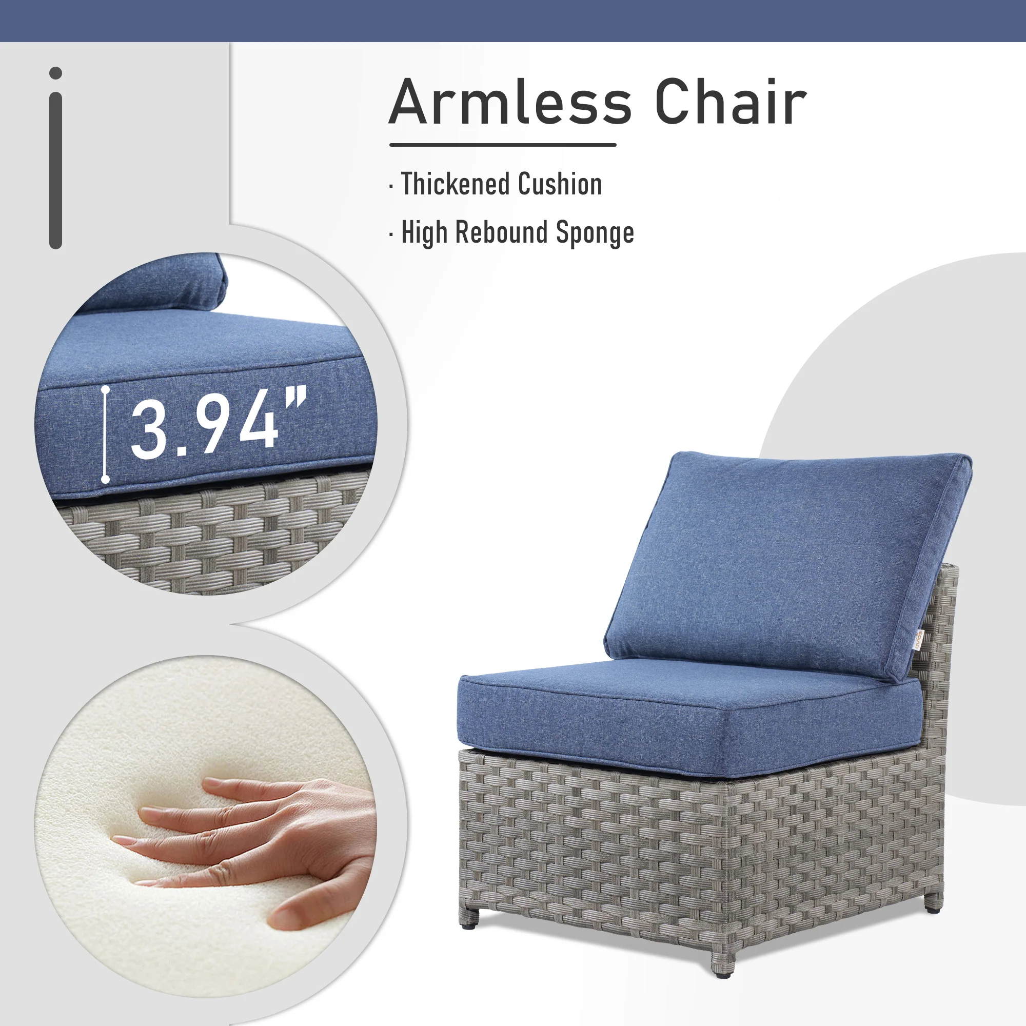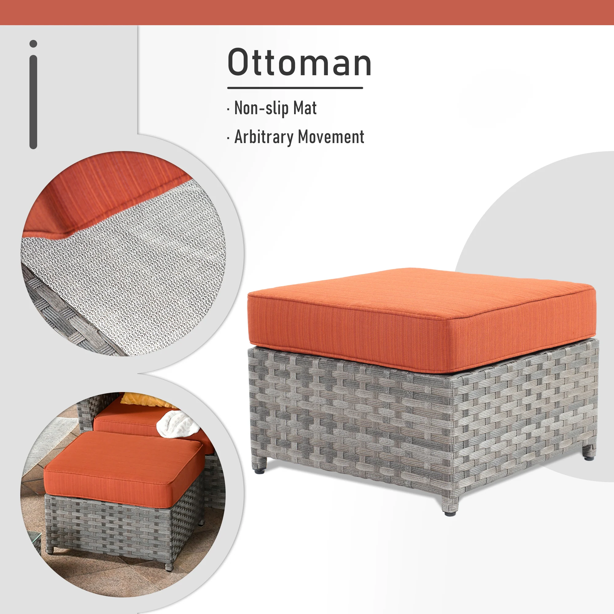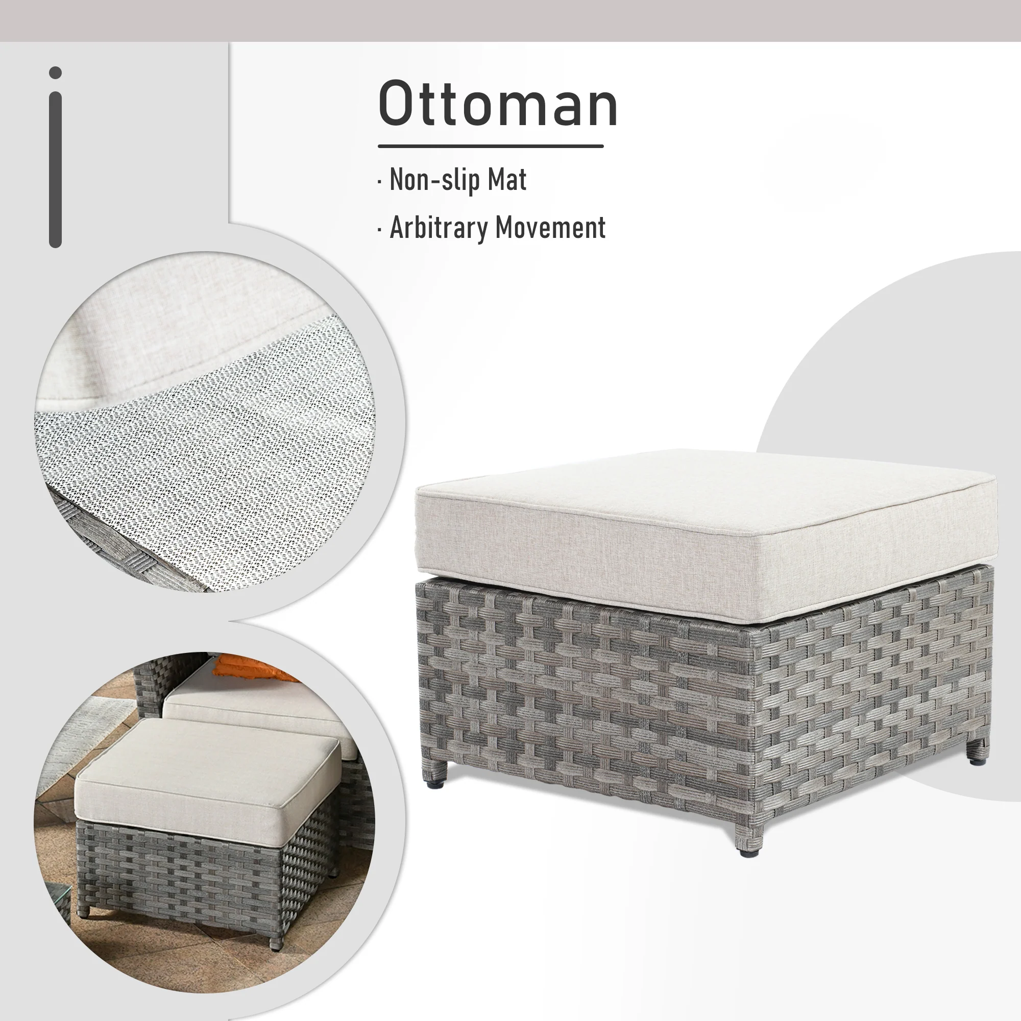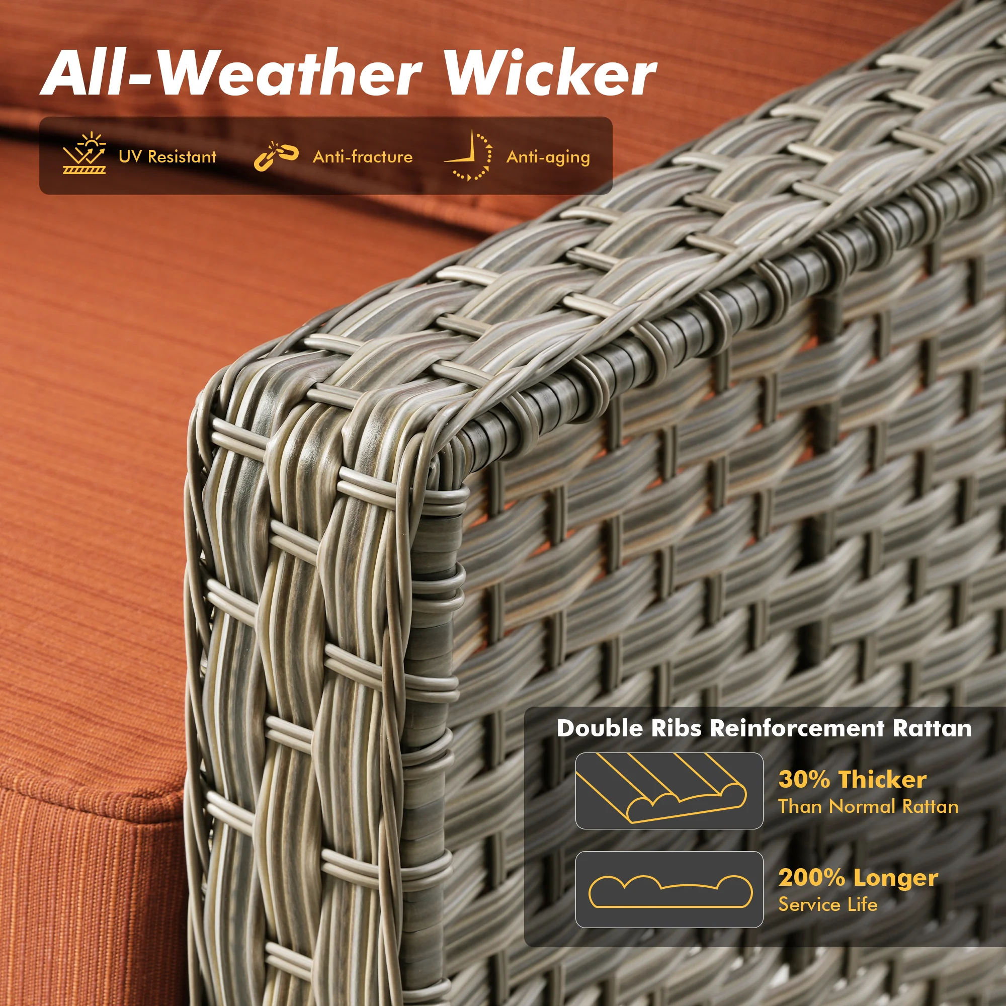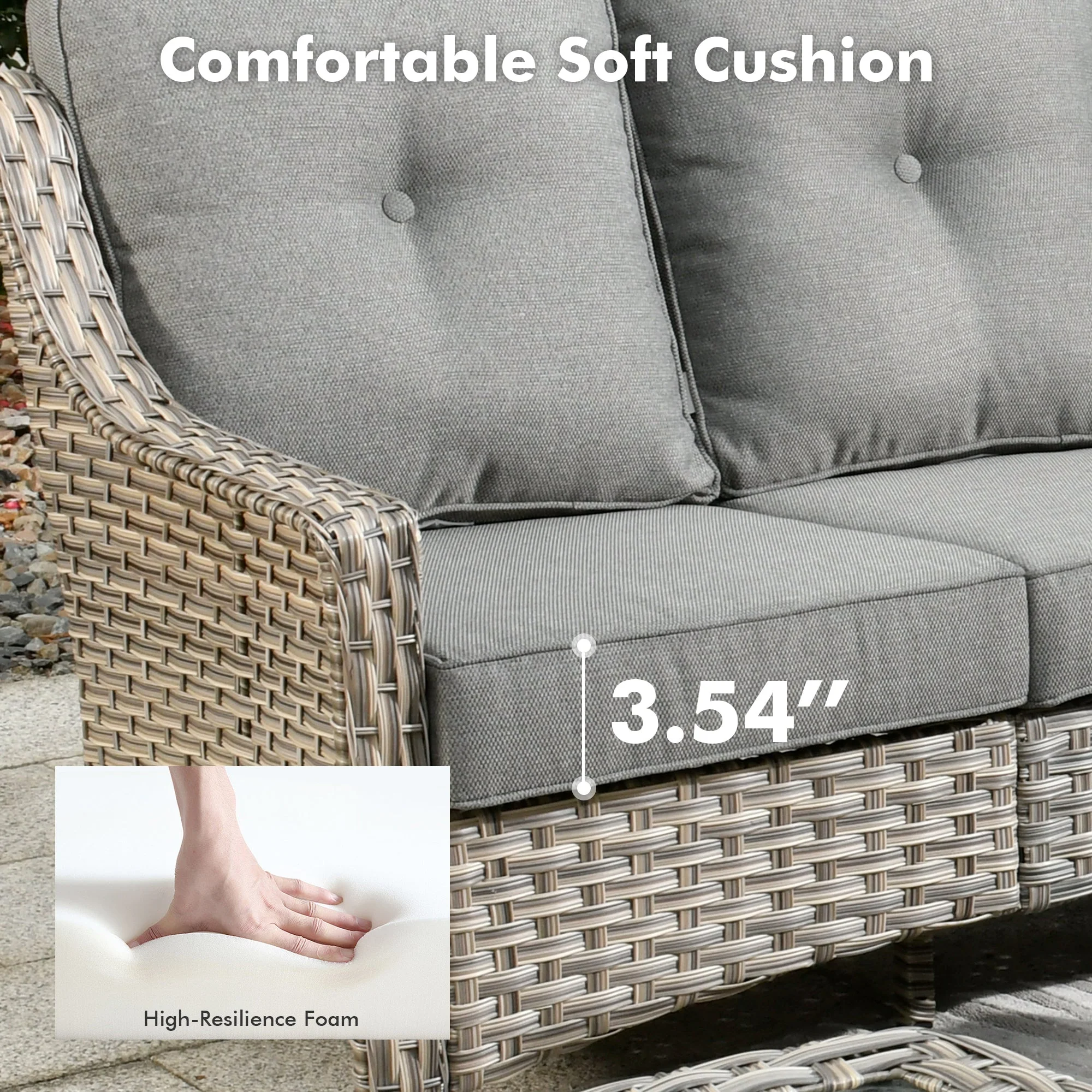 Ovios Patio Furniture 13-Piece Outdoor Sectional Sofa Set with Wicker Rocking Swivel Chairs and 42.12'' Fire Pit