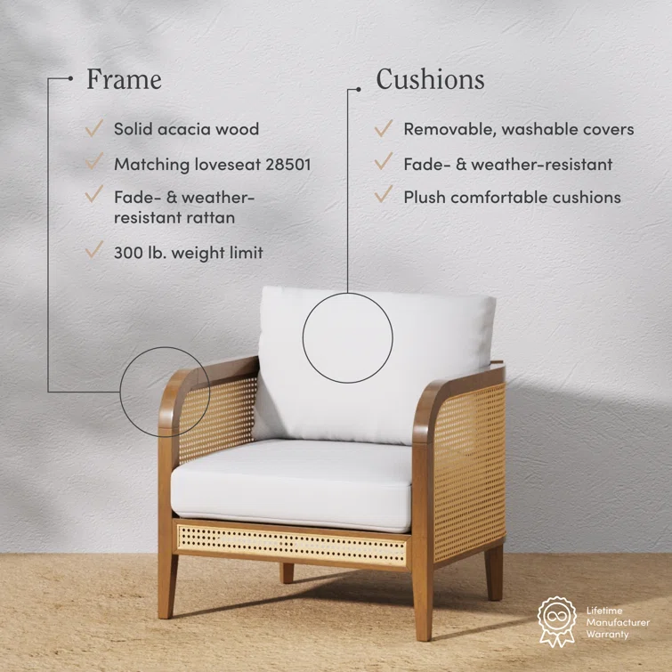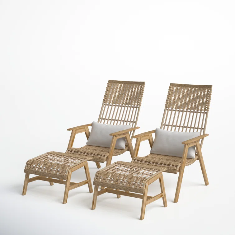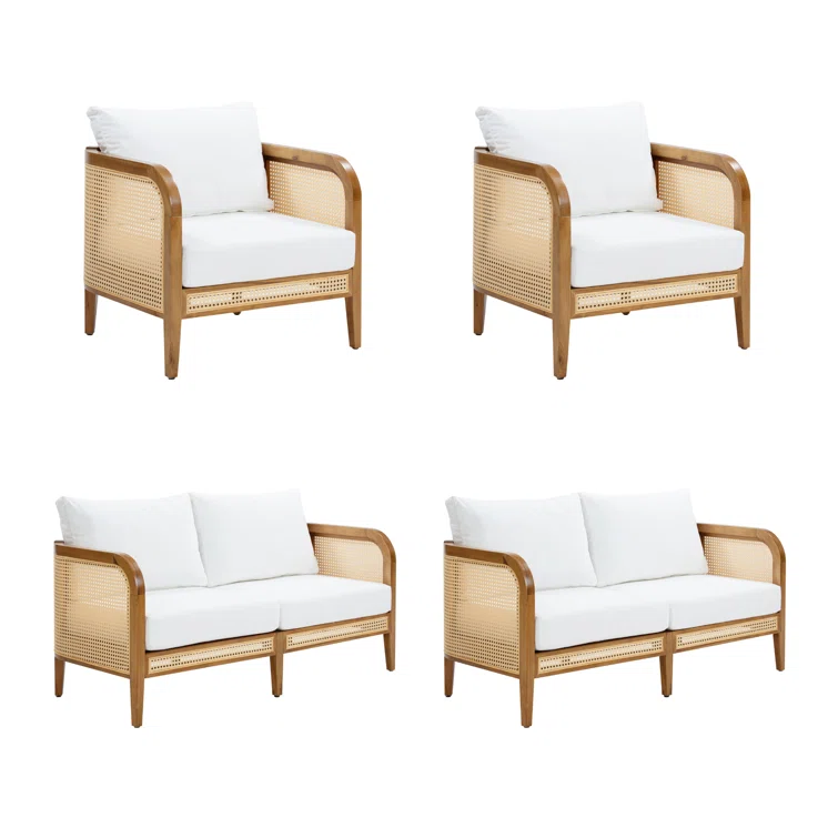 4-Piece Conversation Patio Set, Bohemian Wooden Outdoor Loveseat And Chairs With Cushions