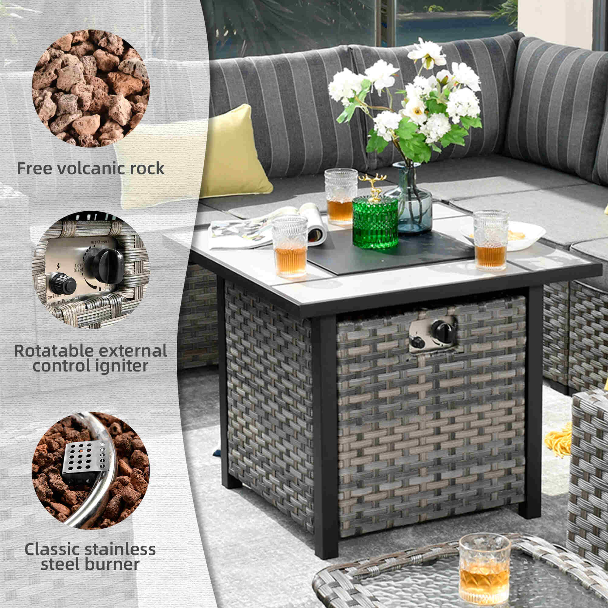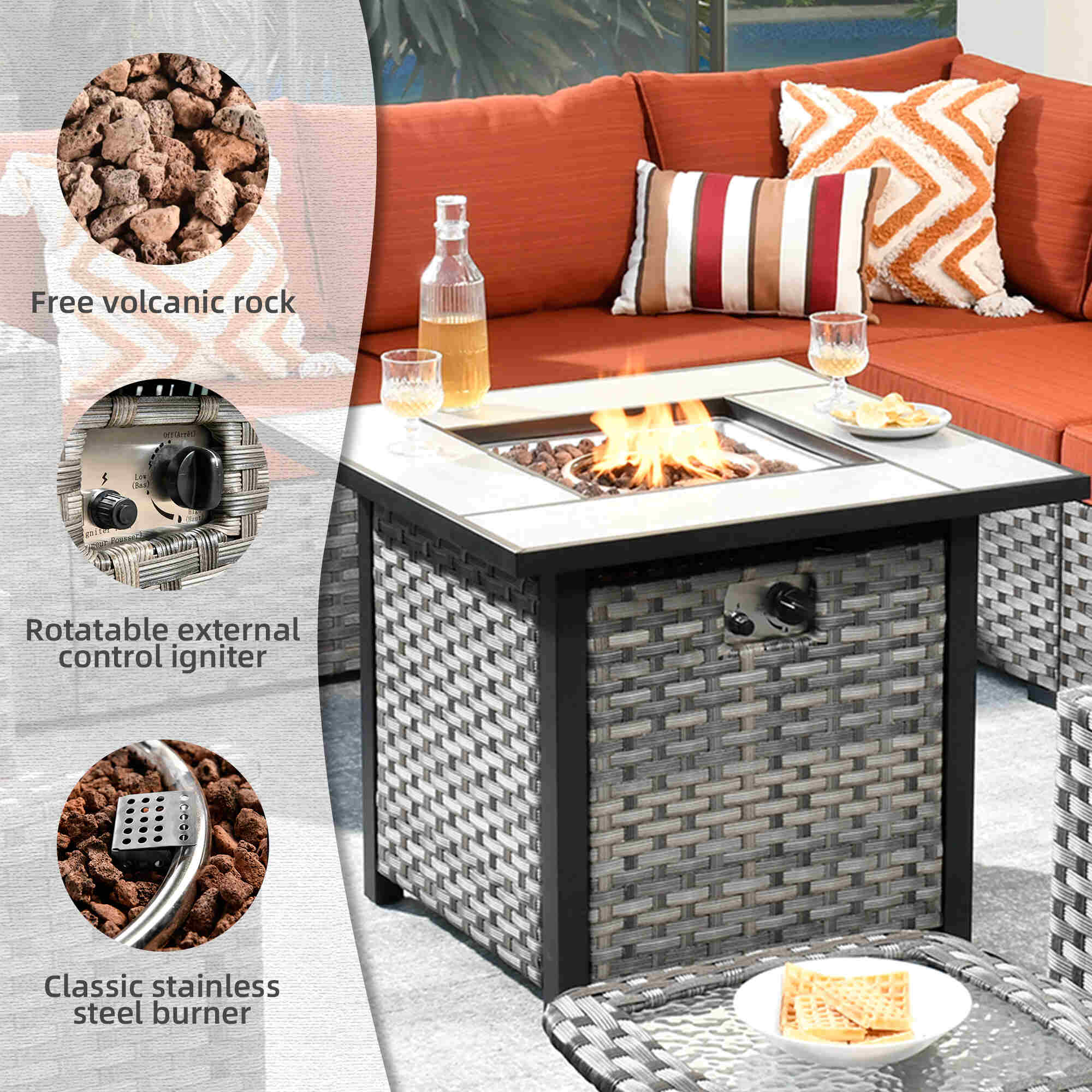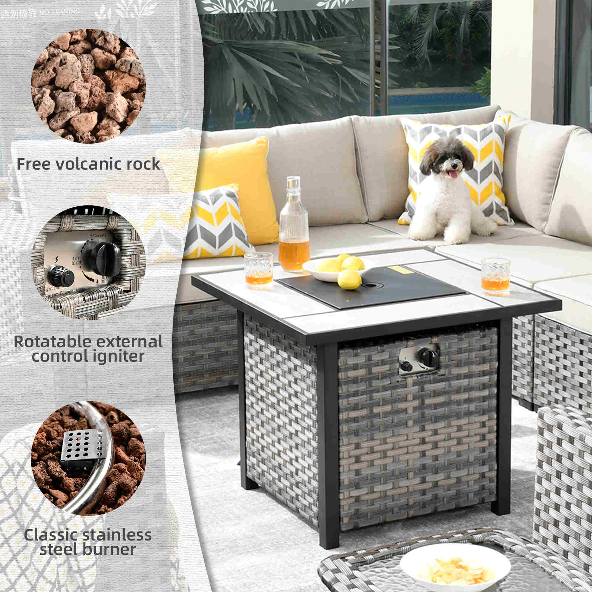 Ovios Patio Furniture Set 13-Piece include 42"Rectangle Fire Pit Table, Partially Assembled,BRS Series