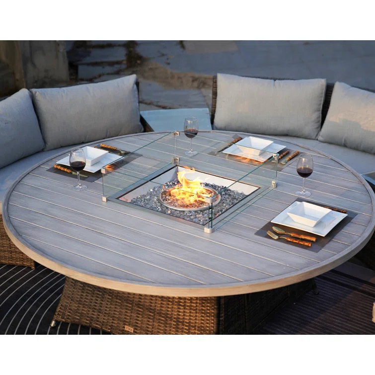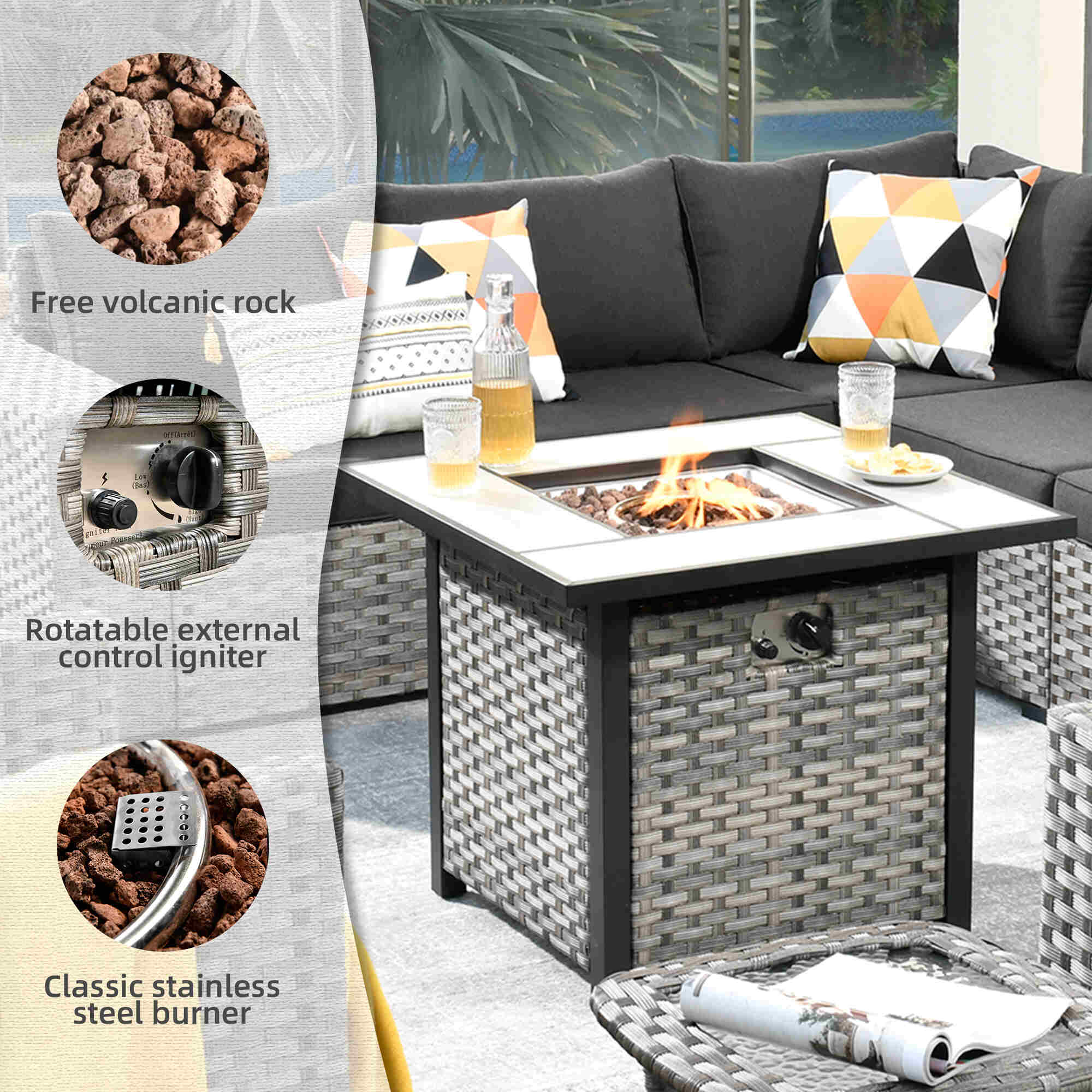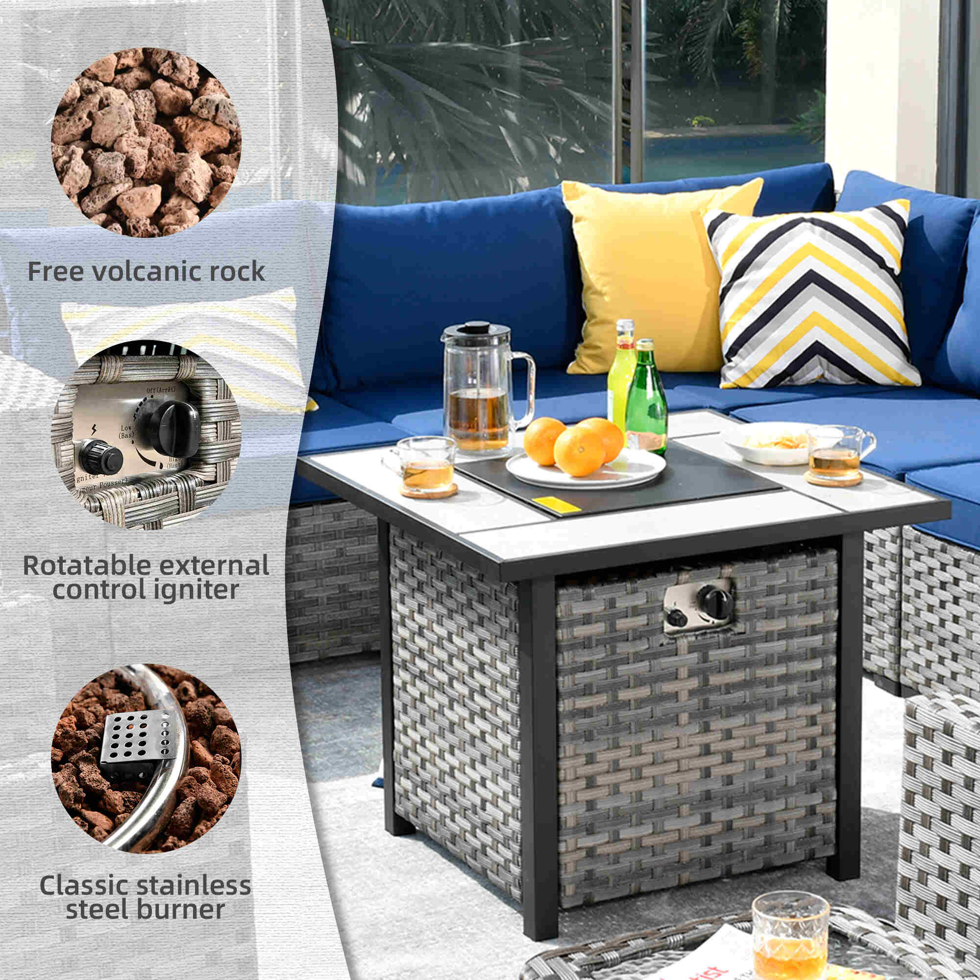 Ovios Patio Furniture Set 13-Piece include 42"Rectangle Fire Pit Table, Partially Assembled,BRS Series