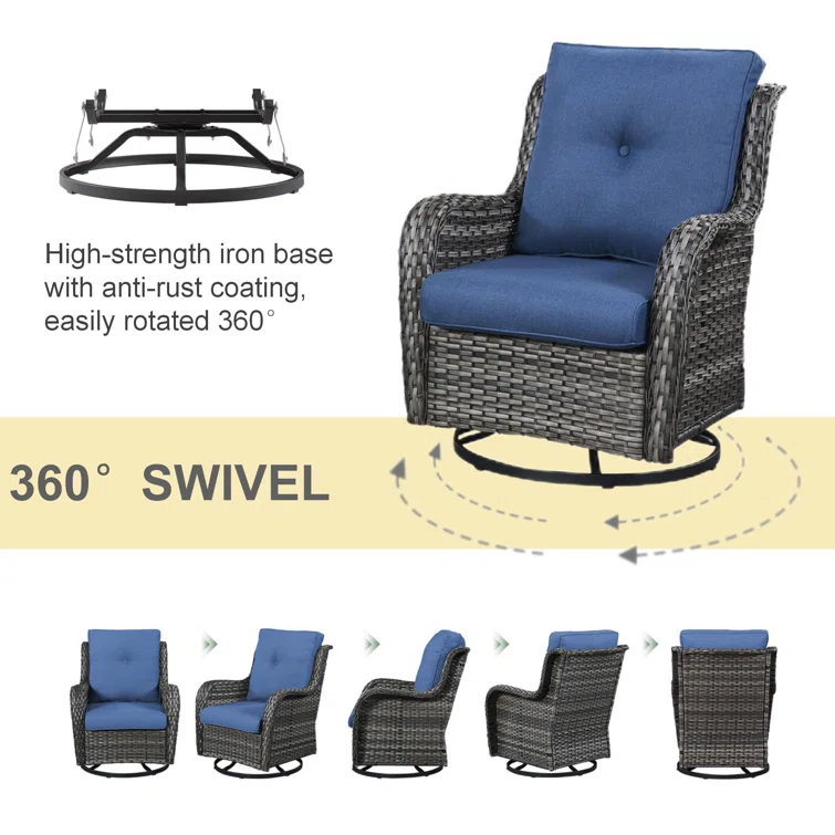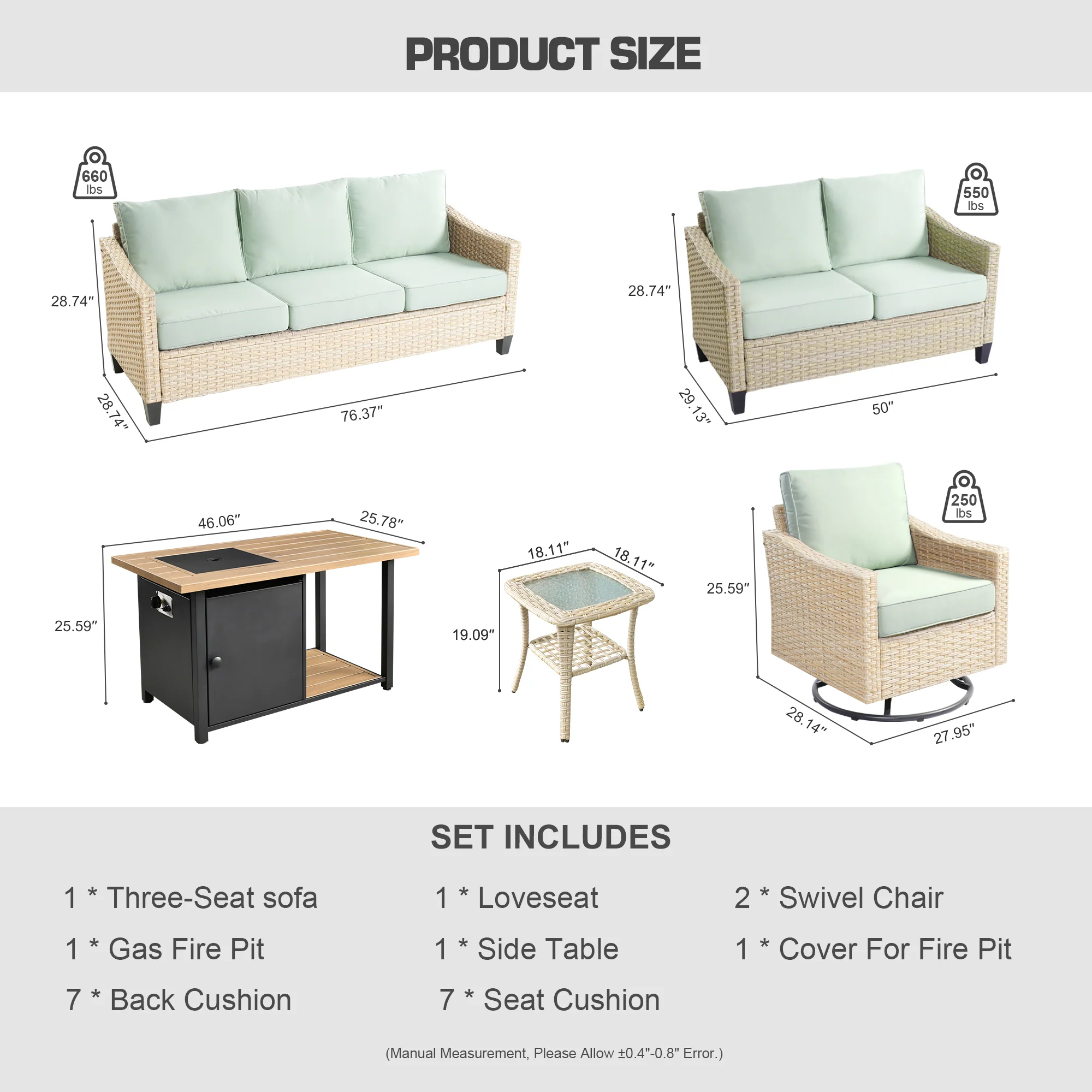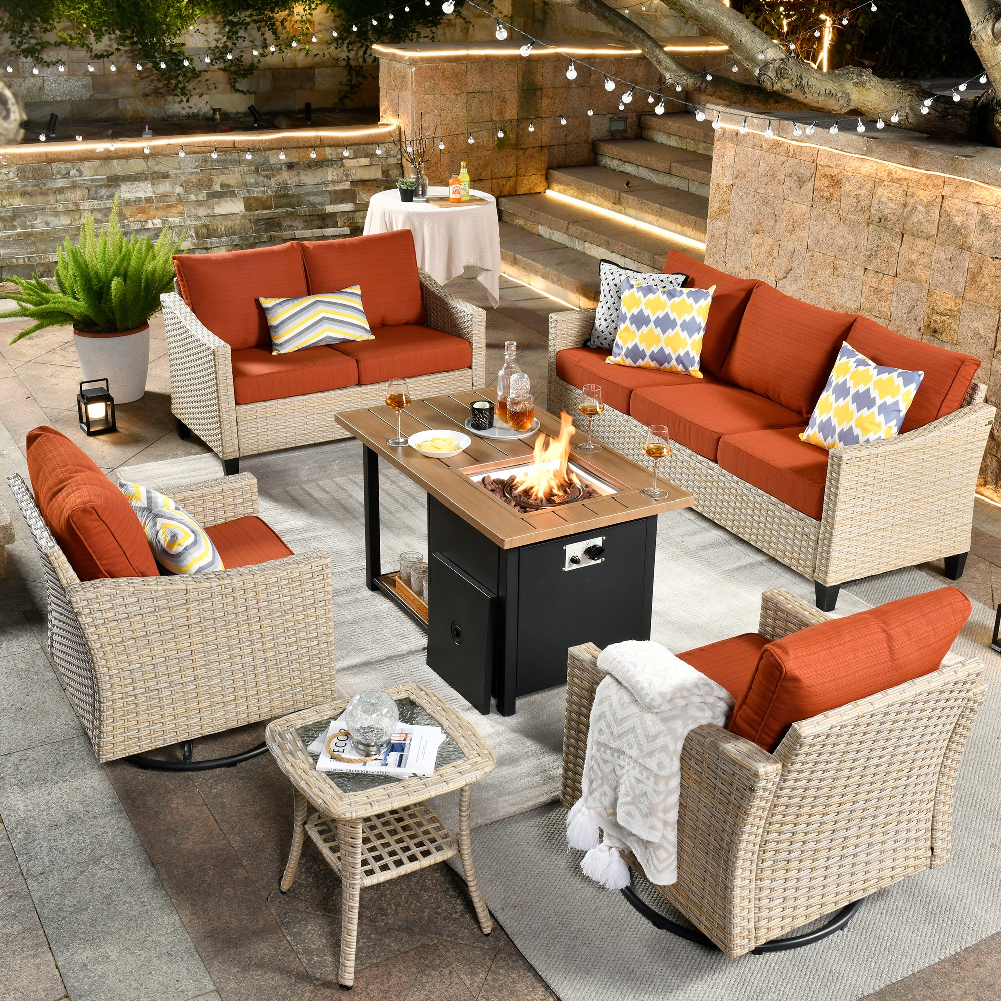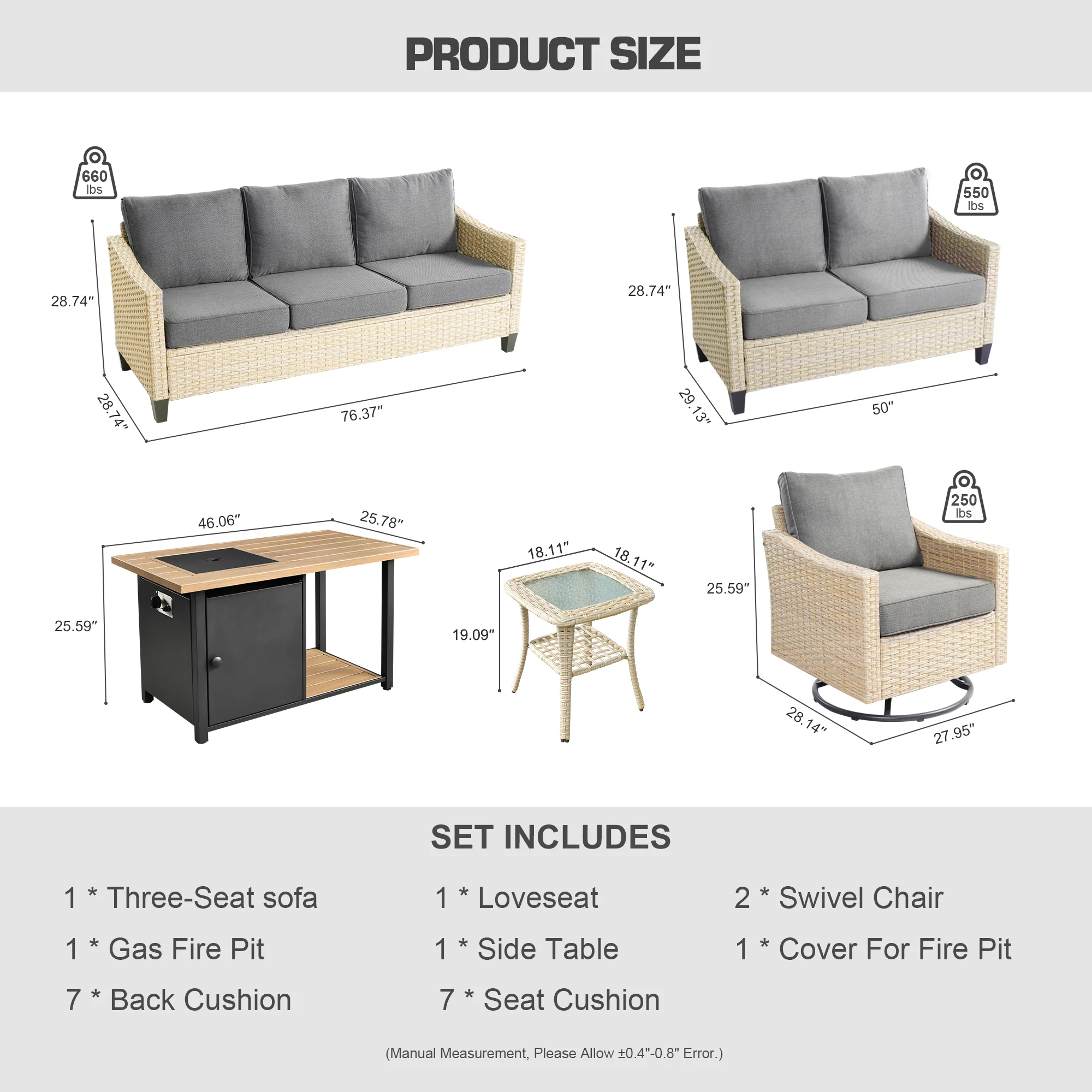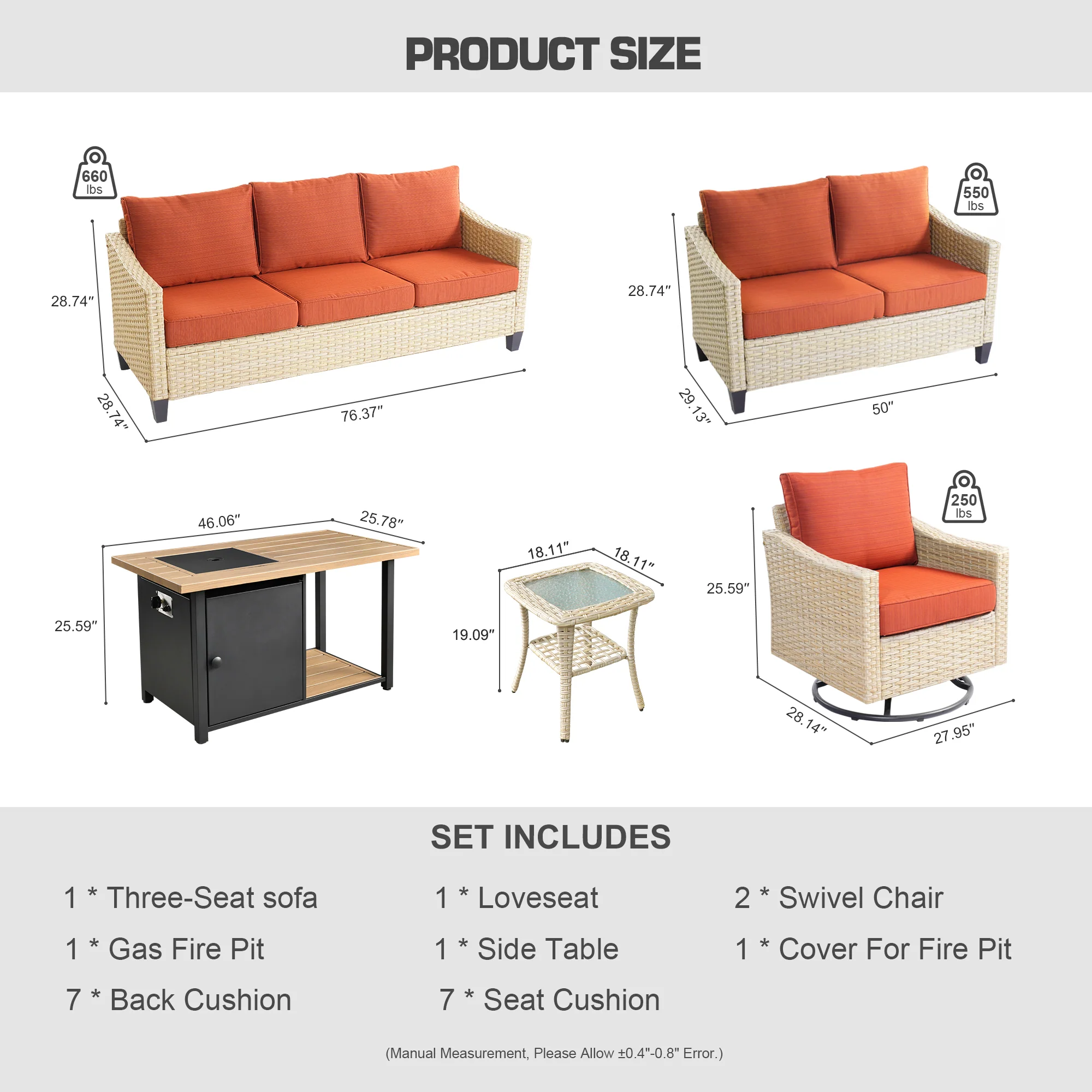 Ovios Athena Series Outdoor Furniture Sets 6-Piece include Swivel Chair & 46'' Fire Pit Table