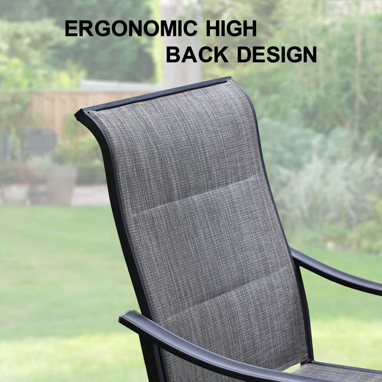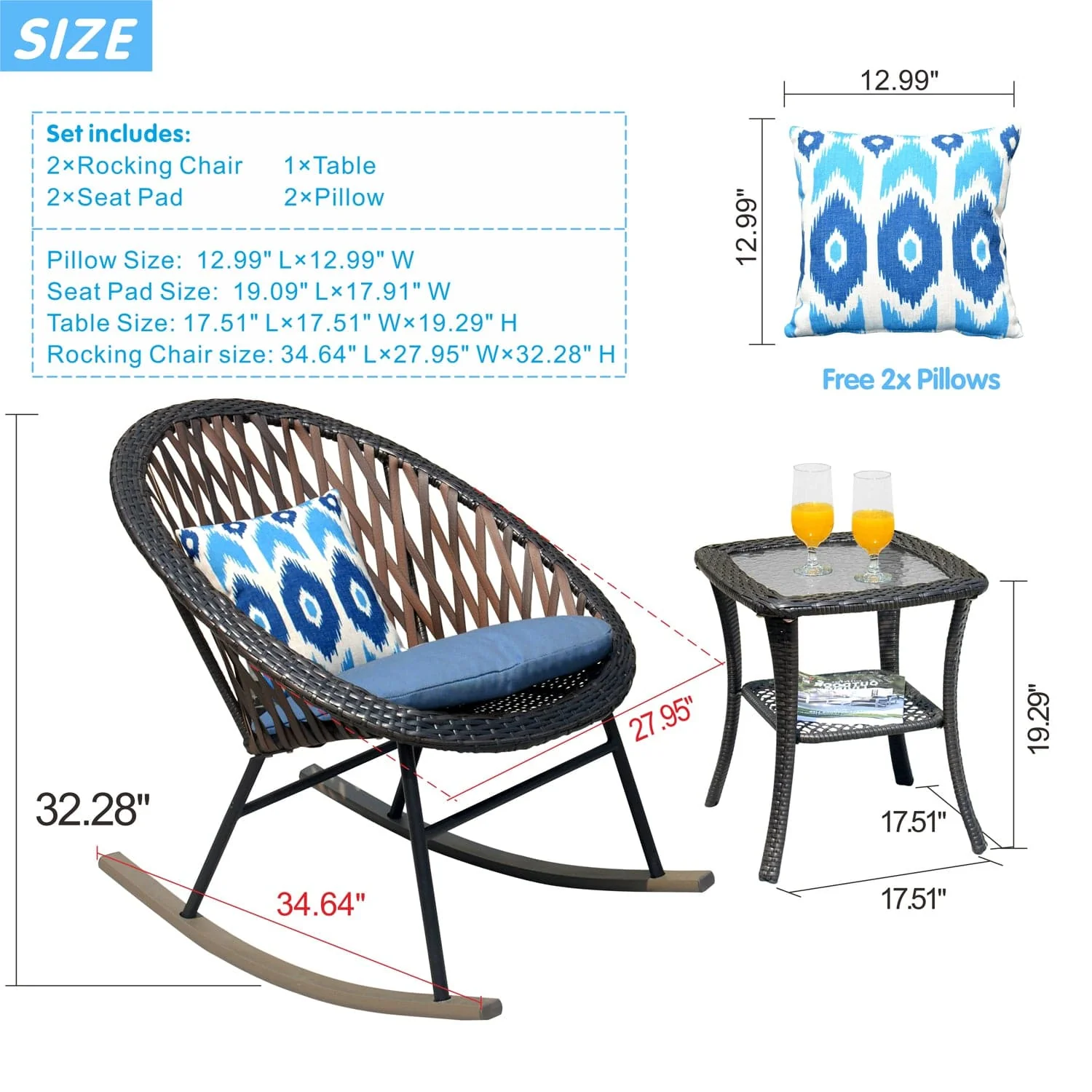 Ovios Patio 2 Pieces Outdoor Rocking Swivel Chairs with Glass Coffee Table