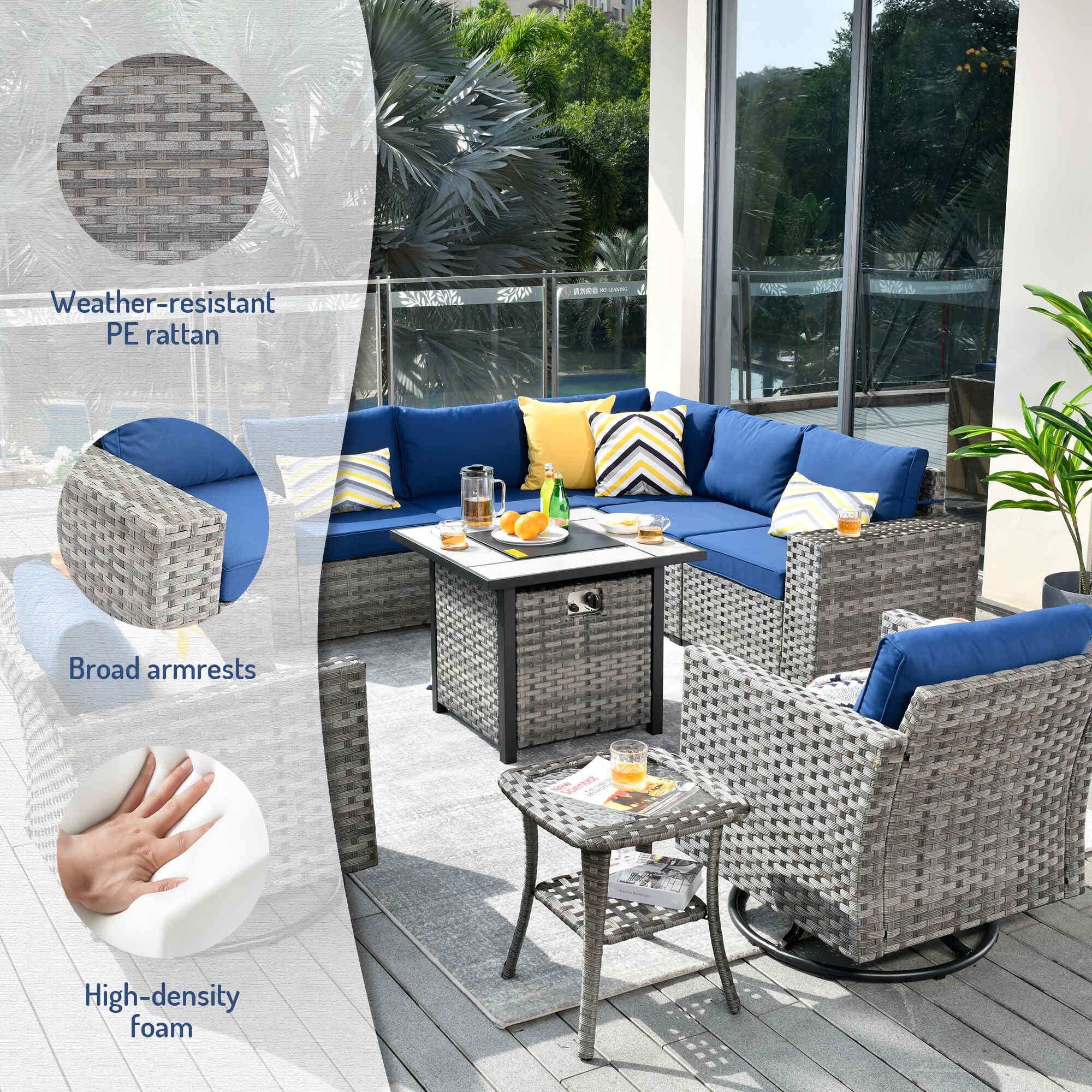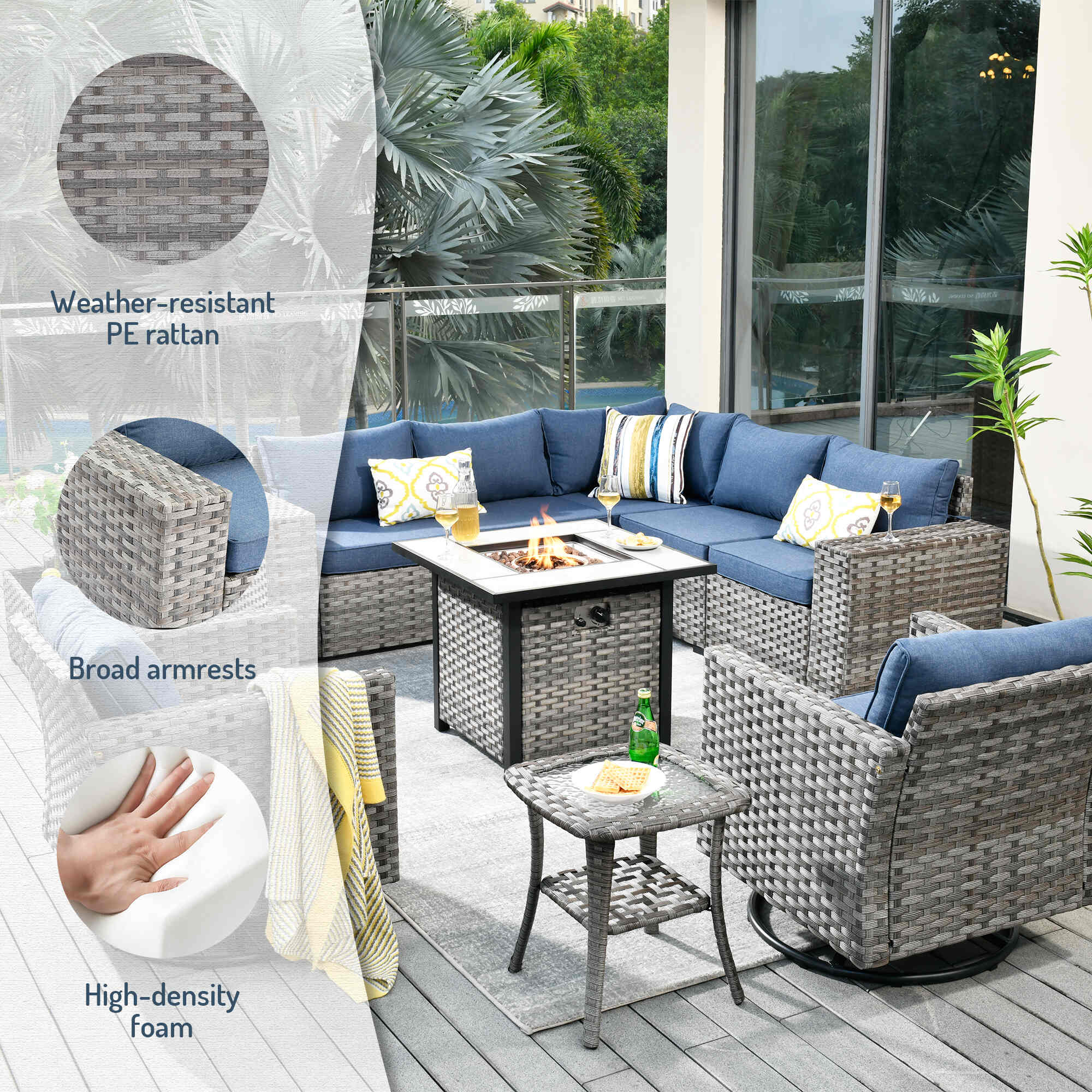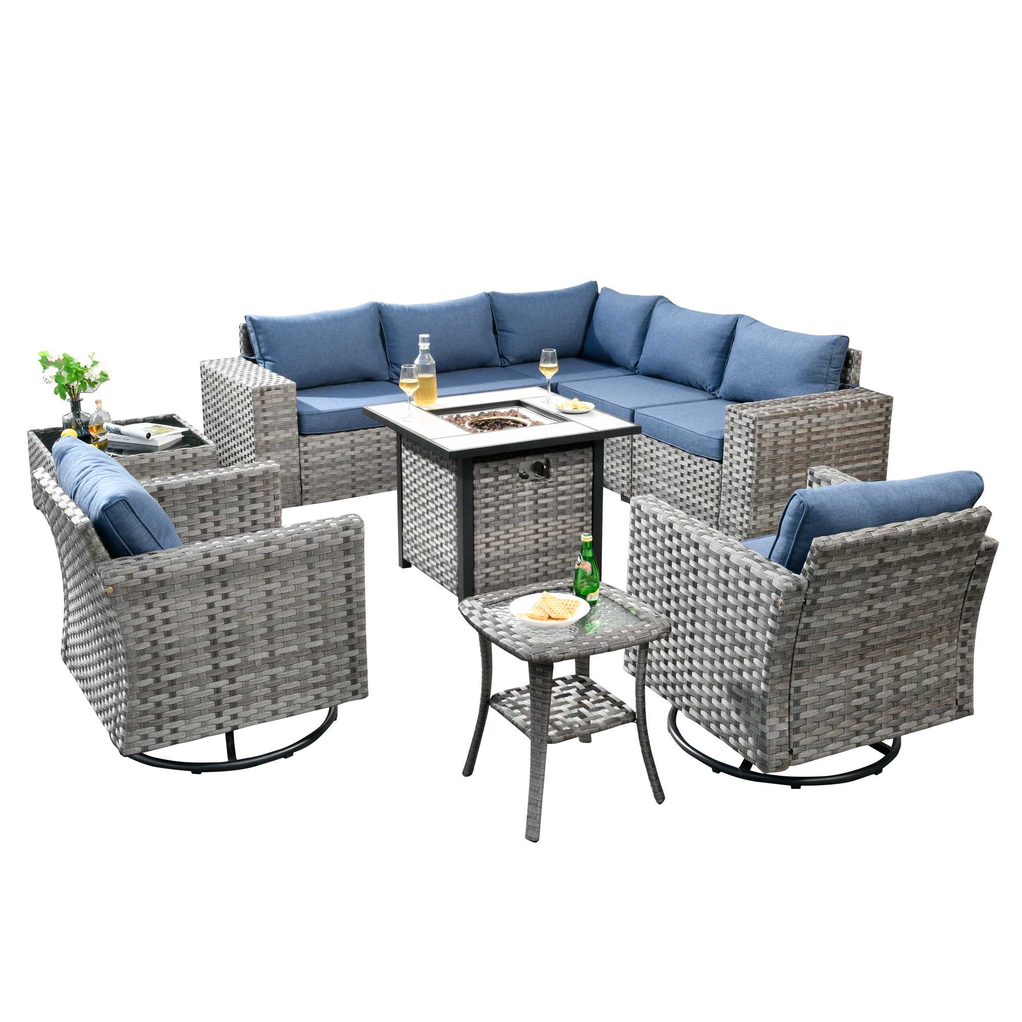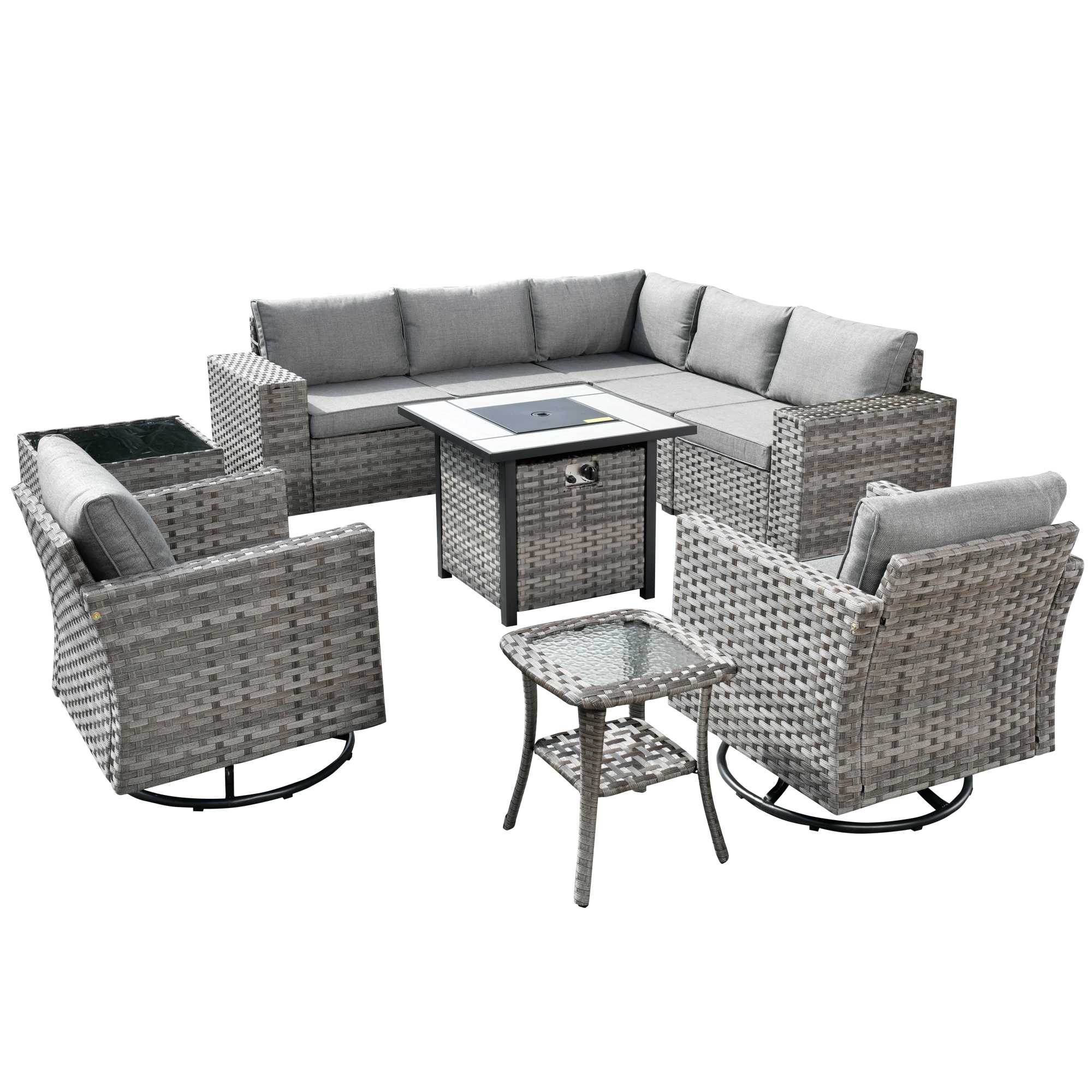 Ovios Patio Furniture Set 10-Piece include 42"Fire Pit Table,New Rimaru Series