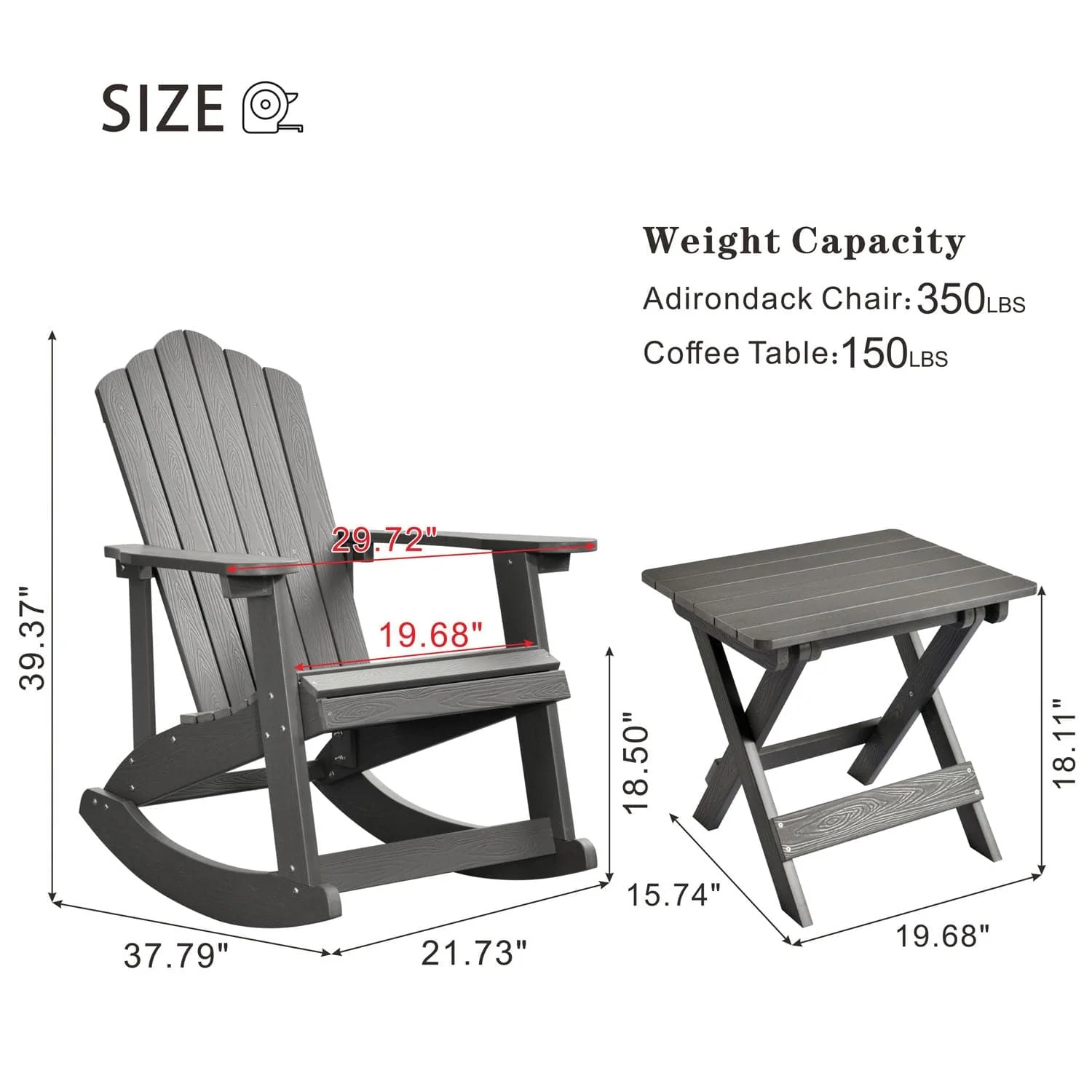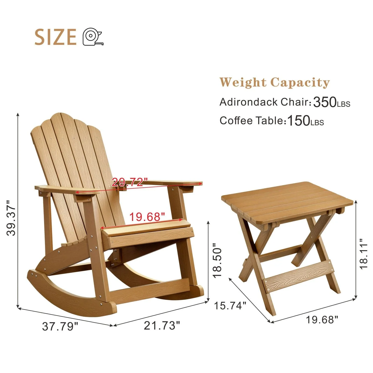 Ovios Patio Table and Chairs 3-Piece with Adirondack Chair and Folded Table