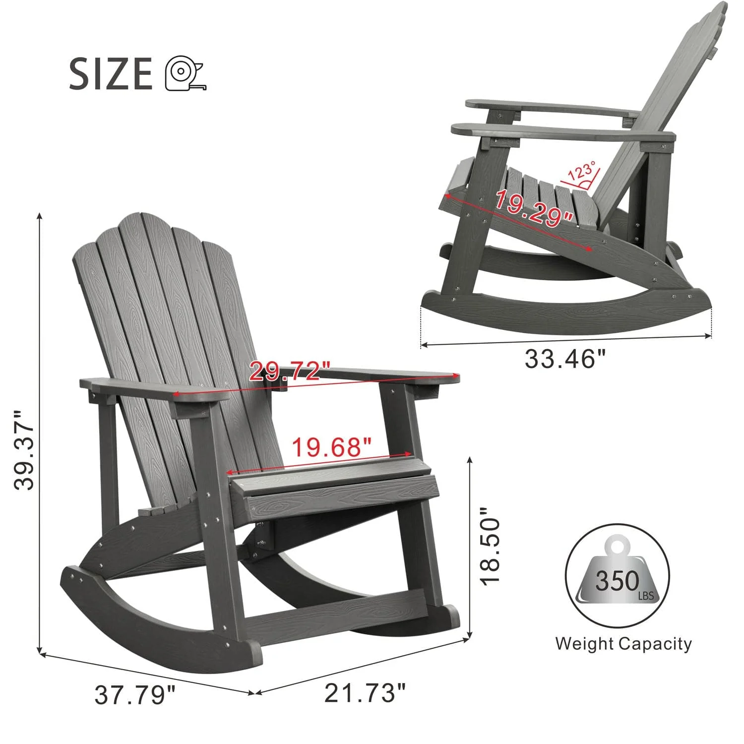 Ovios Rocking Adirondack Chair 2-Piece Waterproof Plastic Frame
