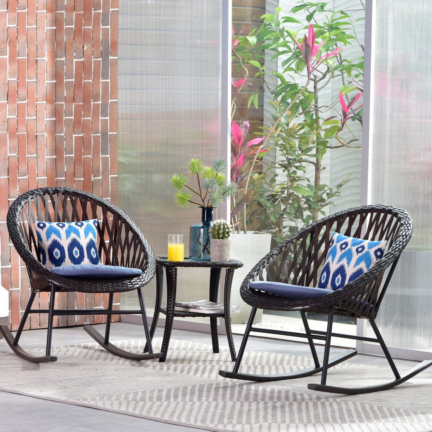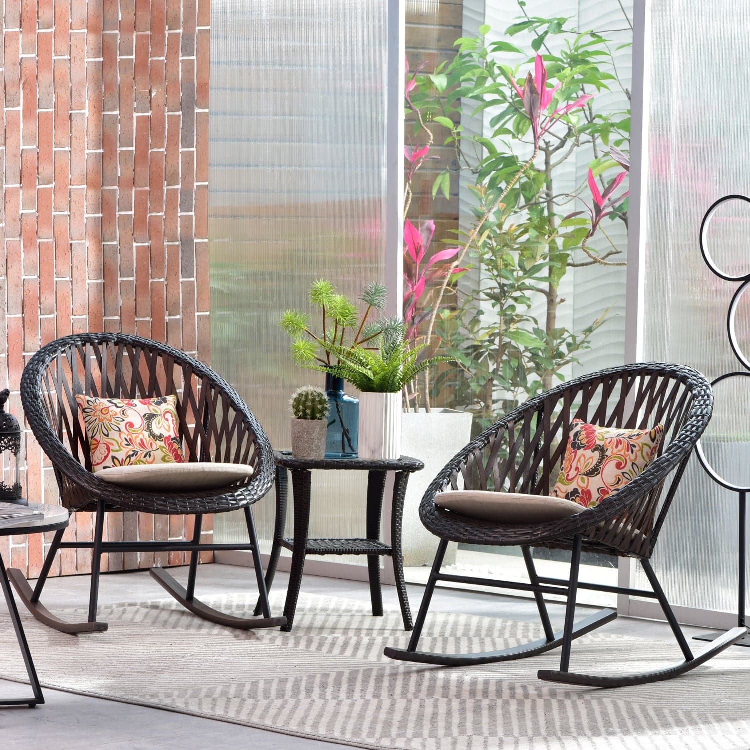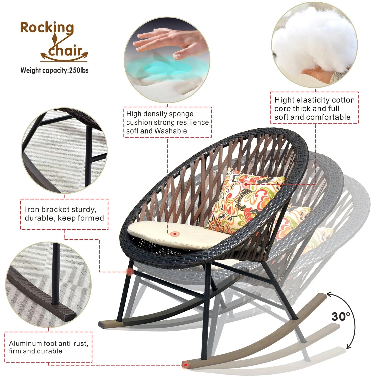 Ovios Rocking Chair Dark Grey Wicker Outdoor Table and Chairs matching Pet Sofa Series