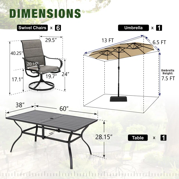 TBS Series - Sectional Patio Furniture Set 8-Piece, Included Swivel Chair