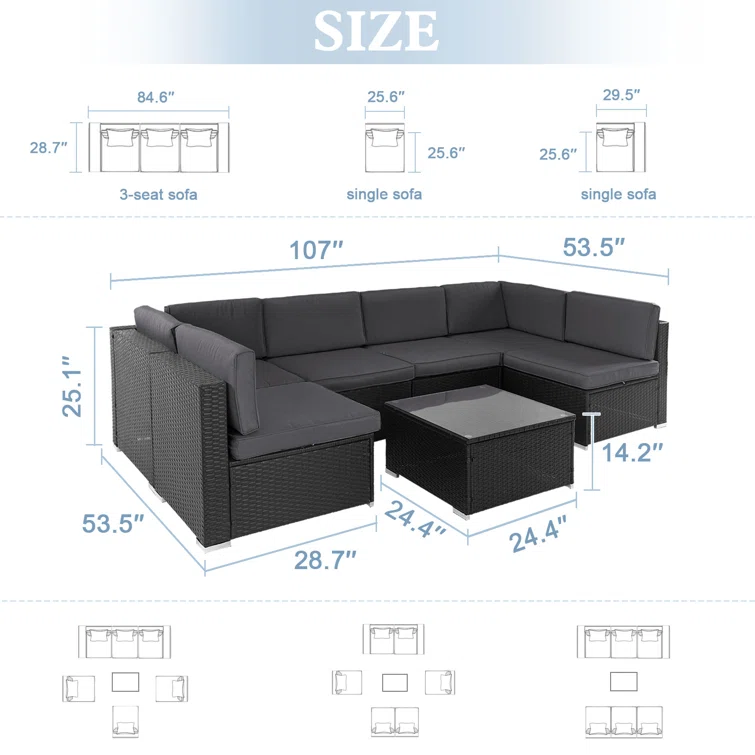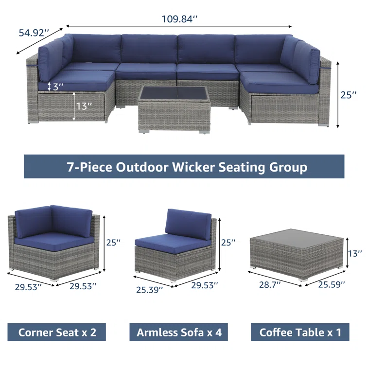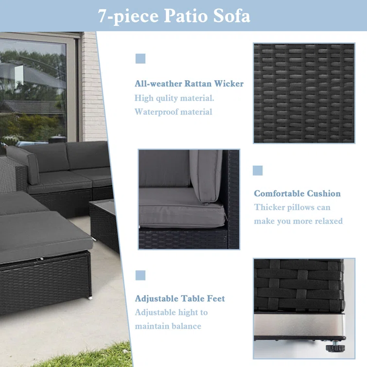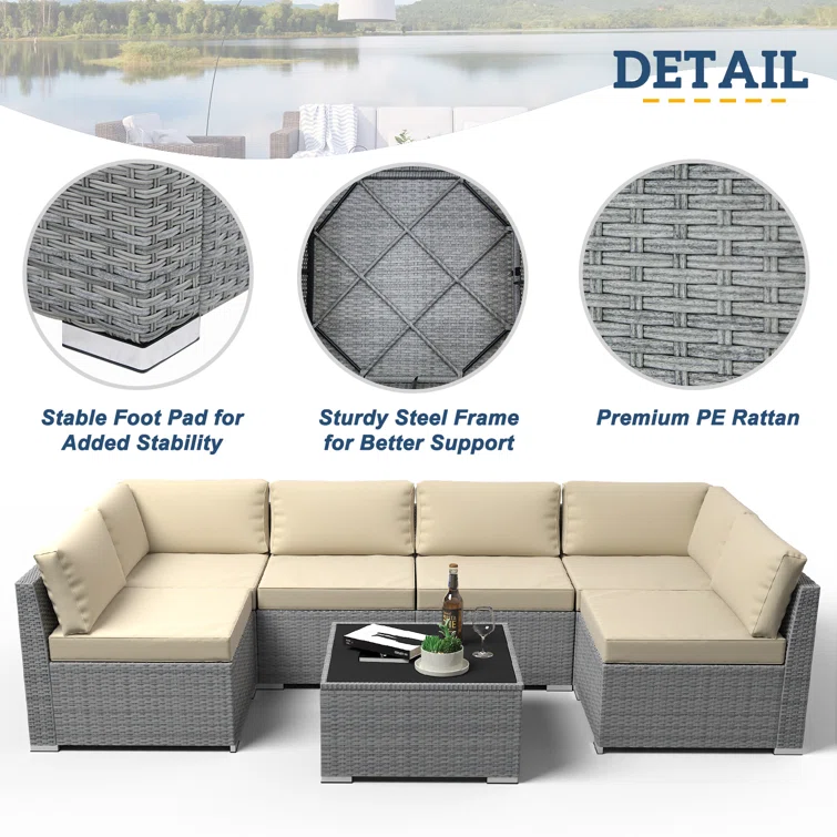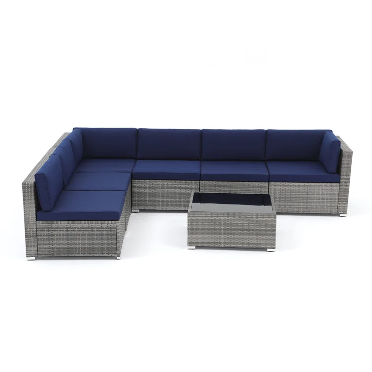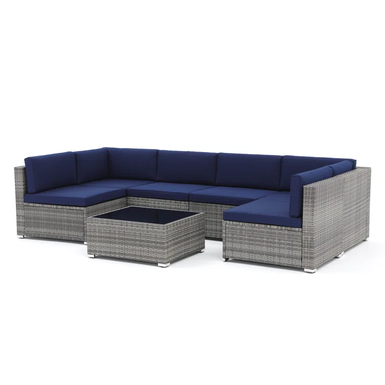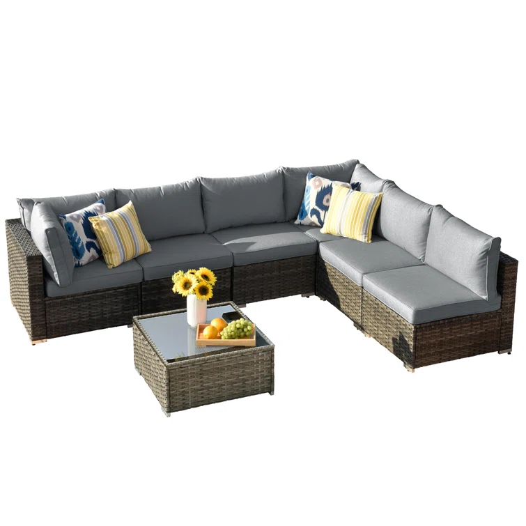 7 Piece Rattan Sectional Seating Group with Cushions