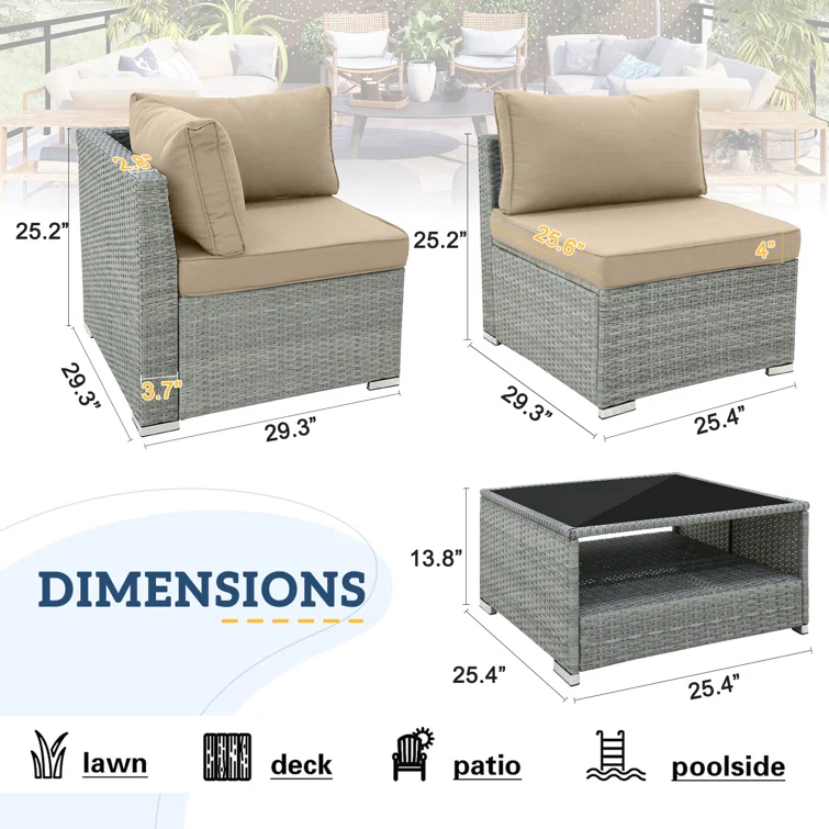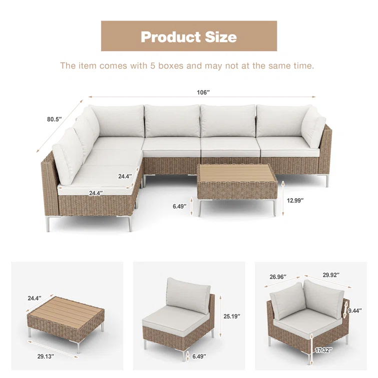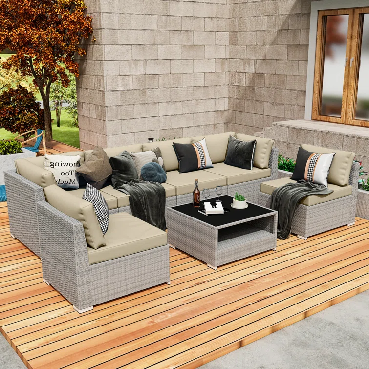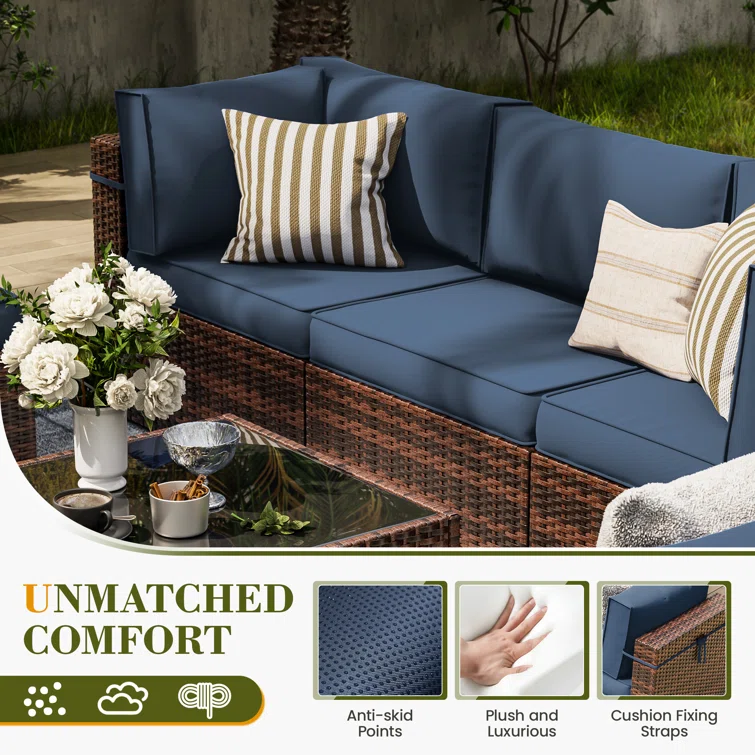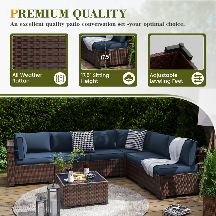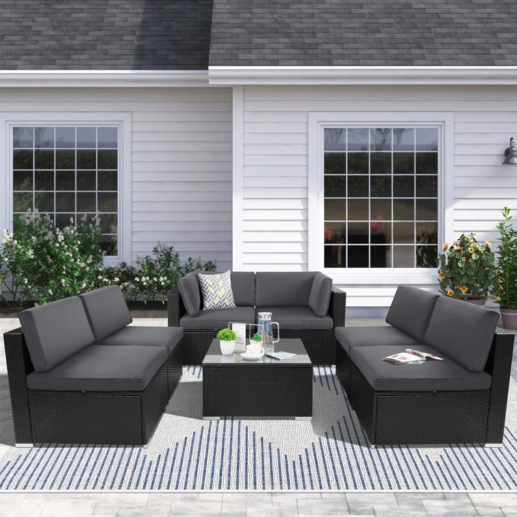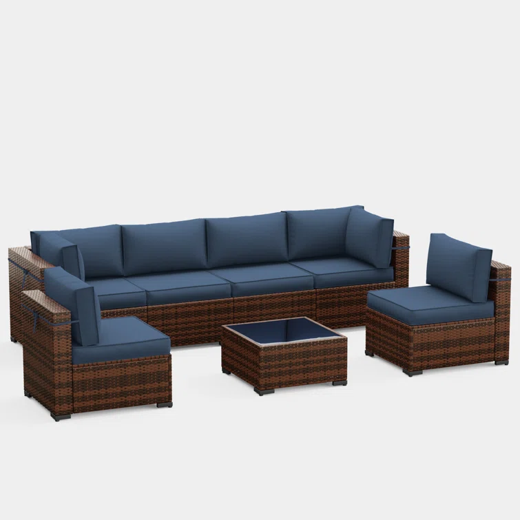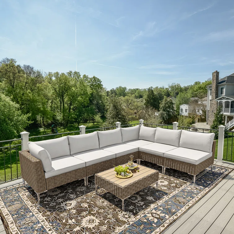 Vanwagenen 6-Person Rattan Seating Group With Cushion