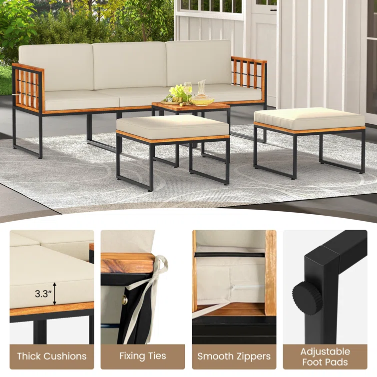 Adey 5 - Person Outdoor Seating Group with Cushions