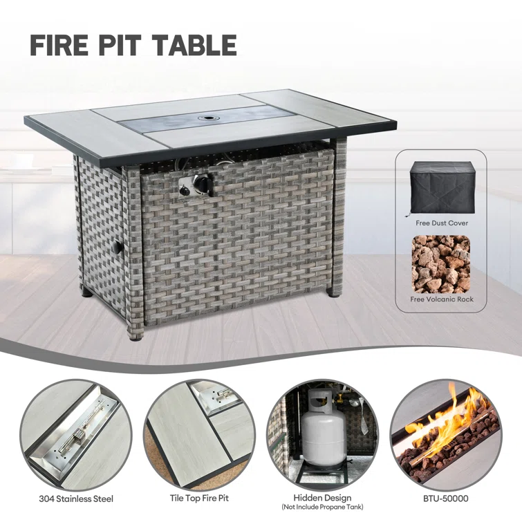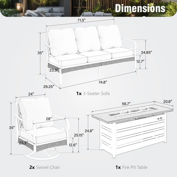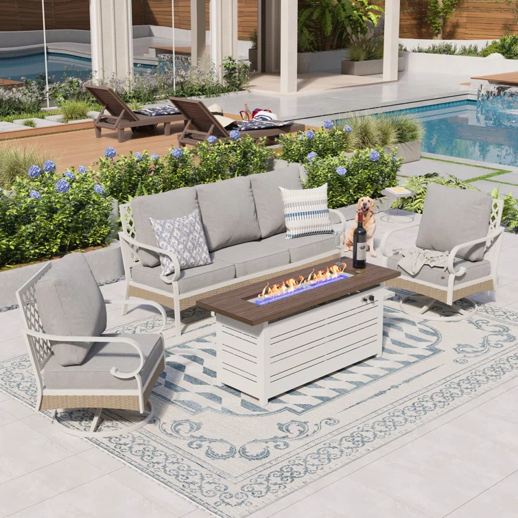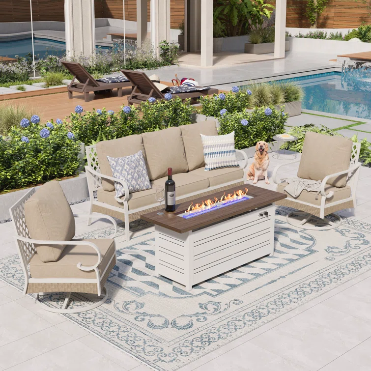Tapasi 5 Person Patio Set with Fire Pit Table & Swivel Lounge Chairs