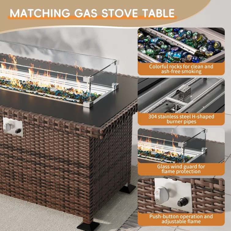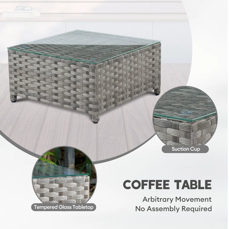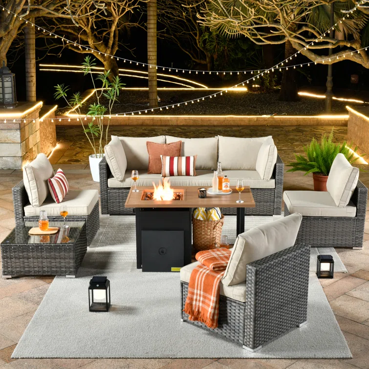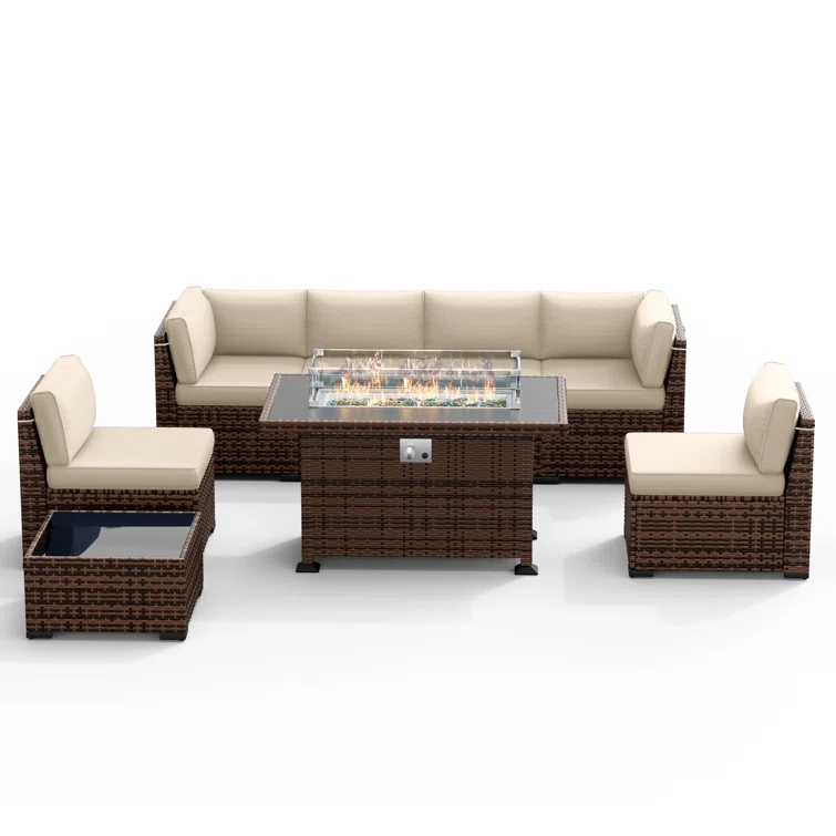 Quadrell 6 - Person Outdoor Wicker Patio Conversation Furniture Set with Optional Fire Pit Table