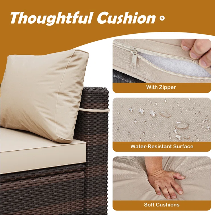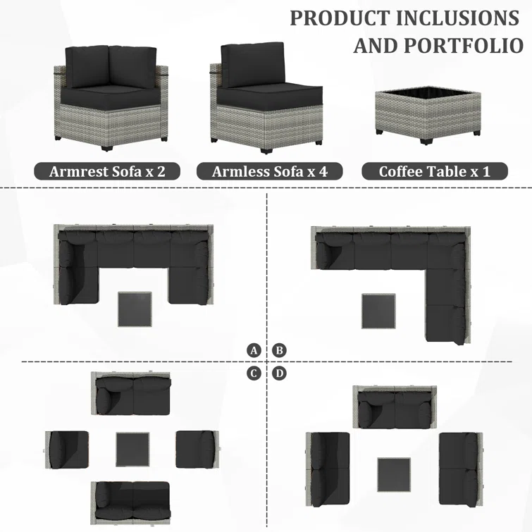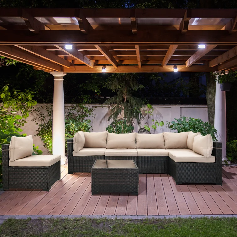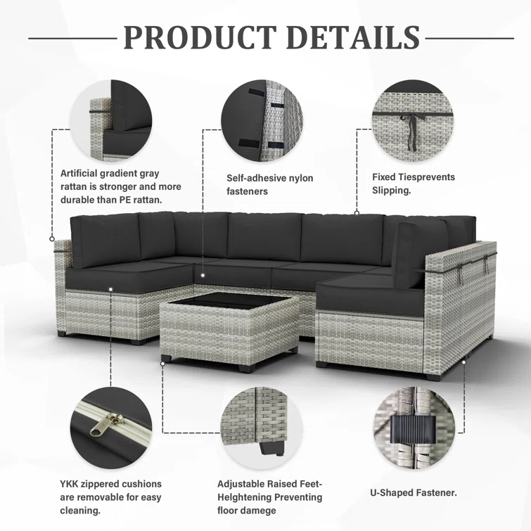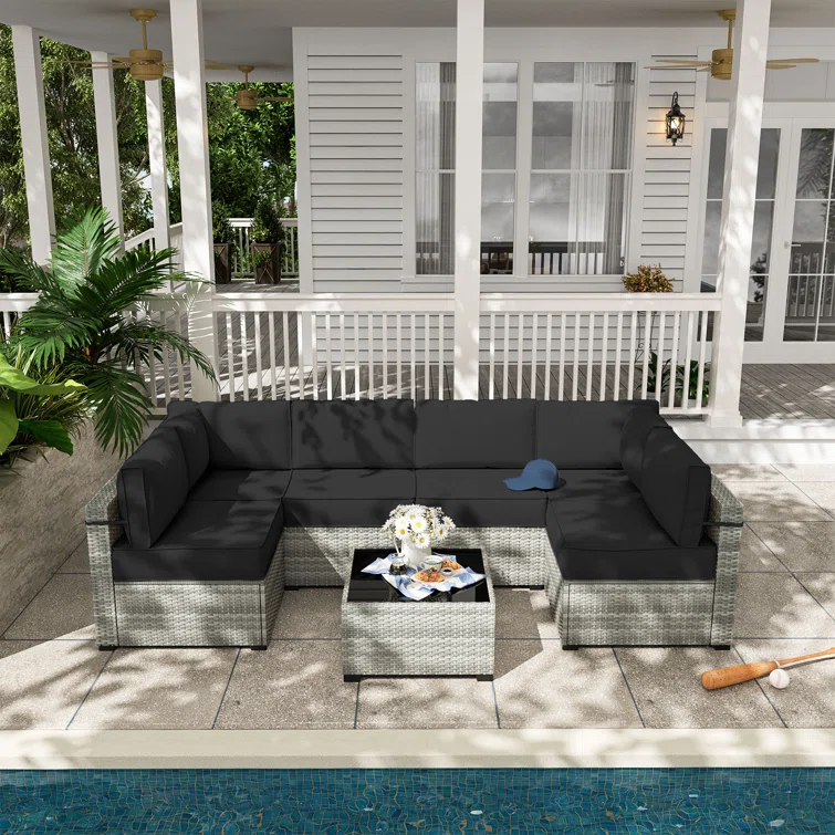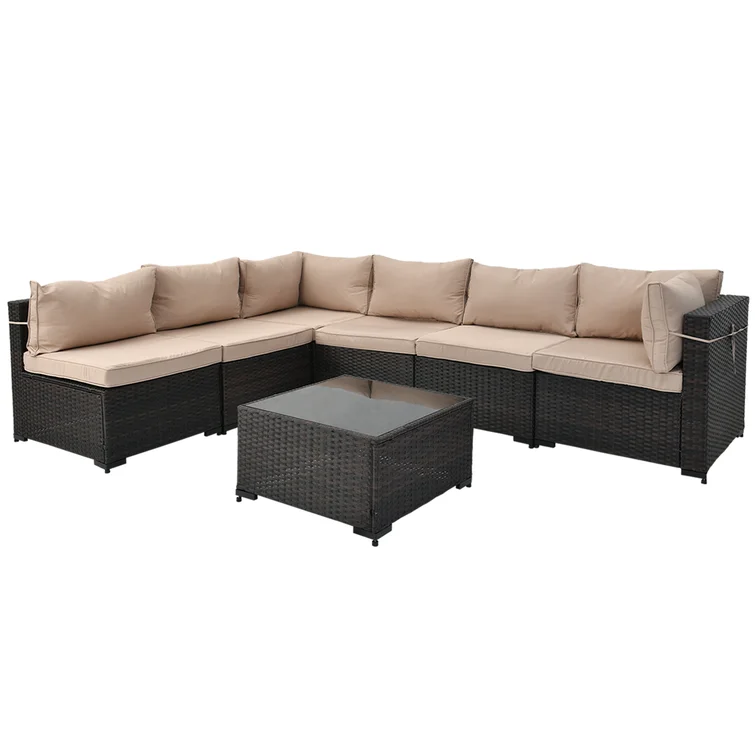 7 Piece Rattan Sectional Seating Group With 5-inch Thicker Cushions