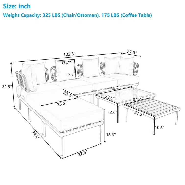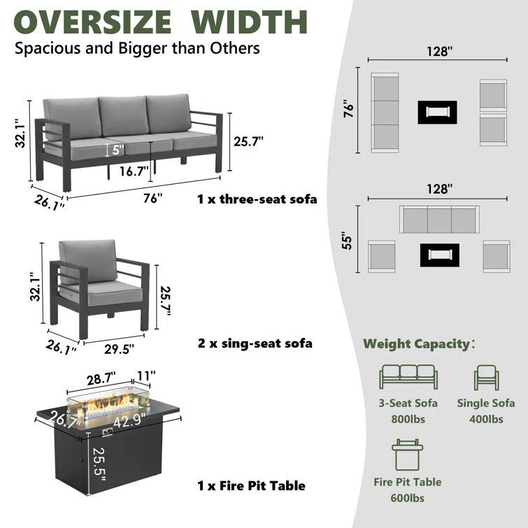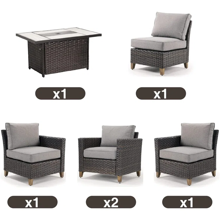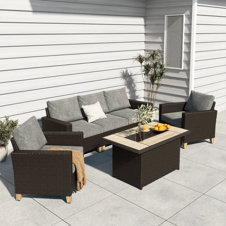 5-Person Sofa Seating Group With Fire Pit Table