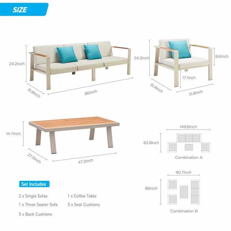 Melrose 5 Piece Sofa Seating Group with Cushions