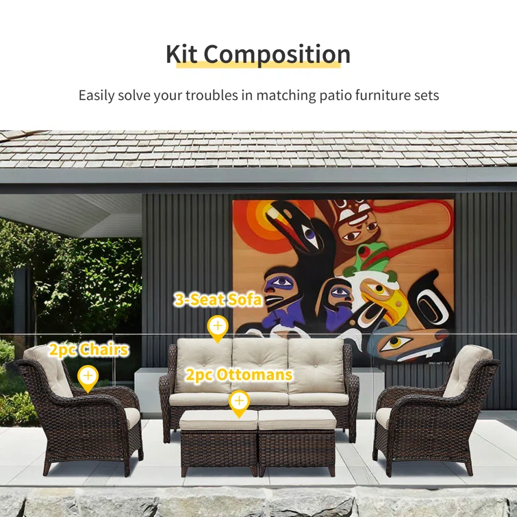 Nofi 5 - Person Outdoor Seating Group with Cushions