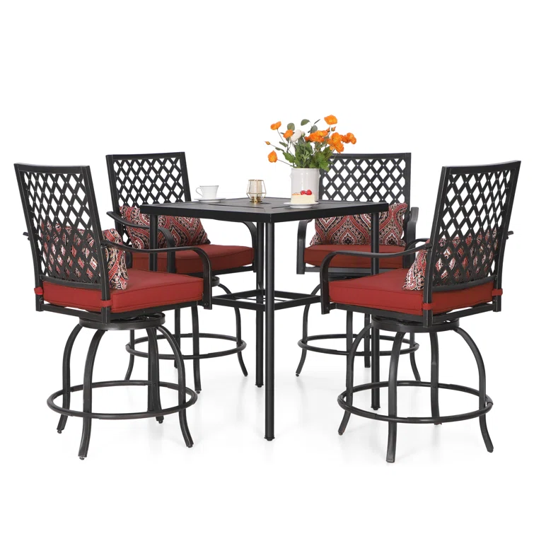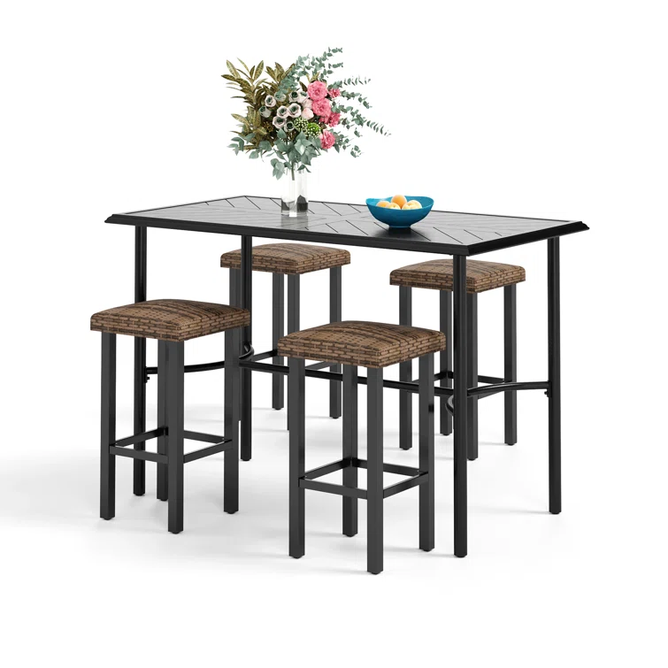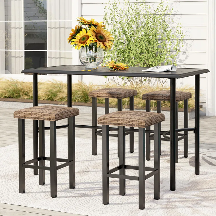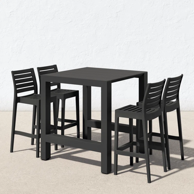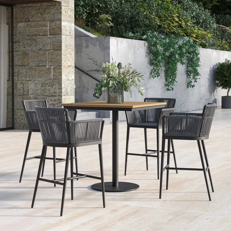 Square 4 - Person 32.7'' L Outdoor Standing Height Table Set with 29"W Stools