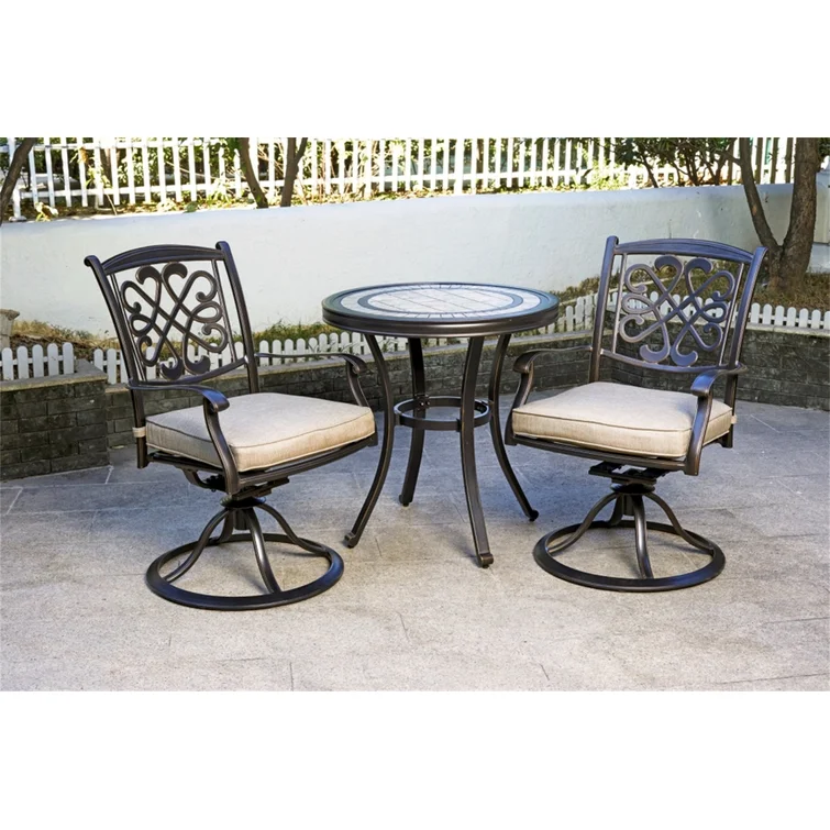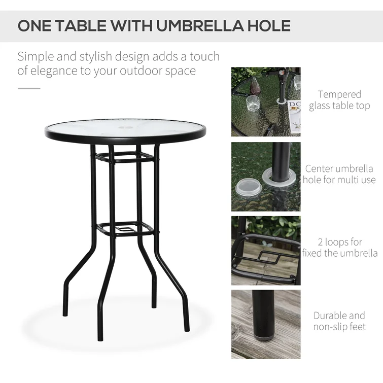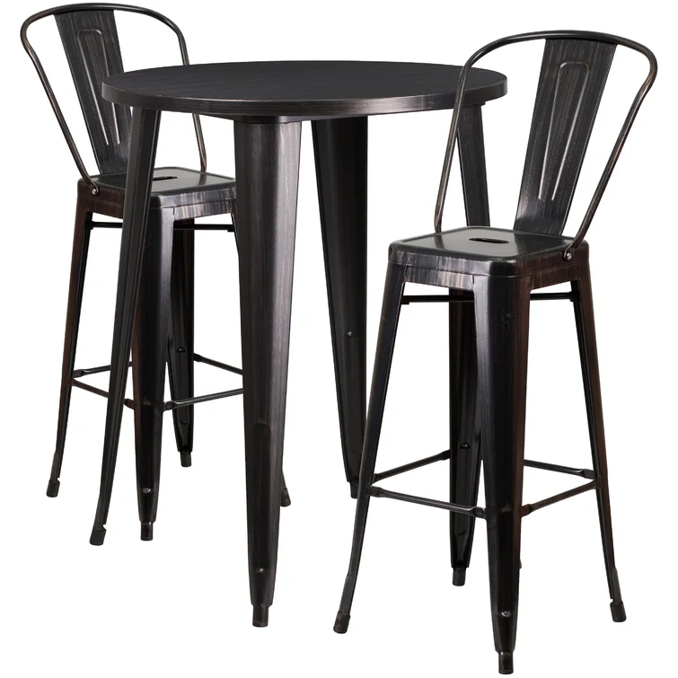 Genece 30'' Round Metal Indoor-Outdoor Bar Table Set with 2 Cafe Stools