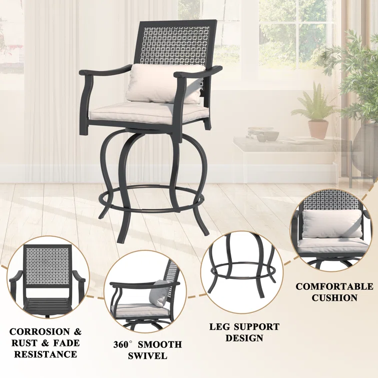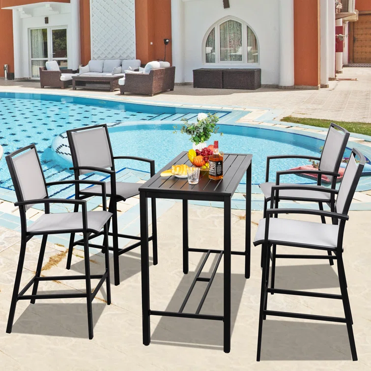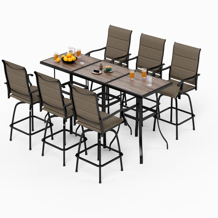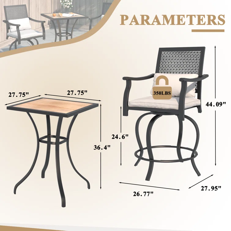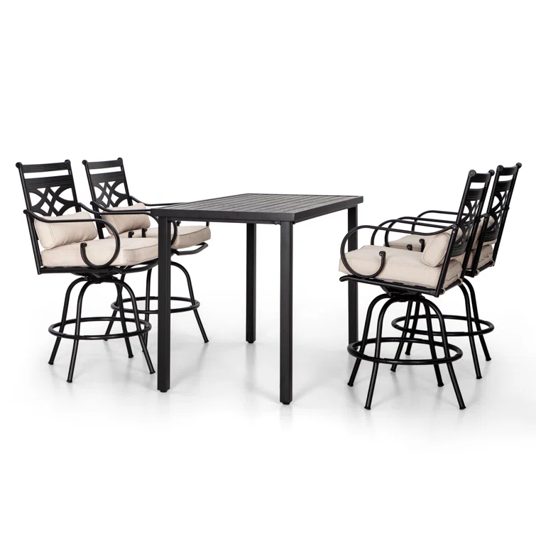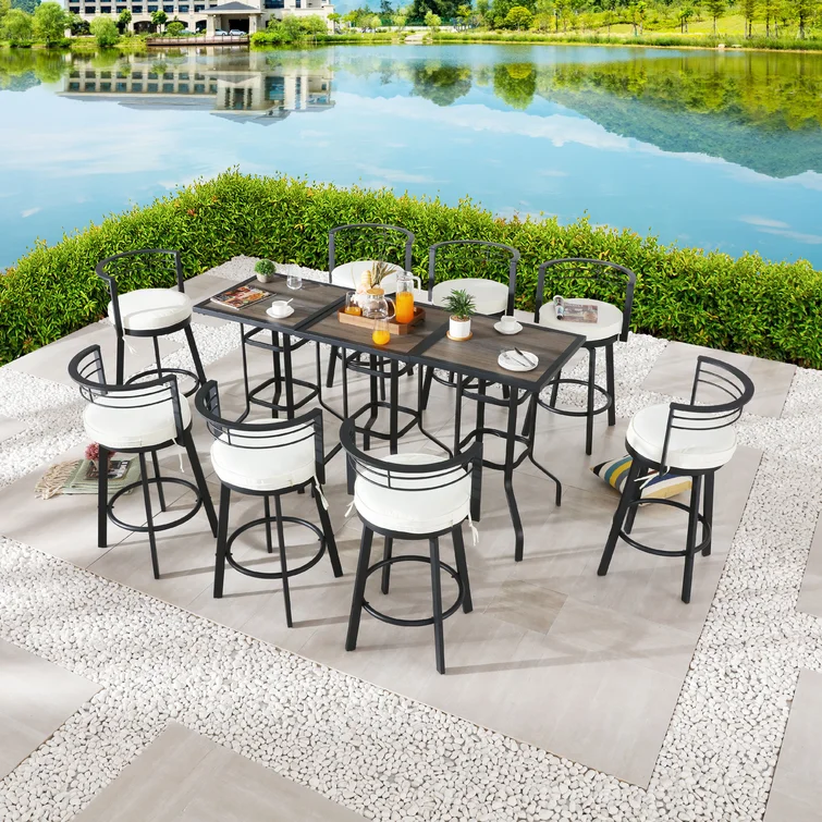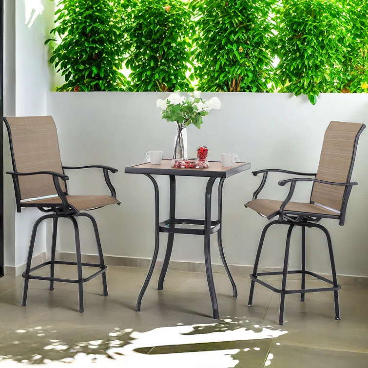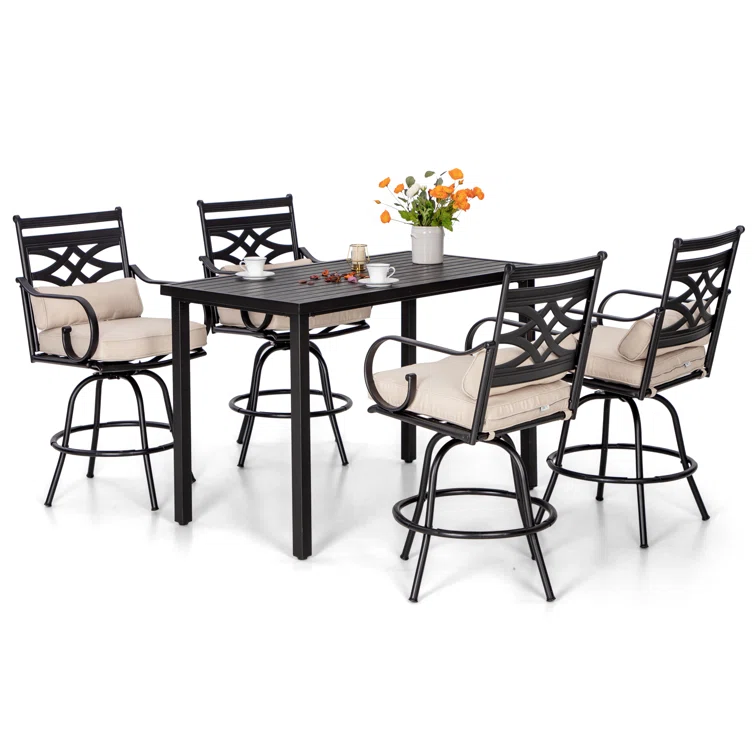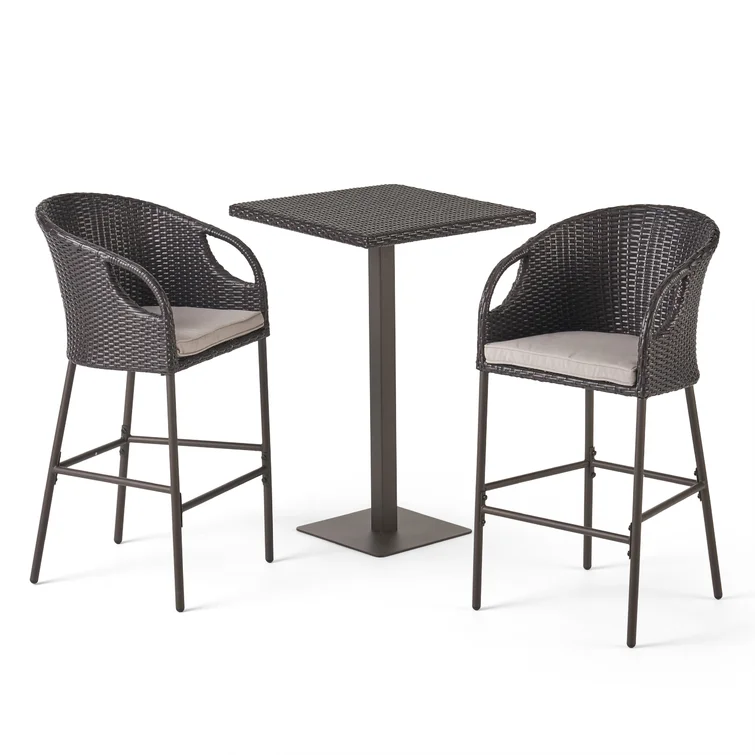 Patio Bar Set Bar Table and Stools Patio Furniture Set with Cushions