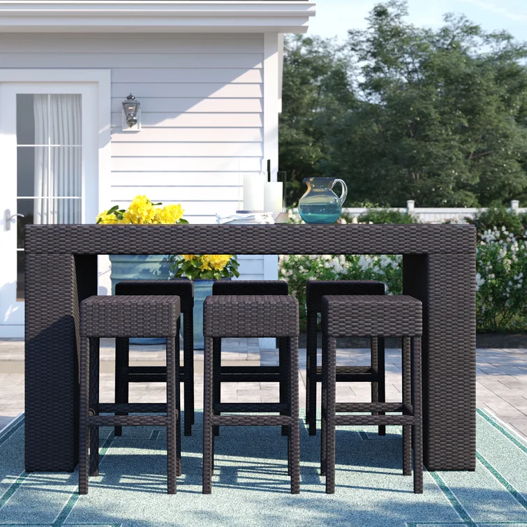 Patio Bar Set 7 Piece Outdoor Bar Table and Chairs Poly Rattan Brown
