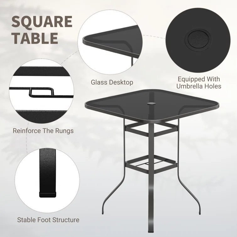 Bhairavi Square 2 - Person Patio Long Bar Height Dining Set