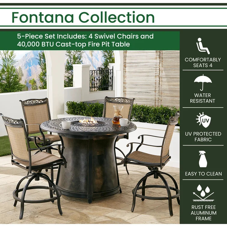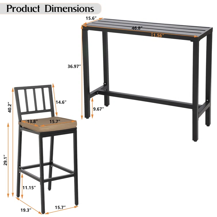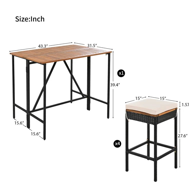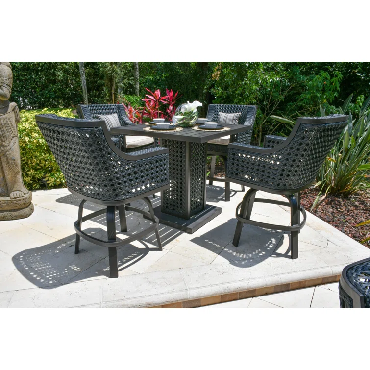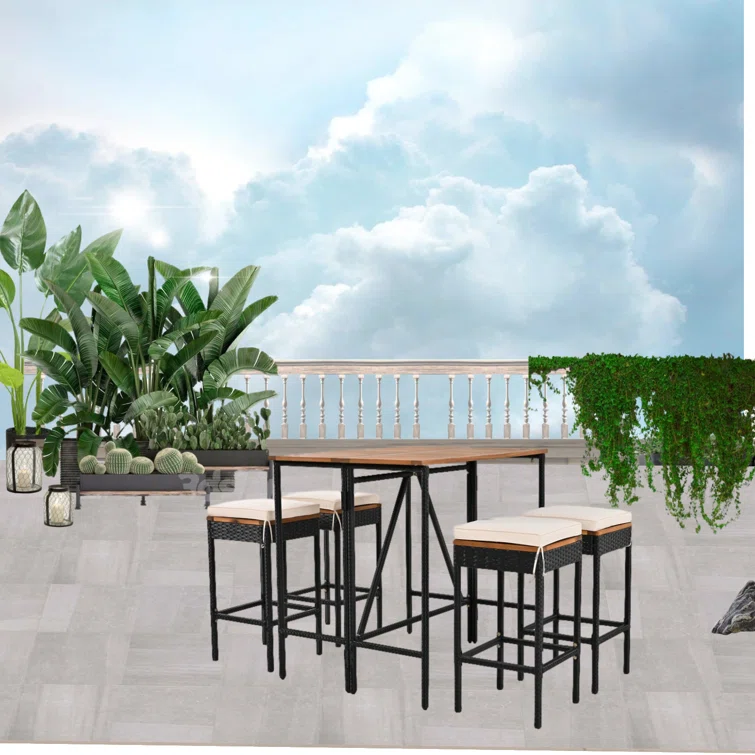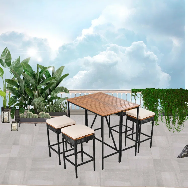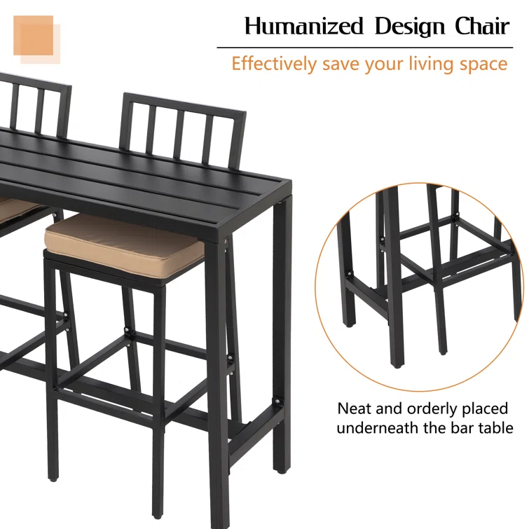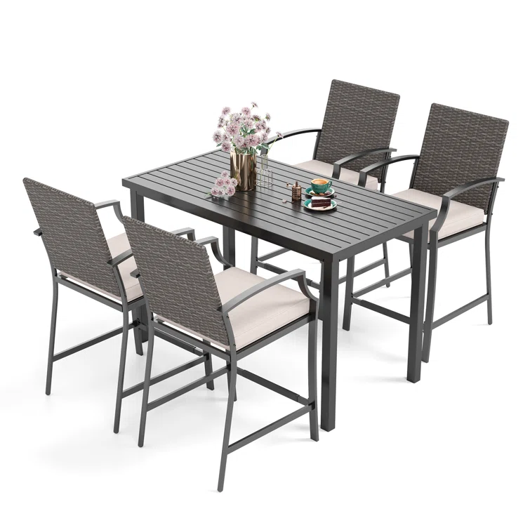 Outdoor Dining Set - 4-Person Bistro Set - Outdoor Bar Table with All-Weather Patio Stools