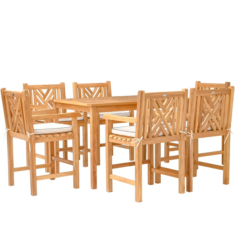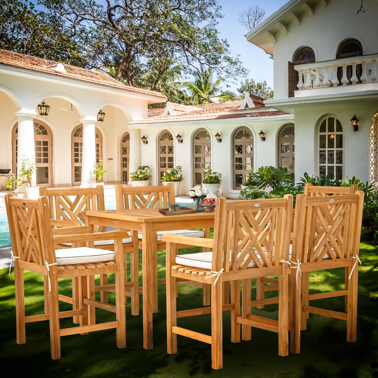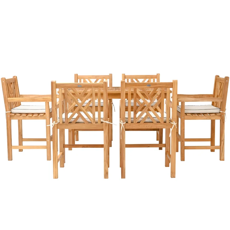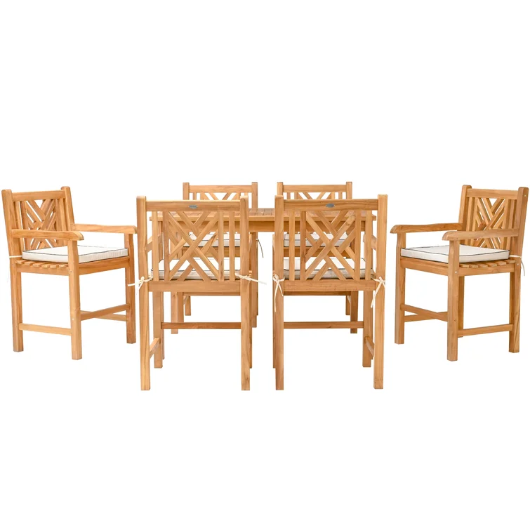 6 - Person Rectangular Teak Outdoor Dining Set with Cushions