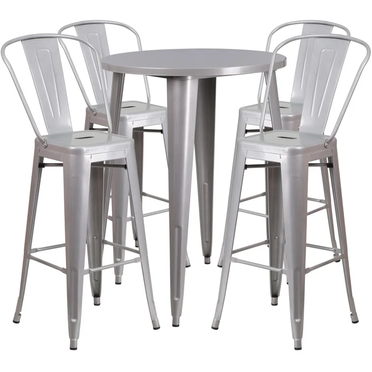 Williamston 30'' Round Metal Indoor-Outdoor Bar Table Set with 4 Cafe Stools