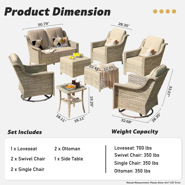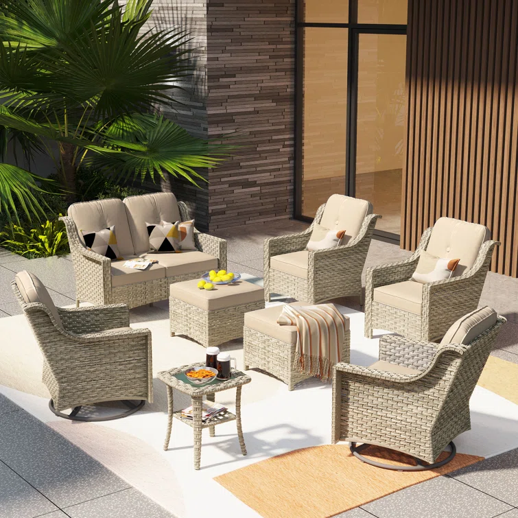 Asfand 5-7 - Person Patio Conversation Set with Swivel Lounge Chairs & Optional Ottoman