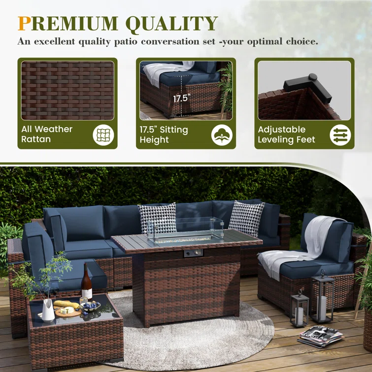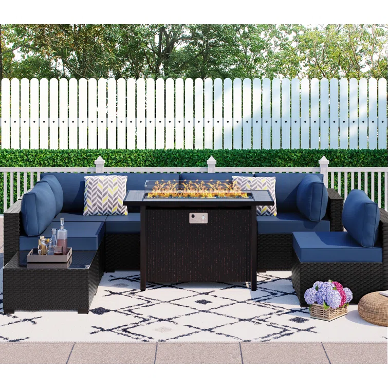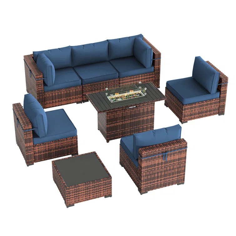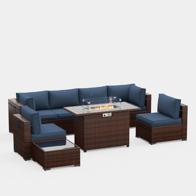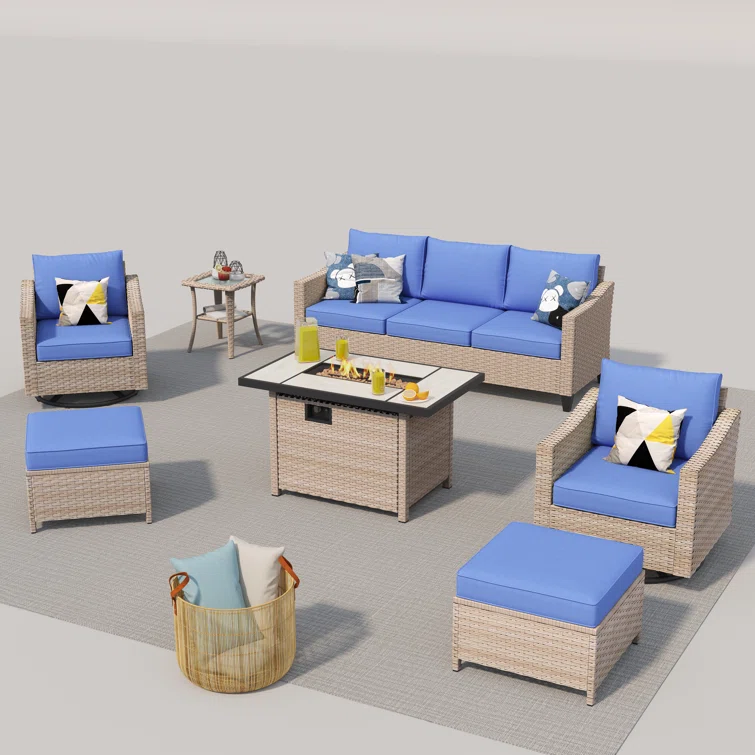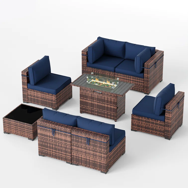 Romanas 8 Piece Patio Conversation Sets With Fire Pit Table