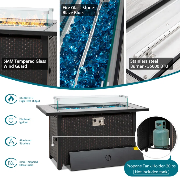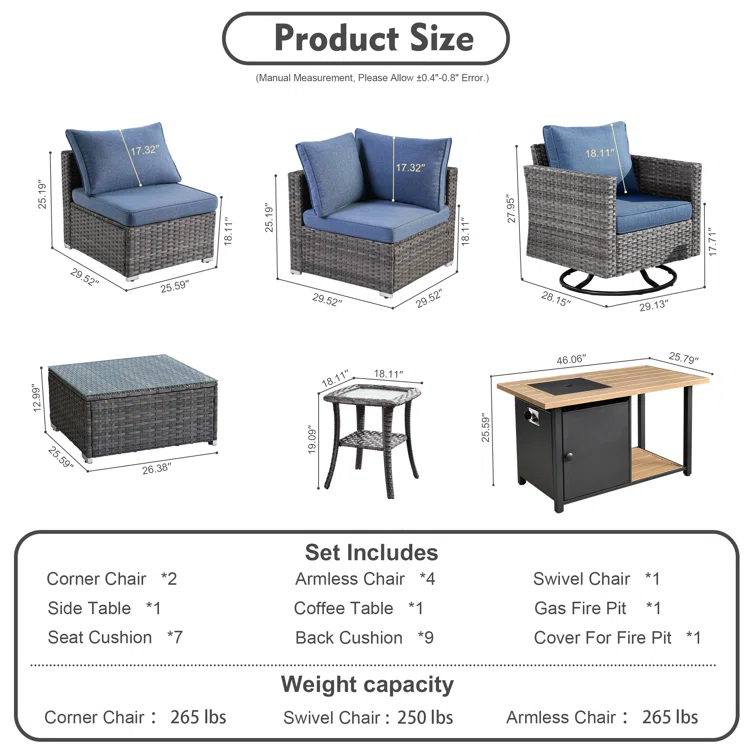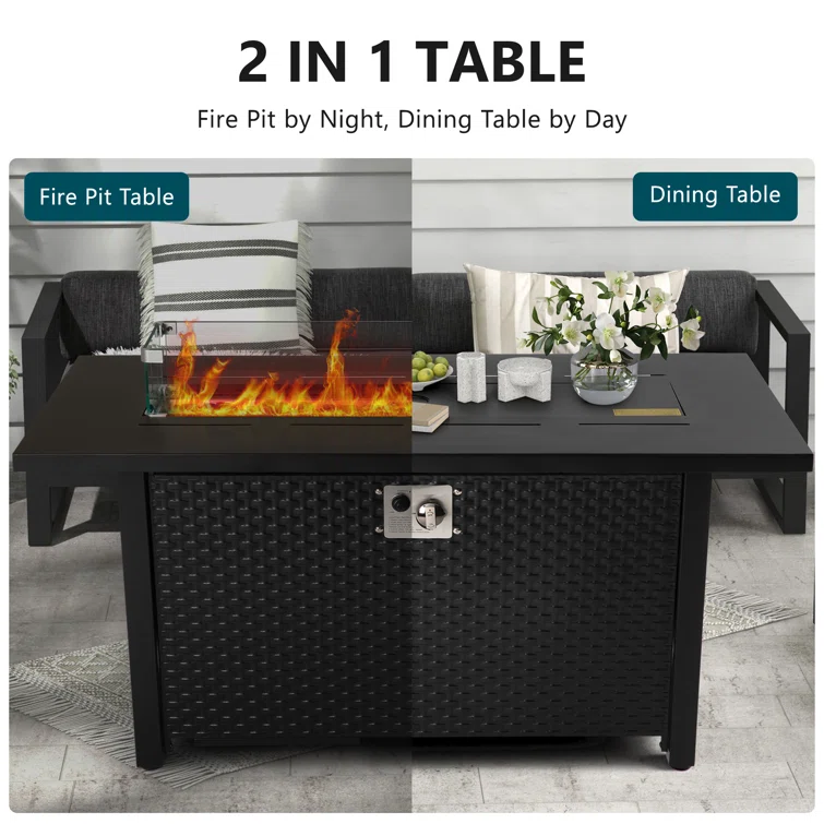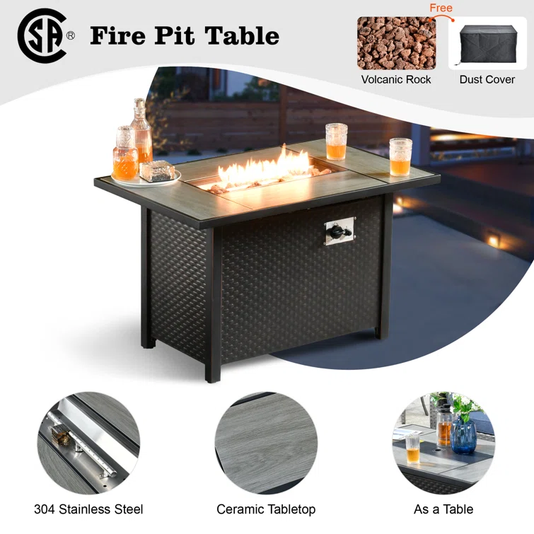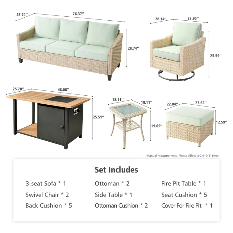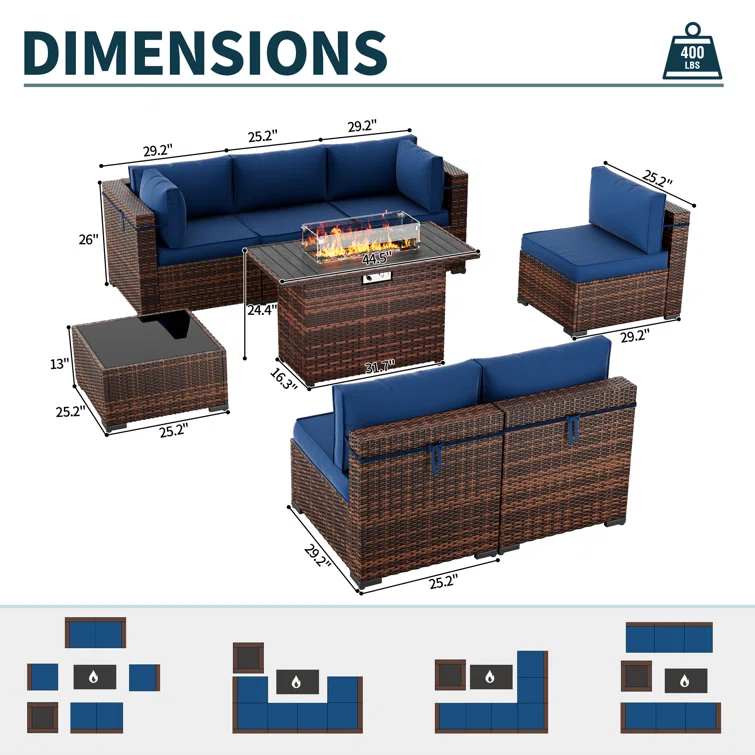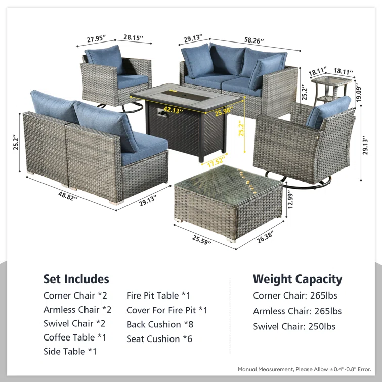 Romanas 8 Piece Patio Conversation Sets With Fire Pit Table