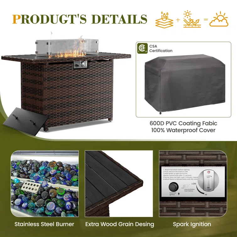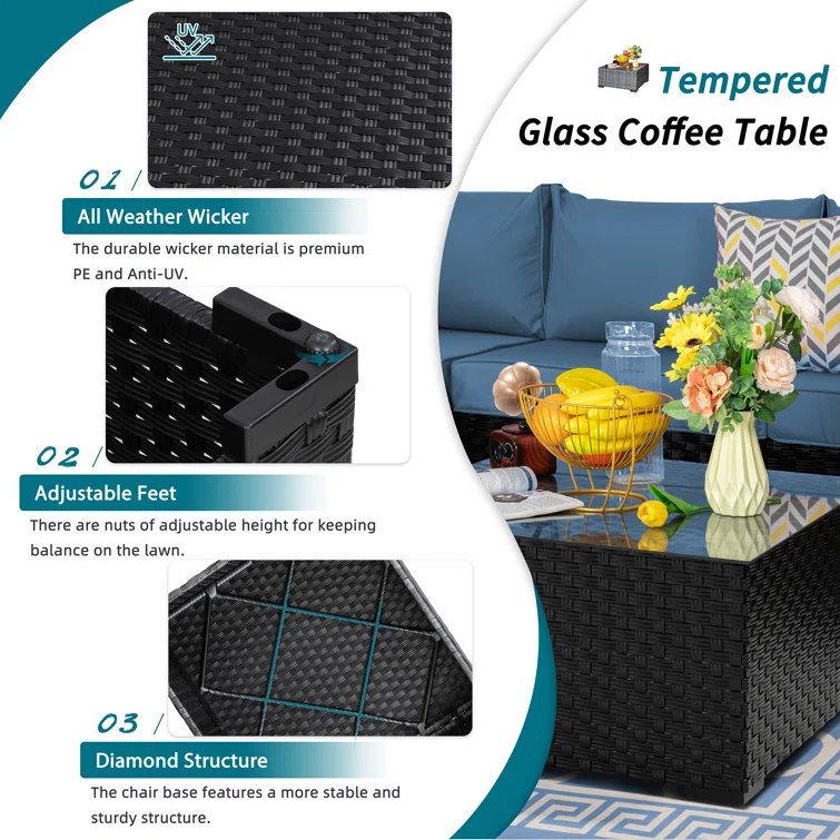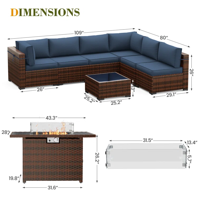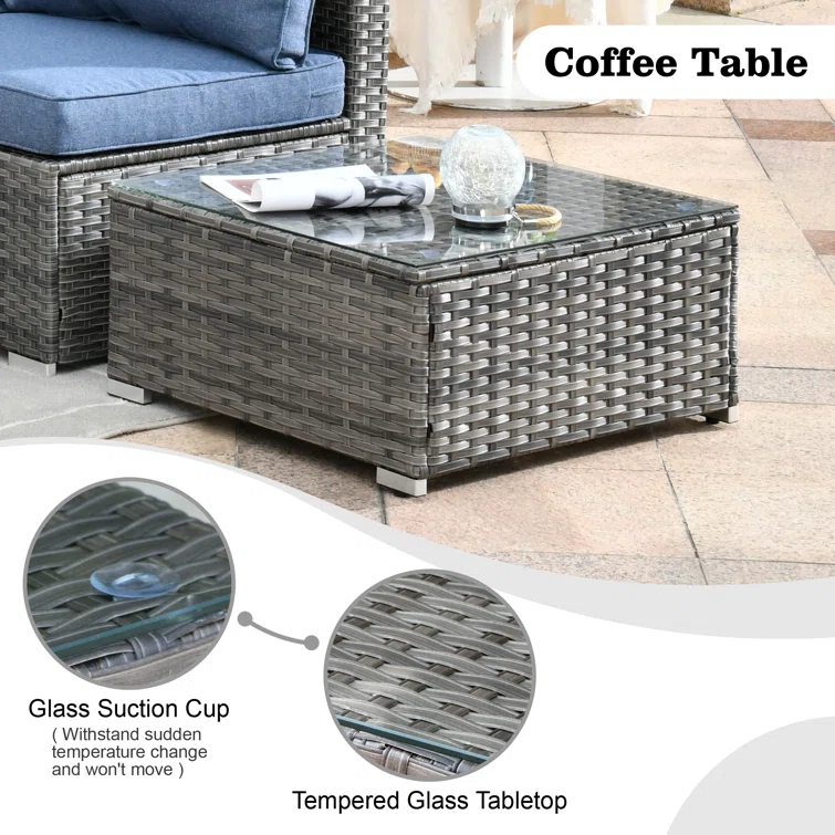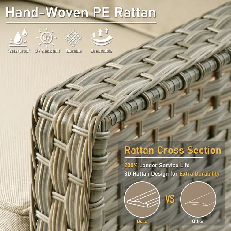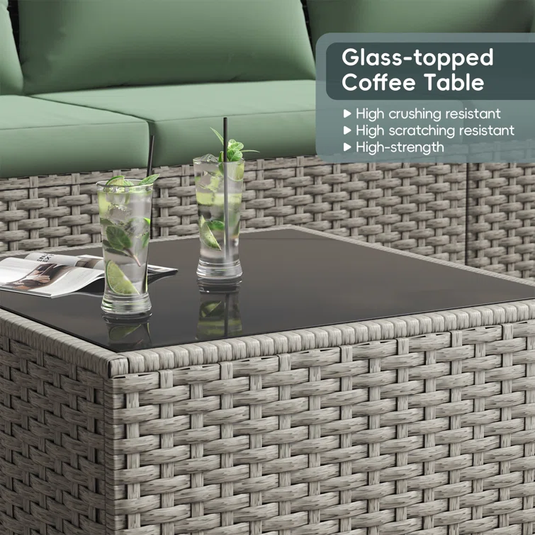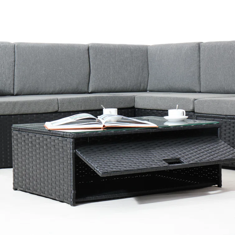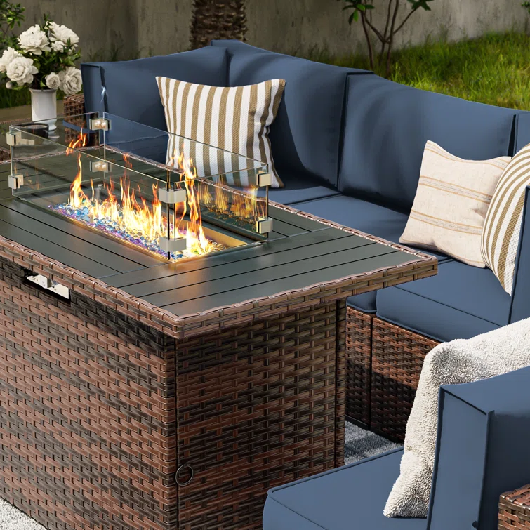 Quadrell 6 - Person Outdoor Wicker Patio Conversation Furniture Set with Optional Fire Pit Table