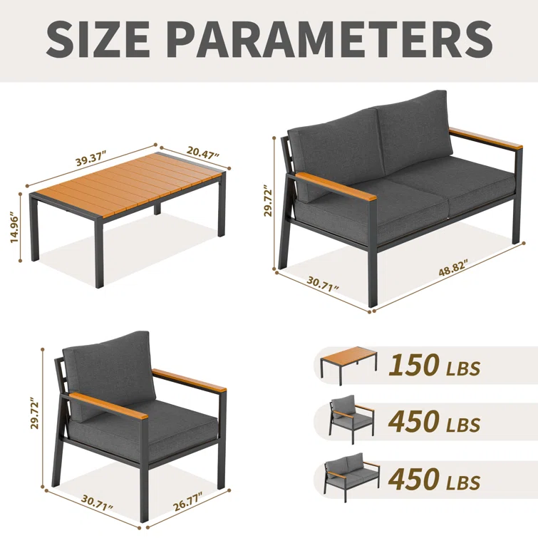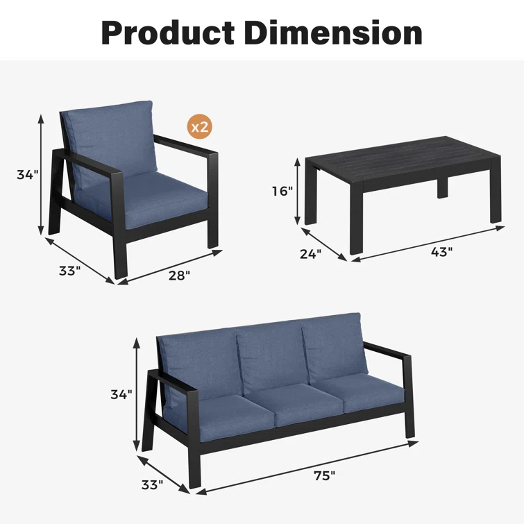 Aluminum 4-Piece Outdoor Sofa Seating Group With Cushions