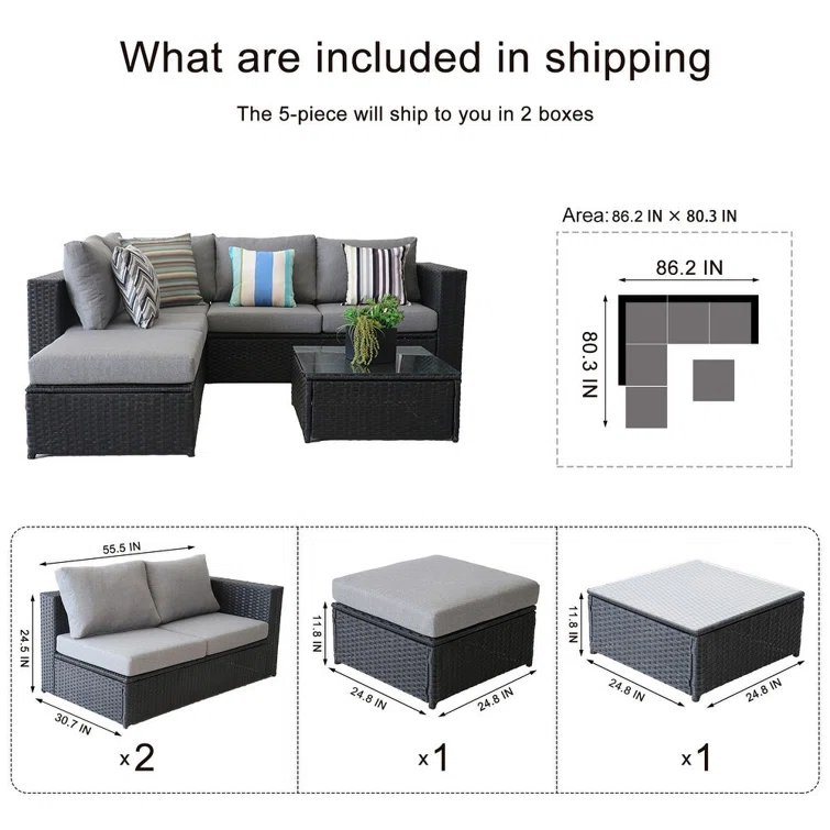 Witar 5 - Person Outdoor Seating Group with Cushions