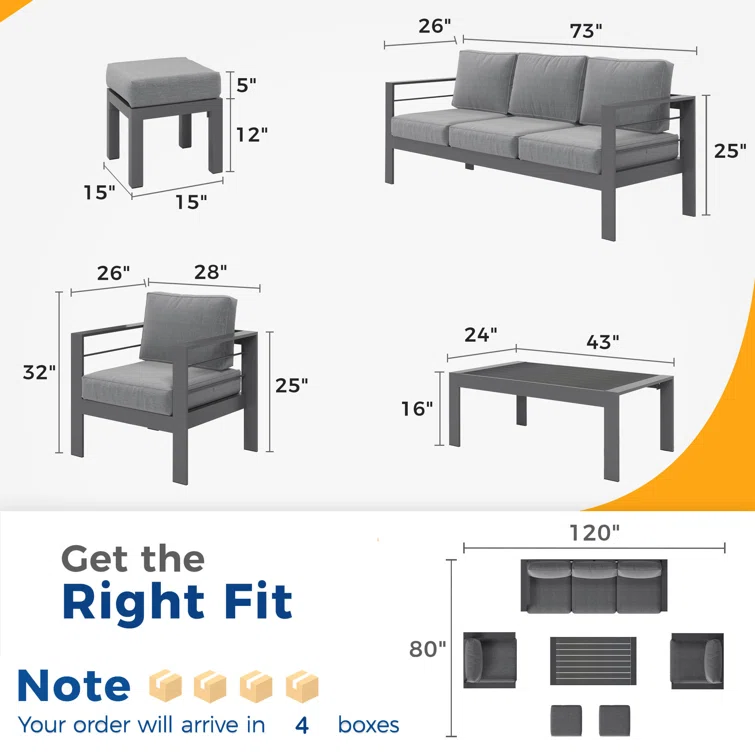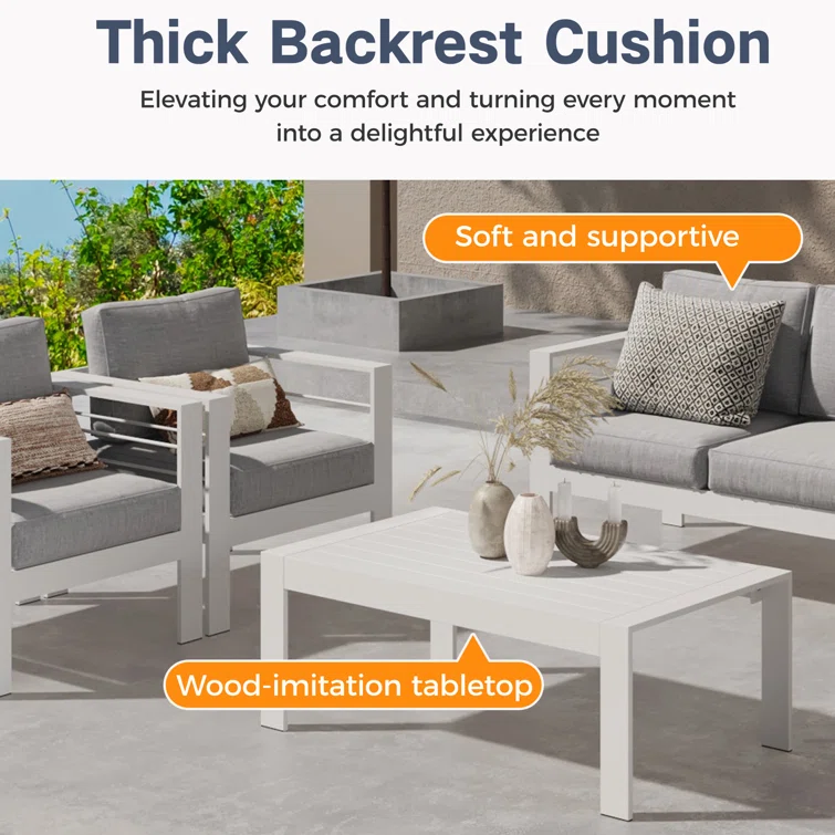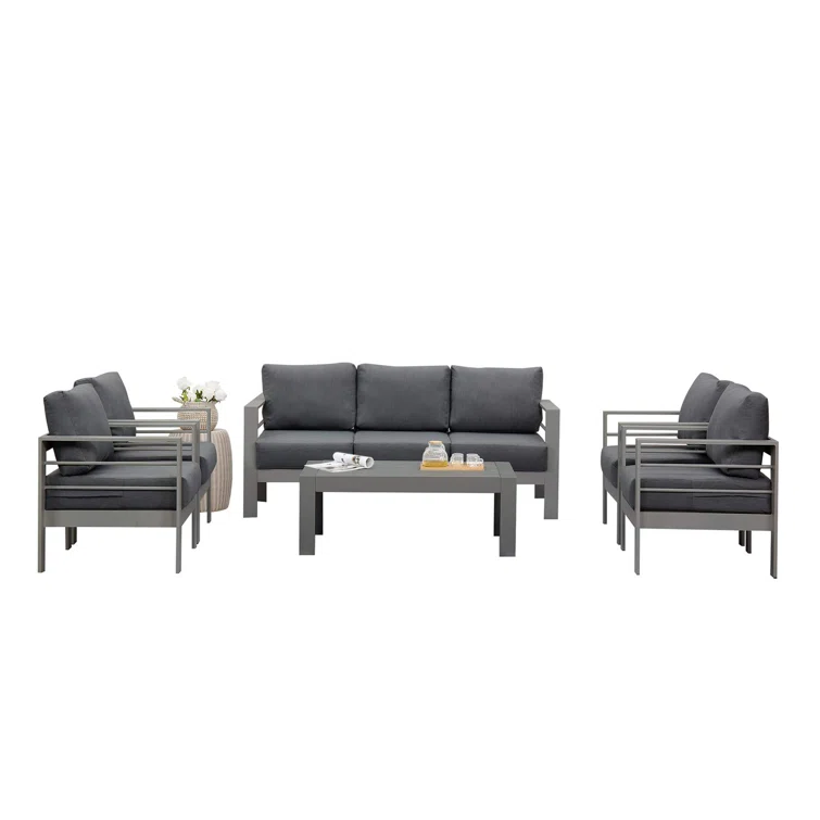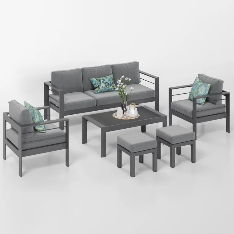 6-Piece Aluminum Patio Conversation Set With Cushions
