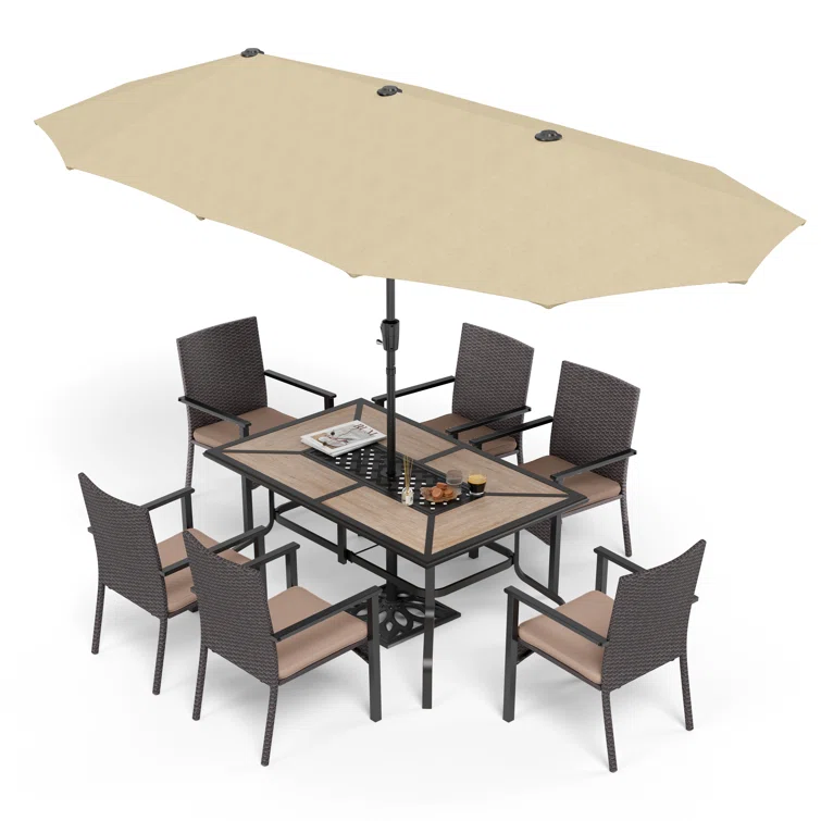 Alyah 6 - Person Rectangular Outdoor Dining Set with Cushions