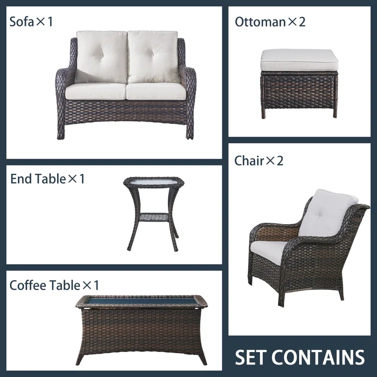 7 - Person Outdoor Seating Group with Cushions