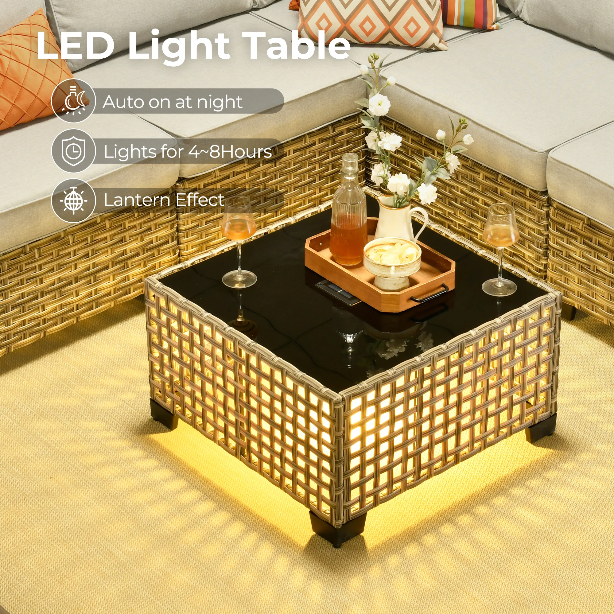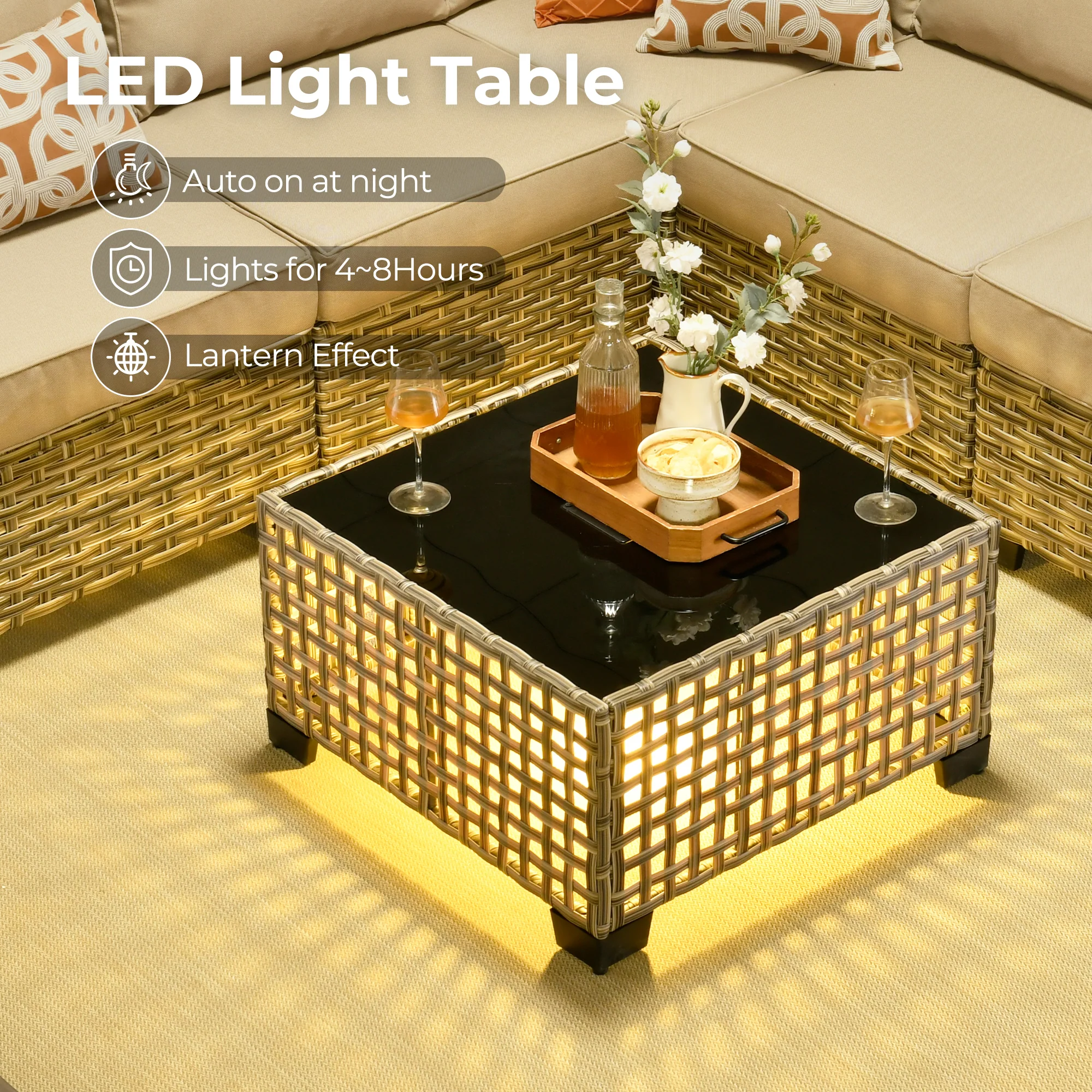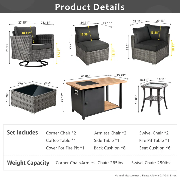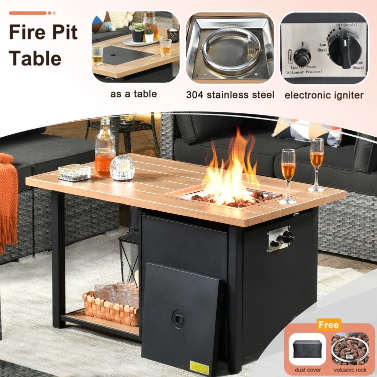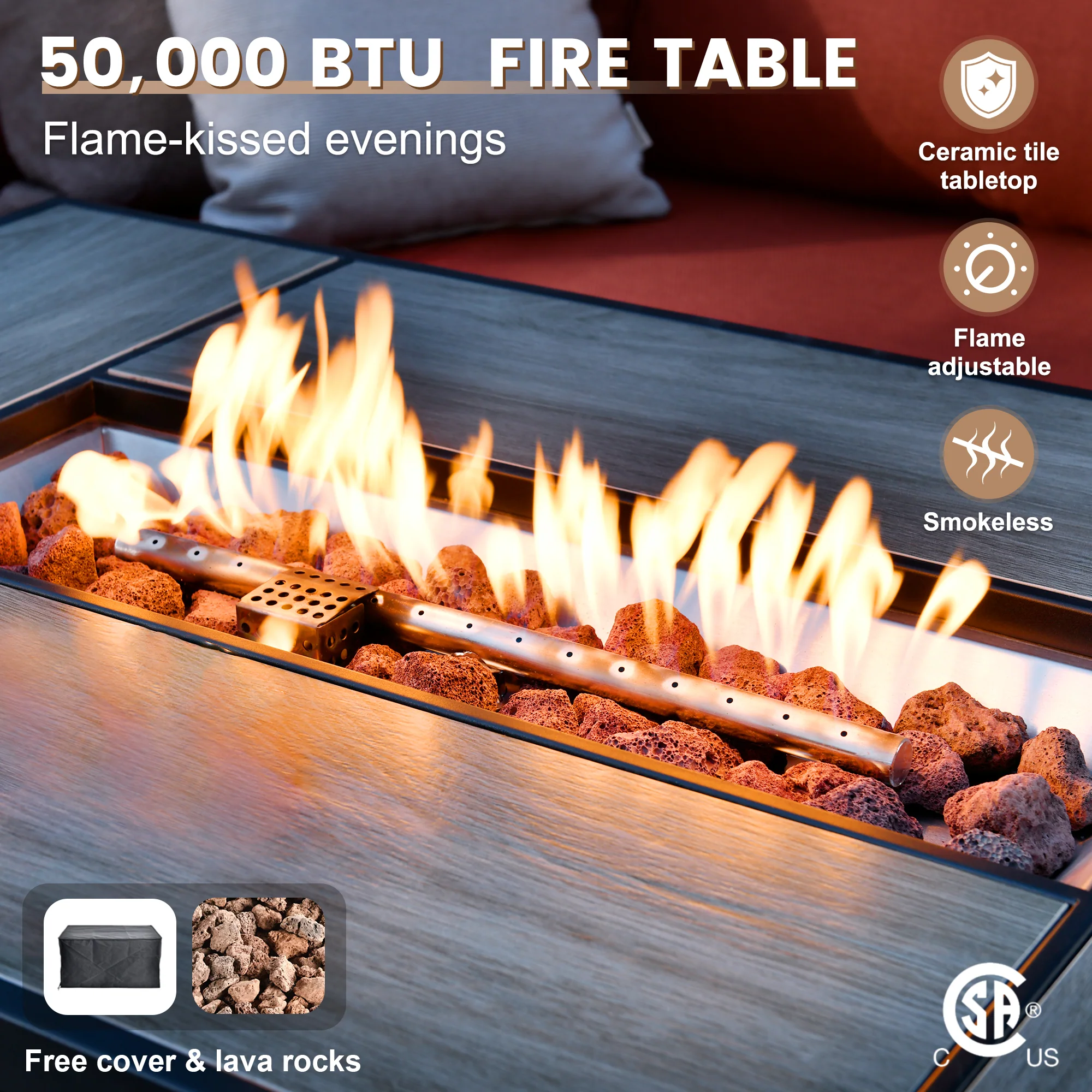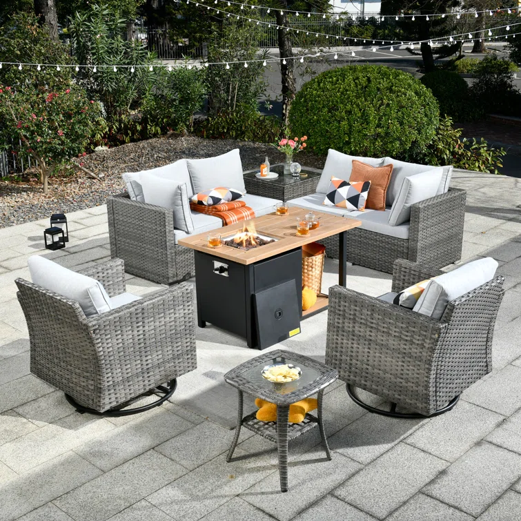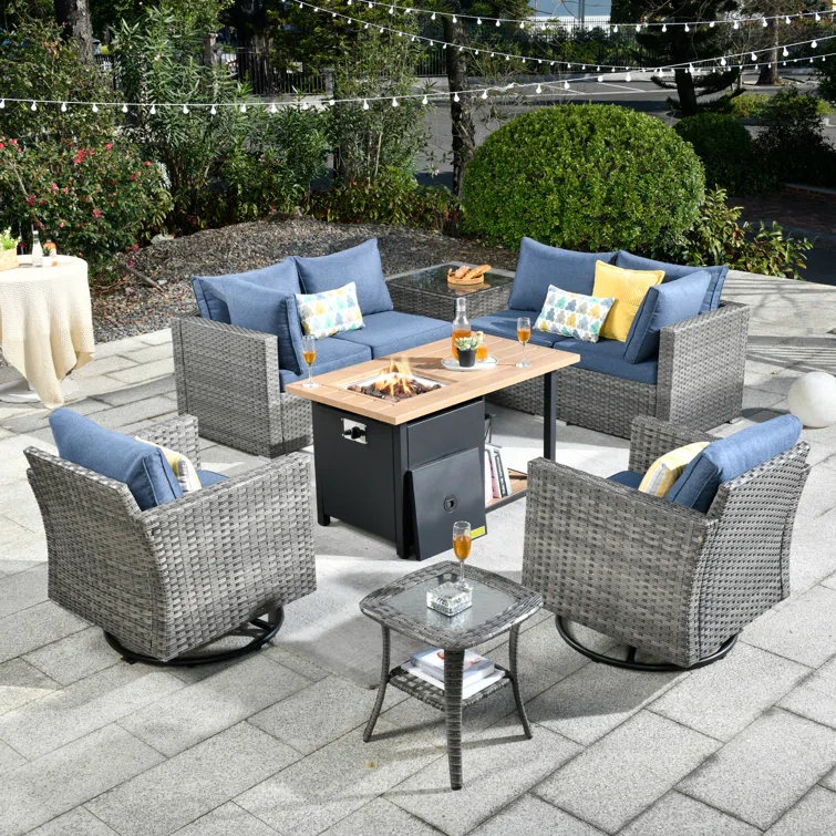 TBS Series - Sectional Patio Furniture Set 7-Piece include Fire Pit Table