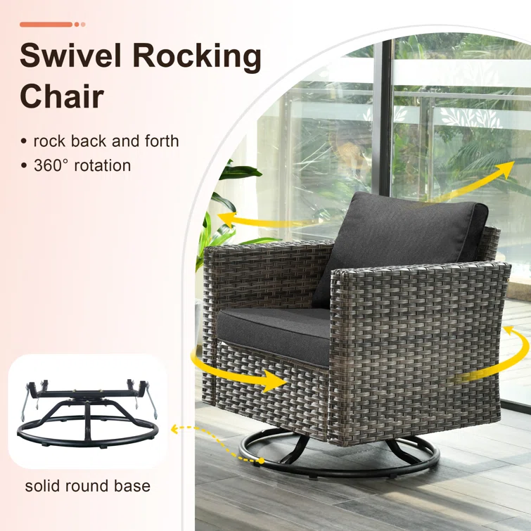 Ovios VNC Series Patio Swivel Chair 3-Piece Set
