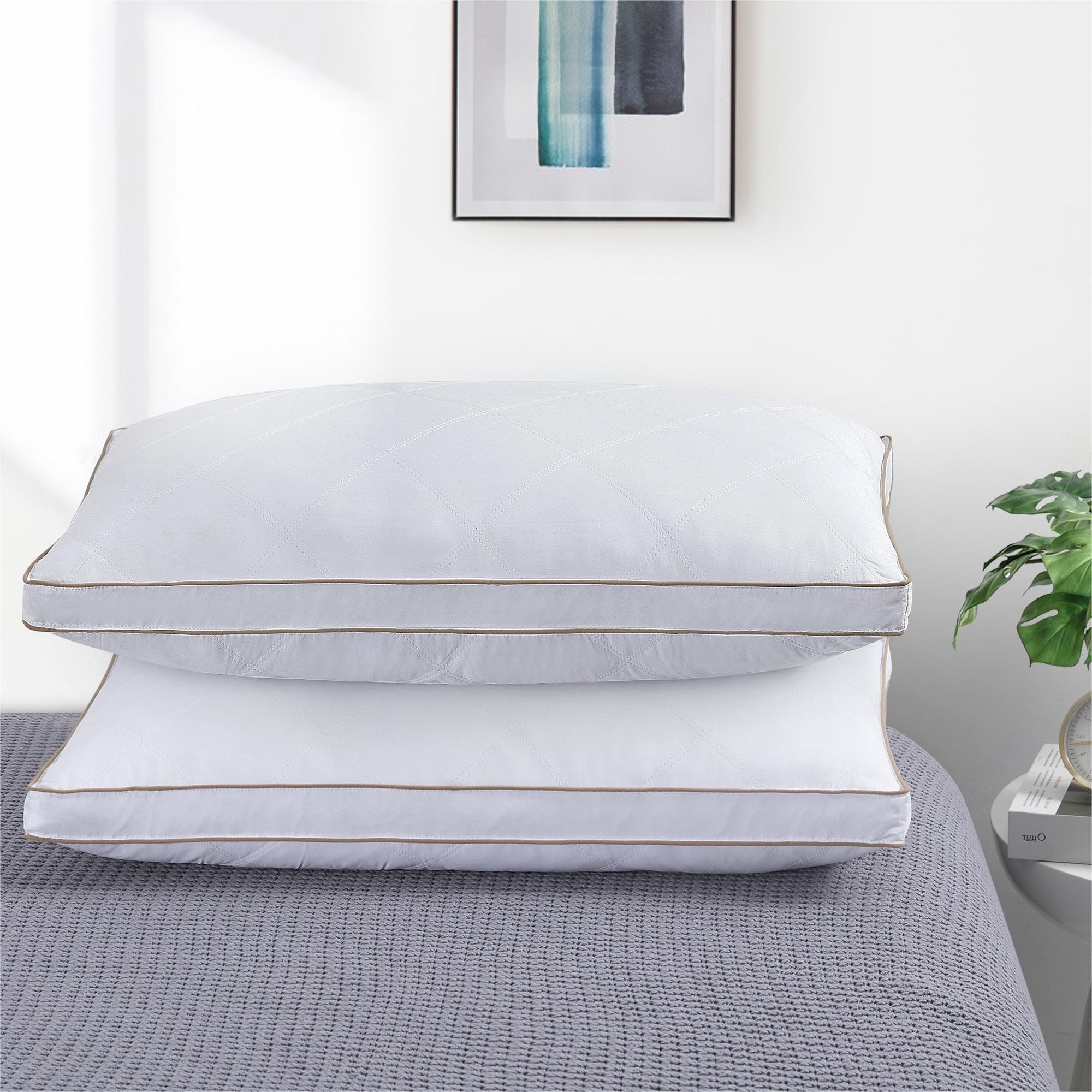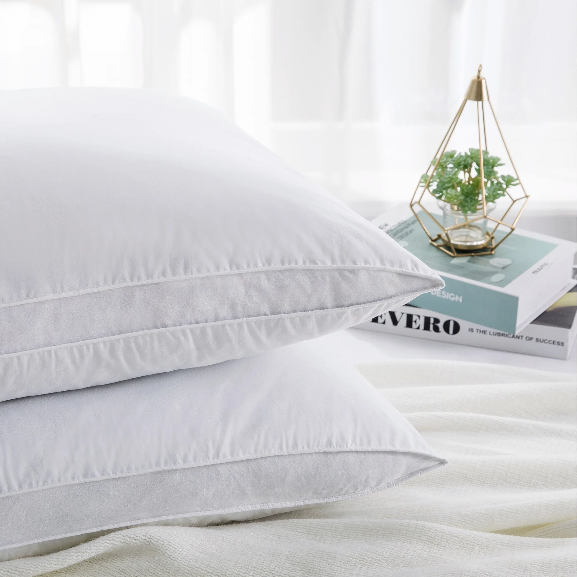2 Pack Gusseted Goose Feather Bed Pillows with Cotton Cover - White